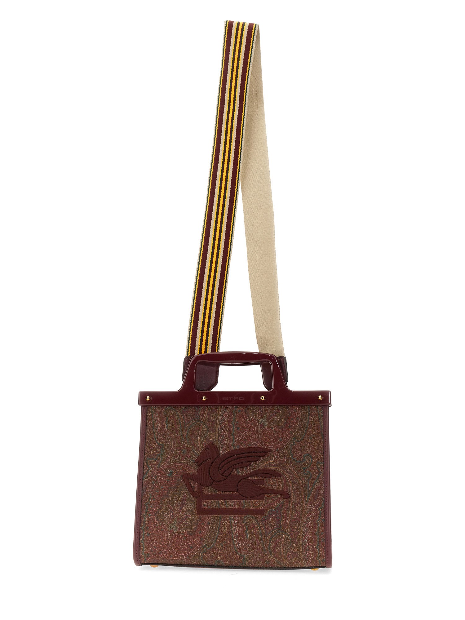 Vi presentiamo la borsa Trotter Small di Etro, perfetta sintesi di stile e funzionalità! Realizzata in morbido misto cotone, questa borsa è dotata di doppi manici che ne facilitano il trasporto. Grazie alle sue dimensioni compatte, è ideale per l'uso quotidiano. Aggiornate il vostro gioco di accessori con questa borsa versatile e di tendenza di Etro!
