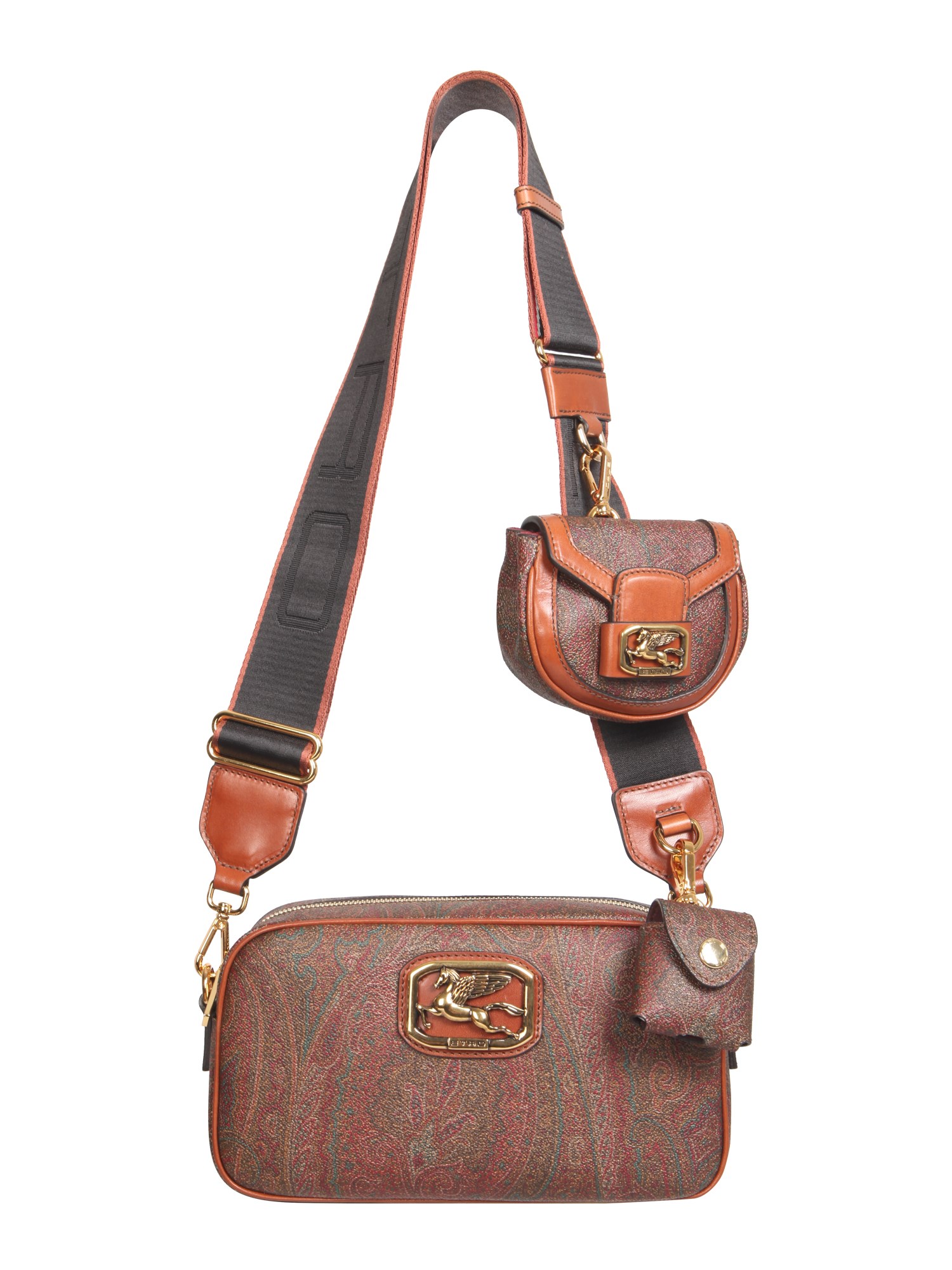 - TRACOLLA NASTRATA CON MOTIVO A RIGHE REGOLABILE E REMOVIBILE CON POCHETTE E PORTA AIRPODS REMOVIBILI