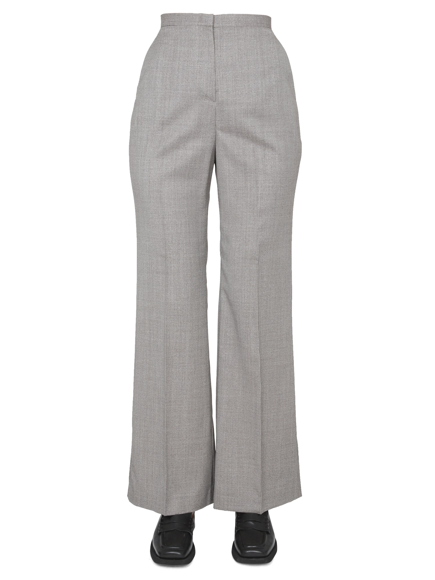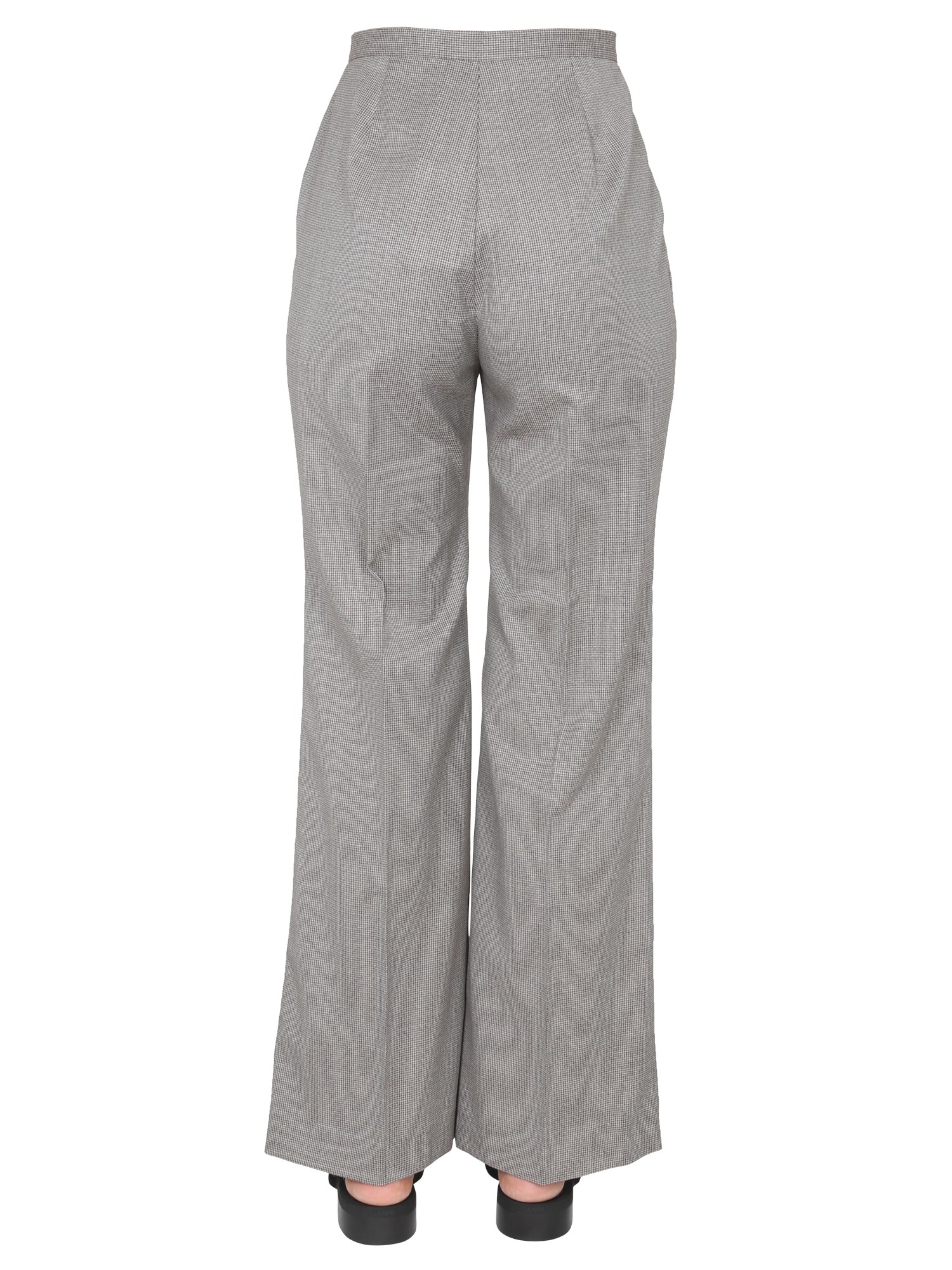 Con un perfetto mix di eleganza e sportività, questi pantaloni micro pied-de-poule della maison Fabiana Filippi sono un must-have per il vostro guardaroba. Realizzati in pura e resistente lana vergine, i pantaloni presentano una chiusura a gancio nascosta, due tasche laterali e un fondo svasato.