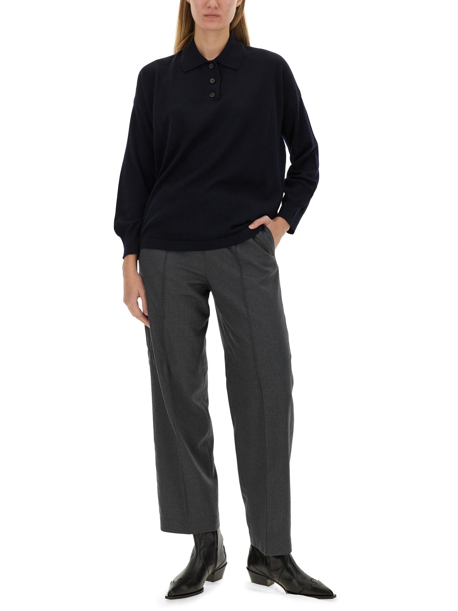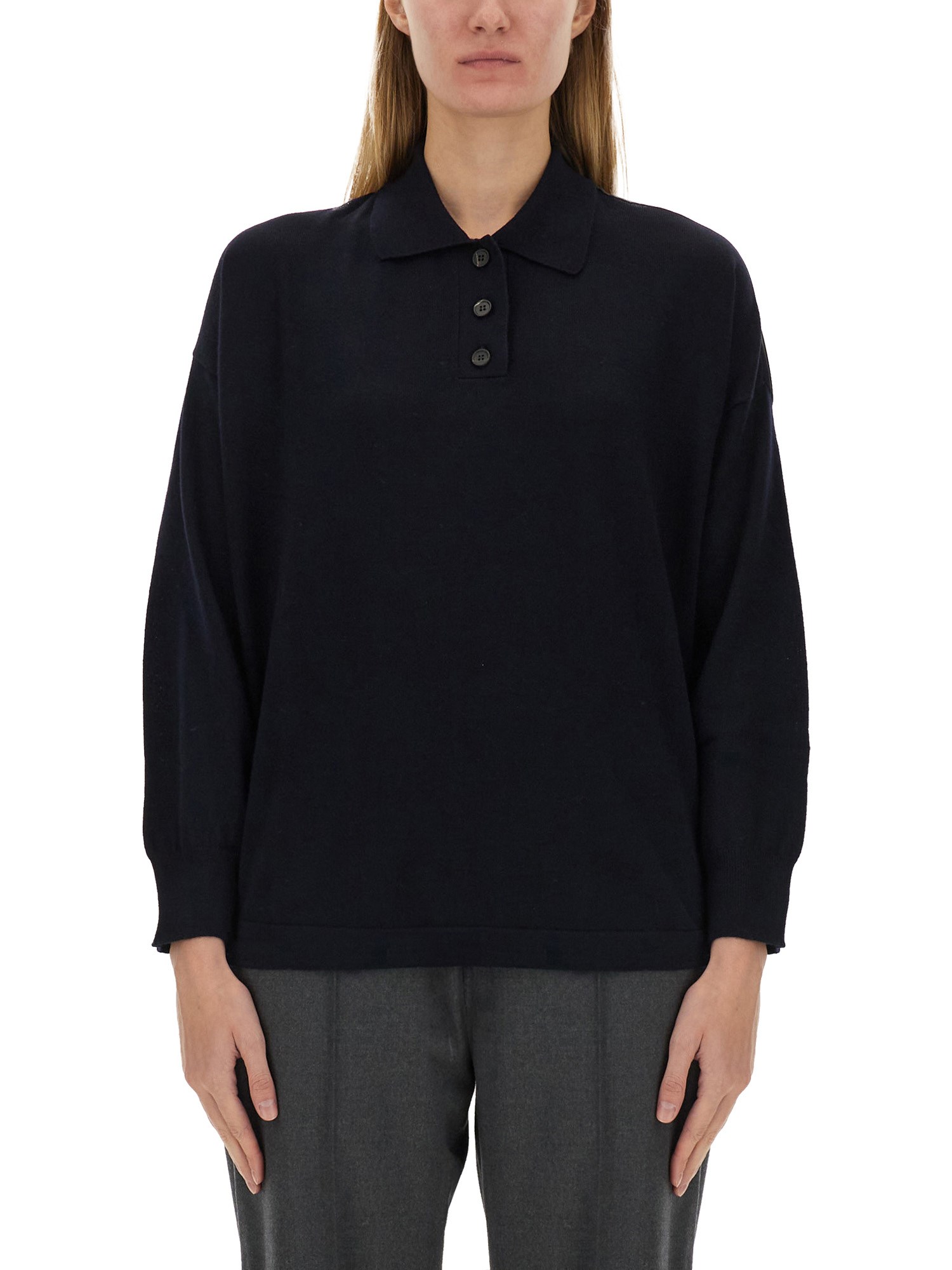 La polo in lana di Fabiana Filippi è un esempio di lusso e raffinatezza, realizzata in lana di alta qualità per garantire calore e comfort eccezionali. Questo elegante capo presenta un classico design a polo, che lo rende versatile sia per le occasioni casual che per quelle formali. La sua silhouette raffinata è completata da dettagli meticolosi, per un'aggiunta senza tempo a qualsiasi guardaroba. Ideale da indossare a strati o da sola, questa polo in lana è un must-have per chi apprezza l'artigianato e lo stile.