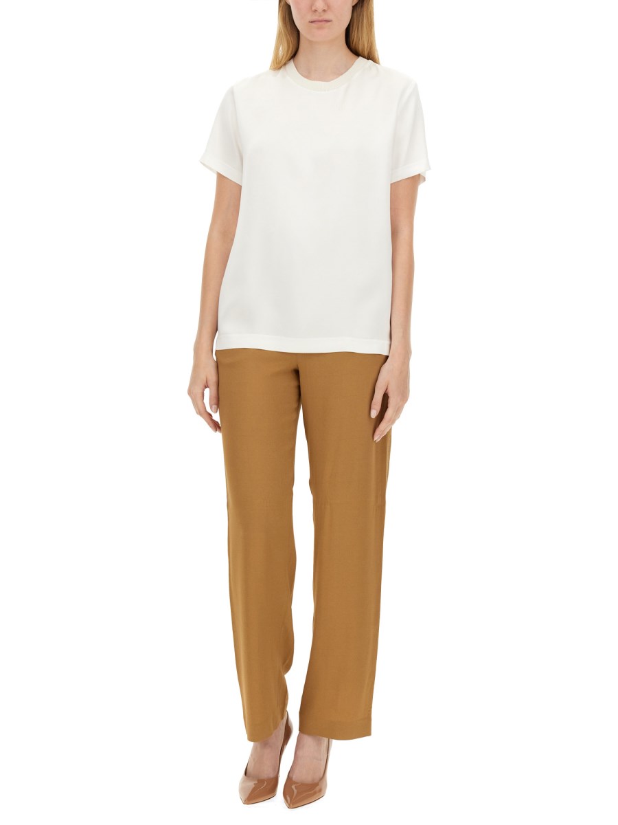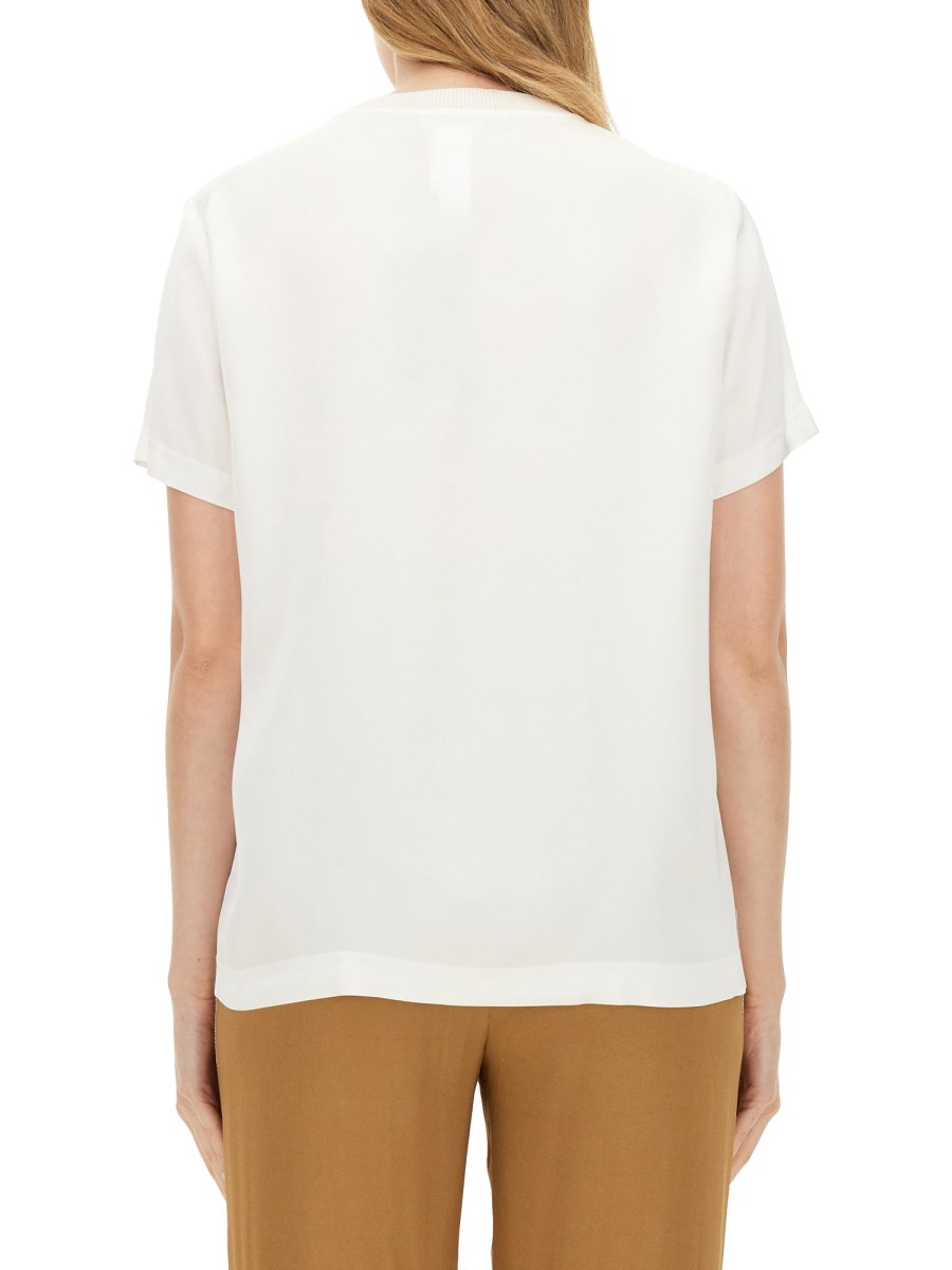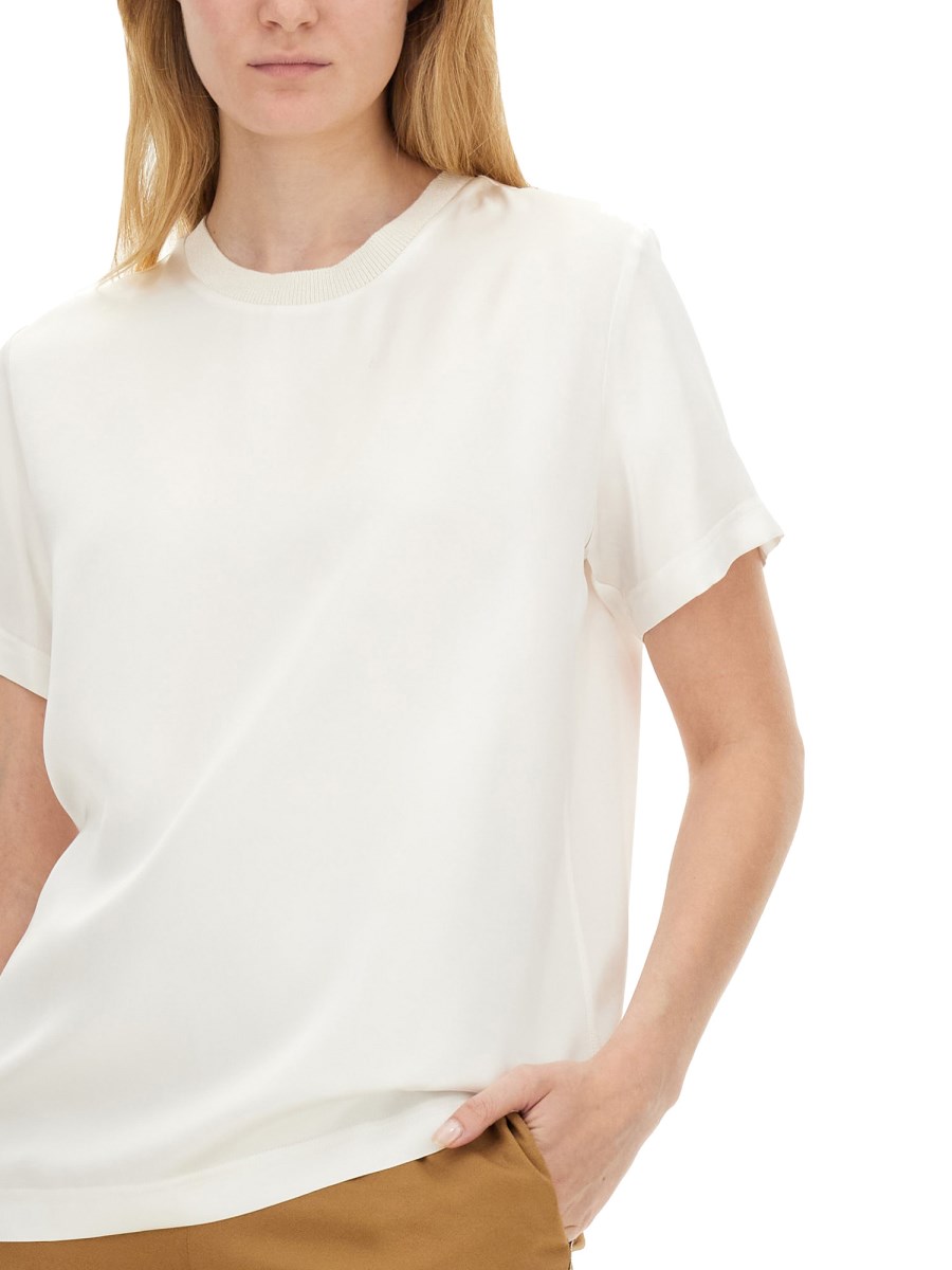 La T-shirt Satin di Fabiana Filippi è un esempio di eleganza e raffinatezza, realizzata in un lussuoso tessuto di raso che offre una texture morbida e liscia sulla pelle. Questo capo versatile è caratterizzato da una silhouette classica, che lo rende adatto sia alle occasioni casual che a quelle formali. Il suo design raffinato è completato da dettagli sottili, per un'aggiunta senza tempo a qualsiasi guardaroba. Ideale per essere indossata a strati o da sola, questa T-shirt combina perfettamente il comfort con l'alta moda, riflettendo l'impegno del marchio per la qualità e lo stile.