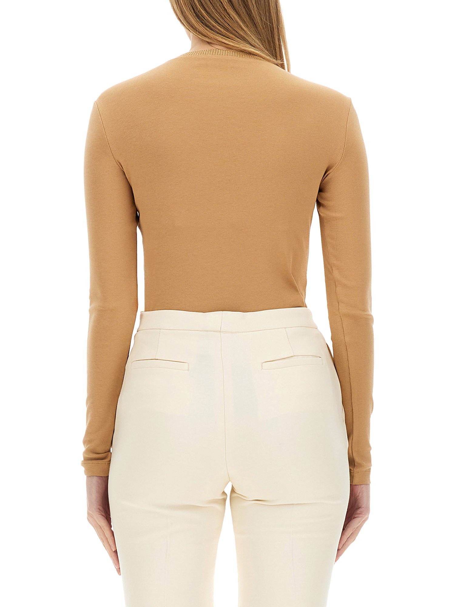 La T-shirt Slim Fit di Fabiana Filippi unisce eleganza e comfort, realizzata con materiali di alta qualità per garantire una silhouette perfetta. Il suo design sartoriale esalta la forma naturale del corpo, rendendola un'aggiunta versatile a qualsiasi guardaroba. Ideale sia per le occasioni casual che per quelle semi-formali, questa t-shirt esemplifica l'impegno del marchio verso uno stile sofisticato e un'eccezionale artigianalità.