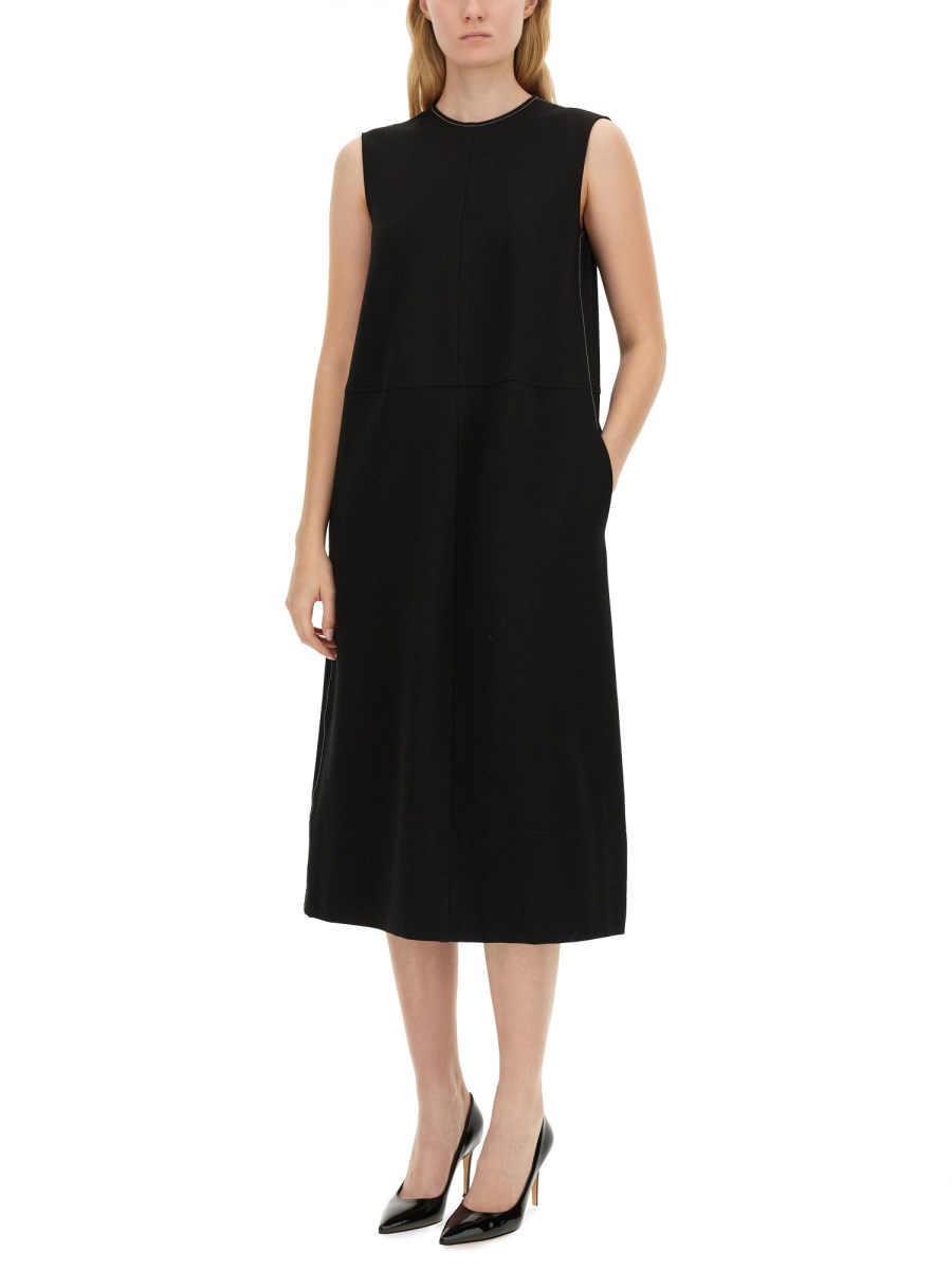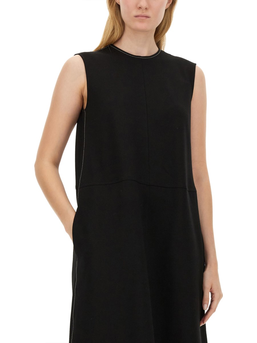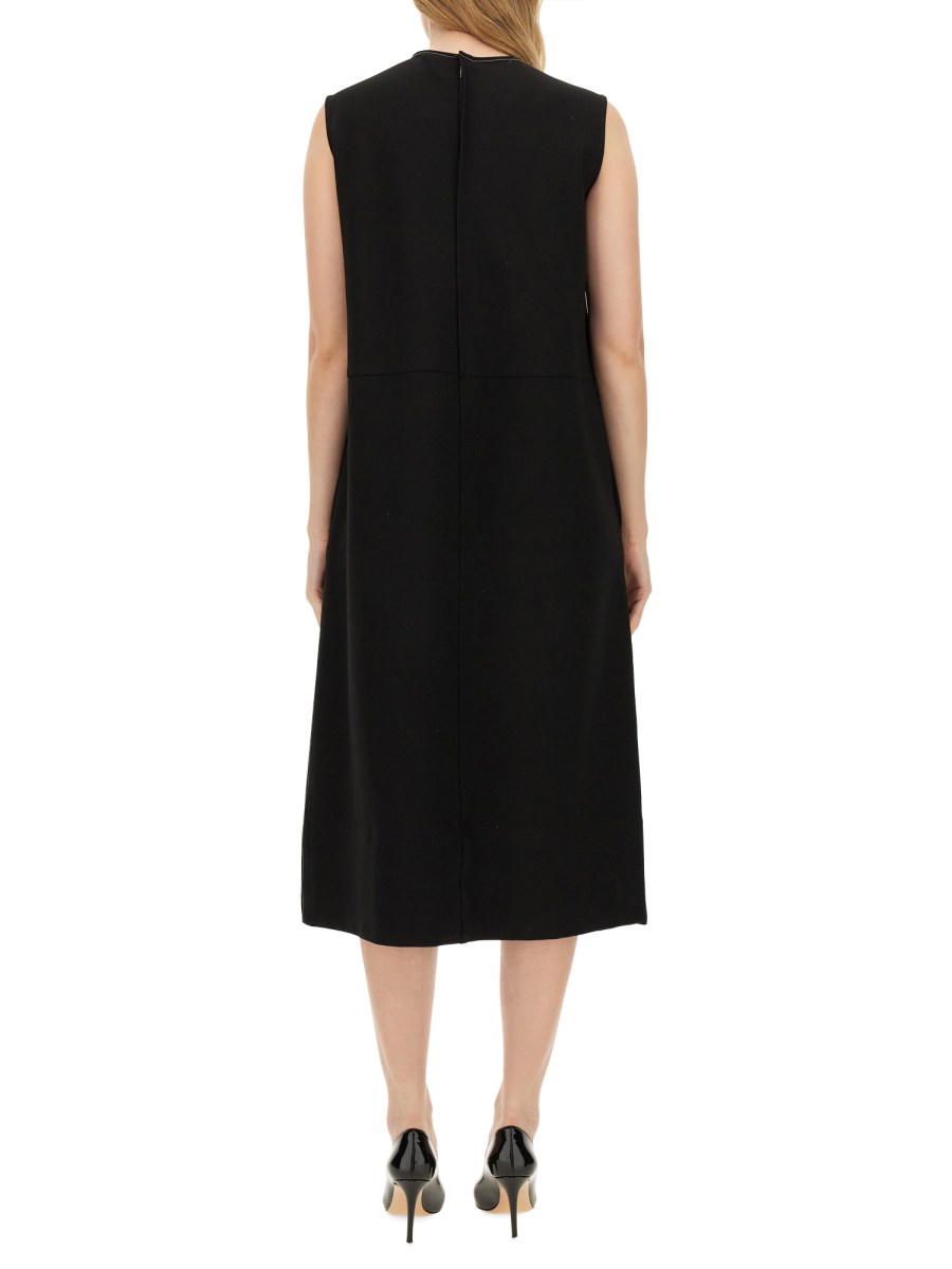 L'abito midi di Fabiana Filippi è un esempio di eleganza e raffinatezza, realizzato con materiali di alta qualità che assicurano comfort e stile. Questo abito presenta una silhouette lusinghiera che cade con grazia a metà polpaccio, accentuando la figura e offrendo versatilità per varie occasioni. Il suo design raffinato è completato da dettagli sottili, che lo rendono un'aggiunta senza tempo a qualsiasi guardaroba. Ideale sia per uscite casual che per eventi formali, questo abito incarna l'essenza della moda contemporanea con un tocco classico.