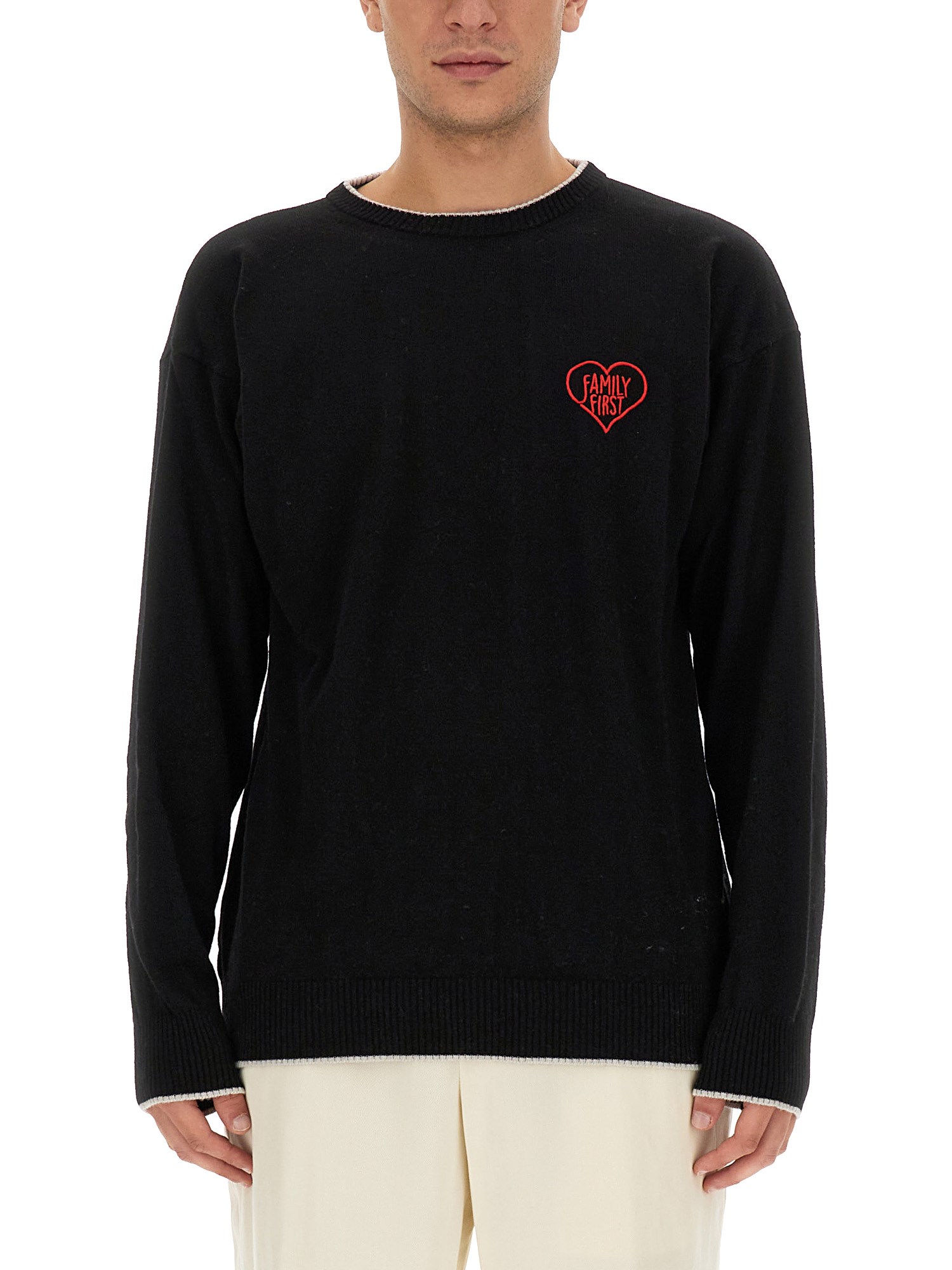 Questo bellissimo maglione di Family First è lussuoso e confortevole. La lana di cashmere è morbida e ha il peso perfetto per tenervi al caldo senza essere troppo pesante. Questo maglione nero in cashmere è perfetto per la stagione fredda e vi terrà al caldo per tutto l'inverno. Ha un girocollo ed è progettato per essere indossato sopra la camicia o il maglione.