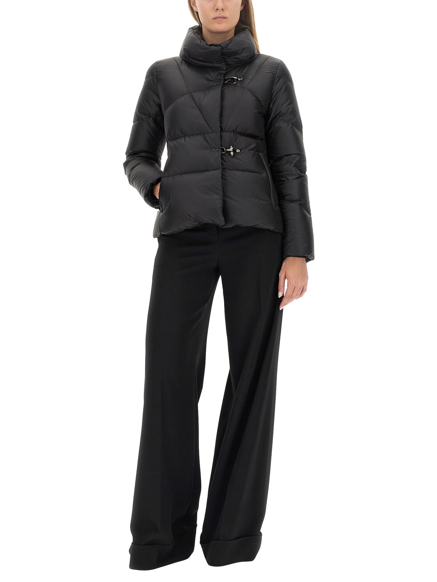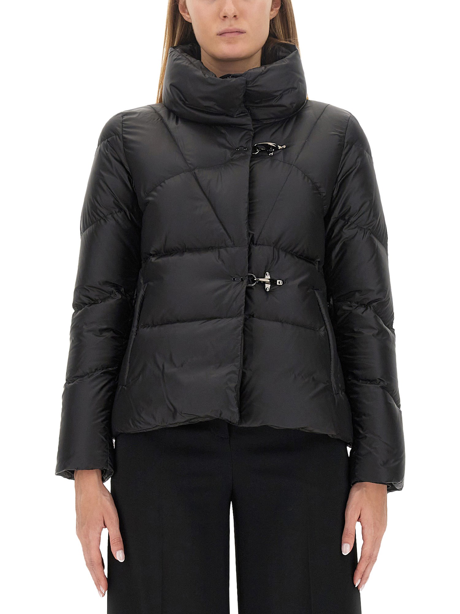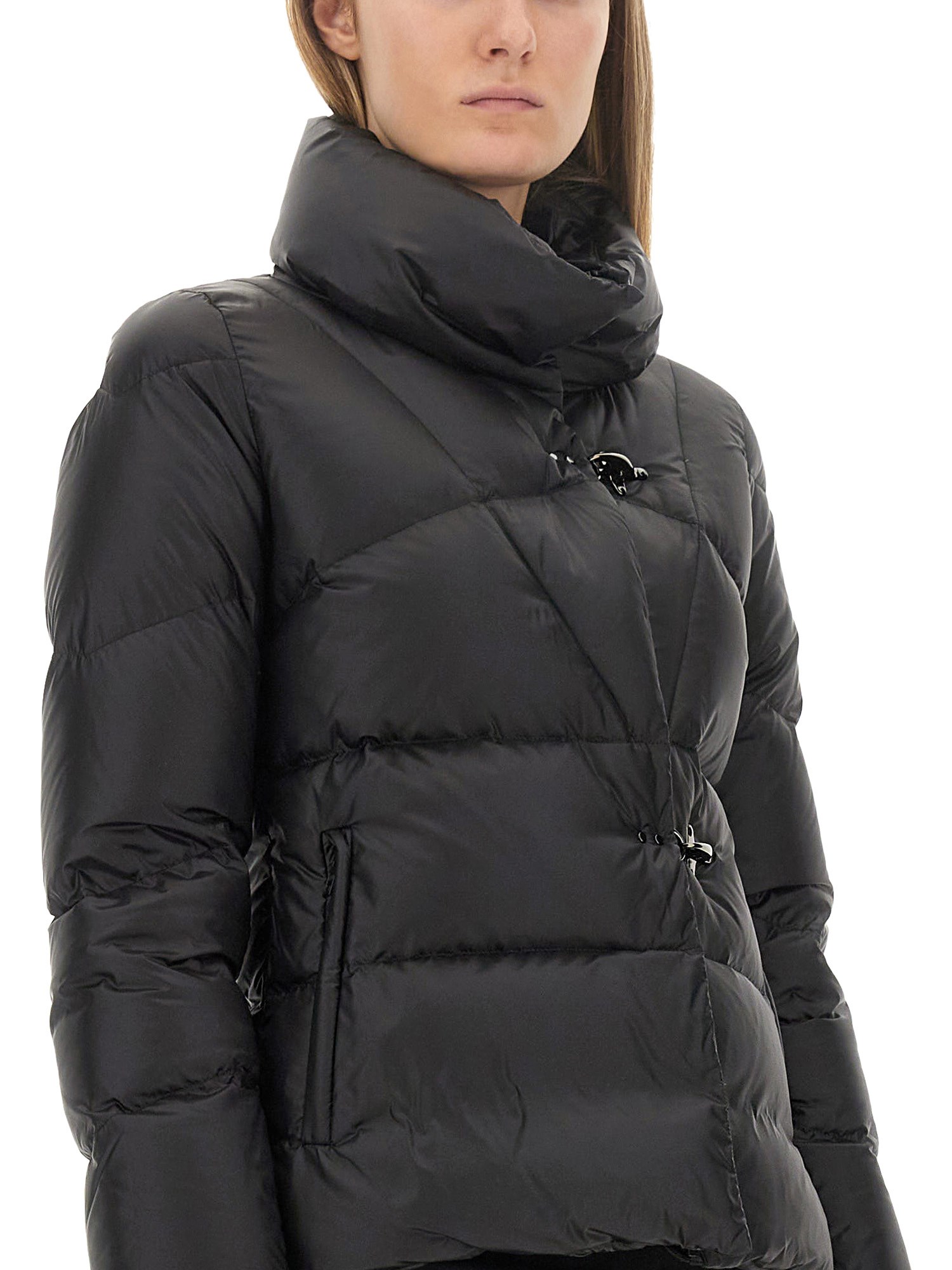 Reinterpretazione dell'iconico Gala, questo piumino corto con collo alto è caratterizzato da un mix di cuciture. Realizzato in nylon ultraleggero trapuntato idrorepellente, presenta tasche a filetto con zip. Capo funzionale dalla linea raffinata e femminile, la chiusura con zip e bottoni automatici nascosti è perfezionata dai caratteristici ganci Fay.