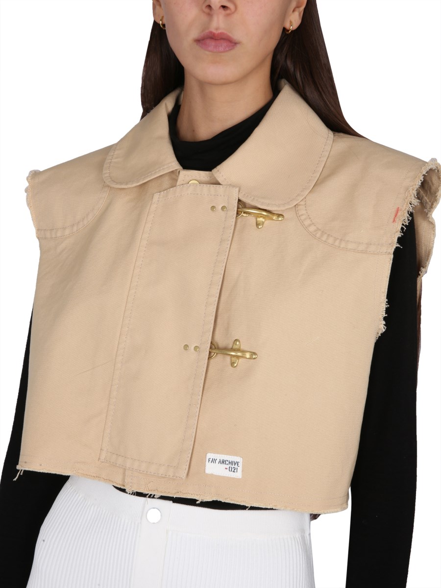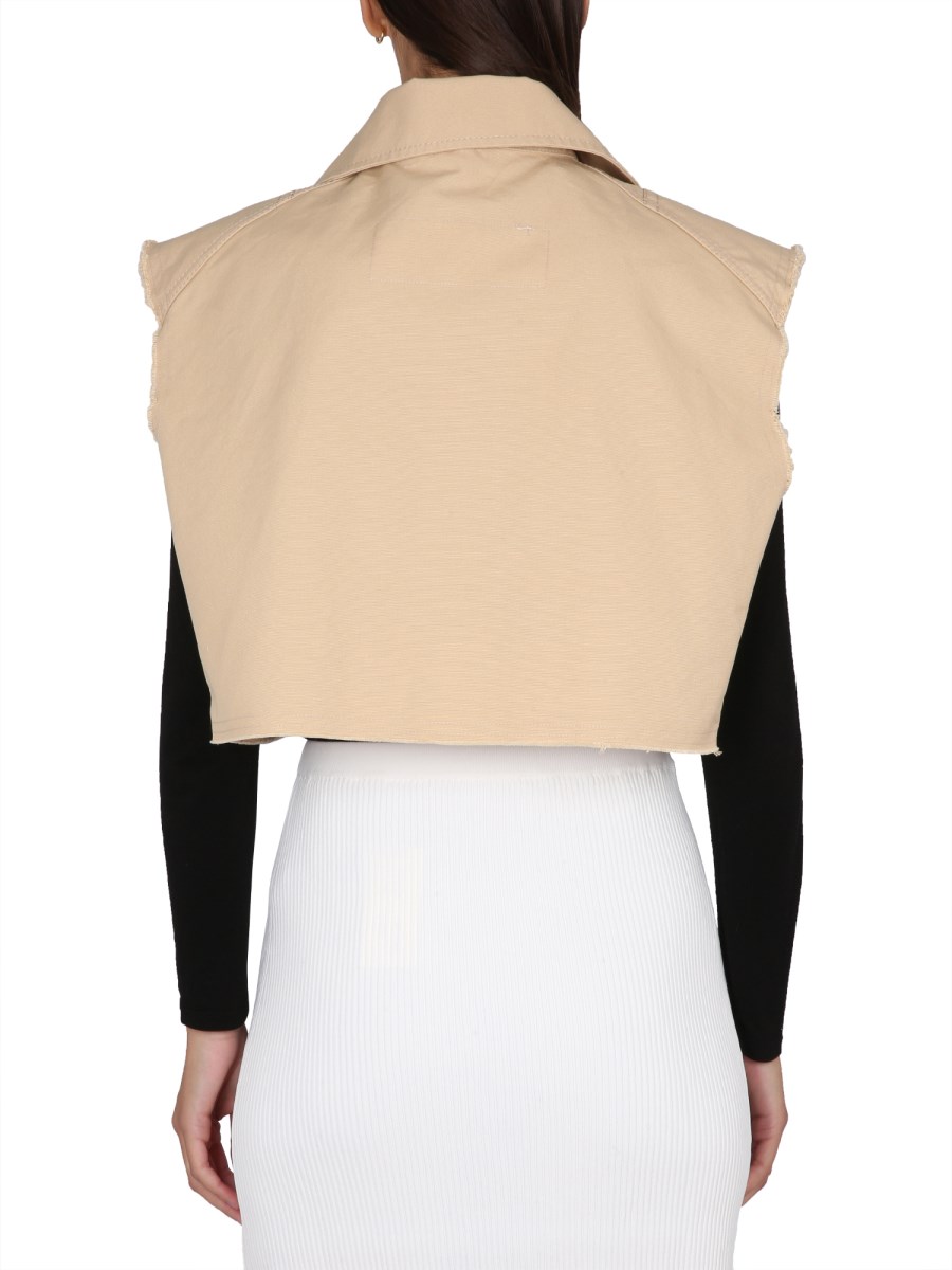 - CHIUSURA CON BOTTONE A PRESSIONE CON DUE GANCI - PROFILI SFRANGIATI - OVER FIT SFODERATO- 100% COTONE- LA MODELLA E' ALTA 180 CM E INDOSSA TAGLIA S