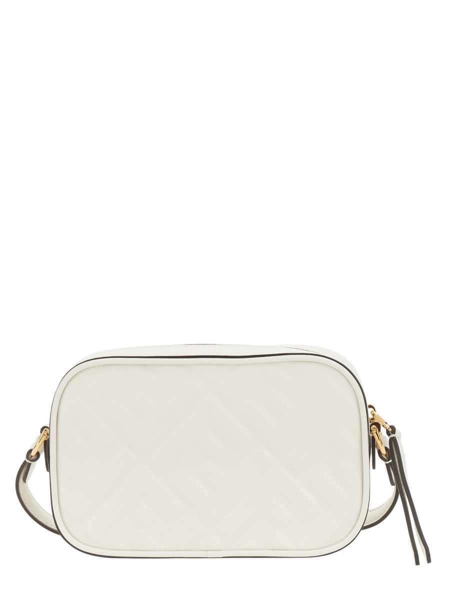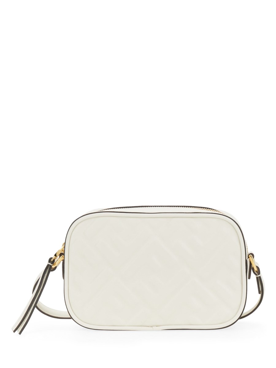 Mini-bag dalla silhouette squadrata, realizzata in pelle bianca con motivo FF a texture tridimensionale. Chiusura con zip.