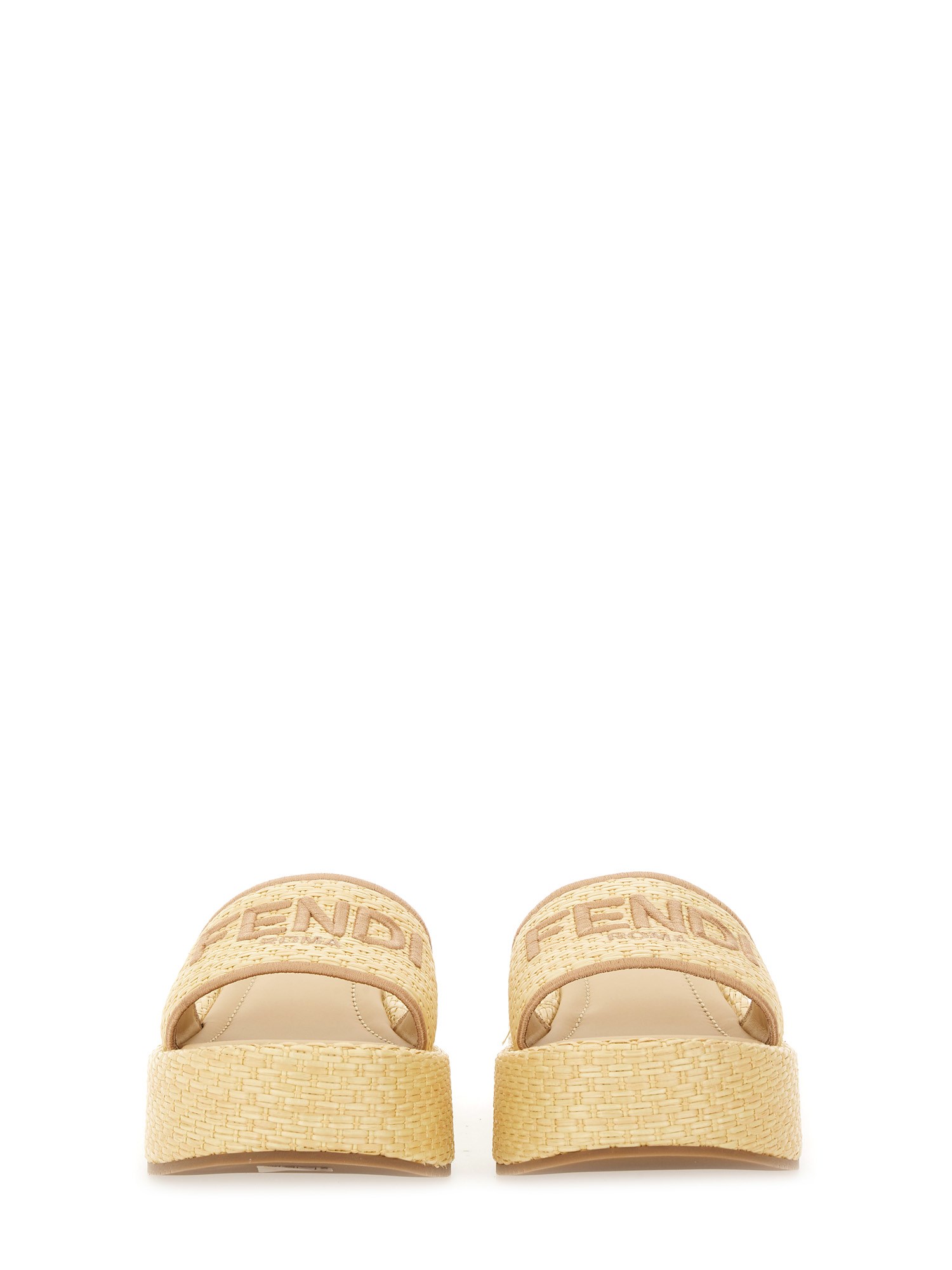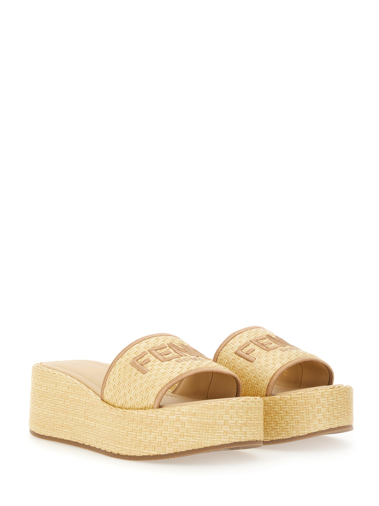 SANDALO FLATFORM SLIDE "FENDI SUNSHINE" IN RAFIA