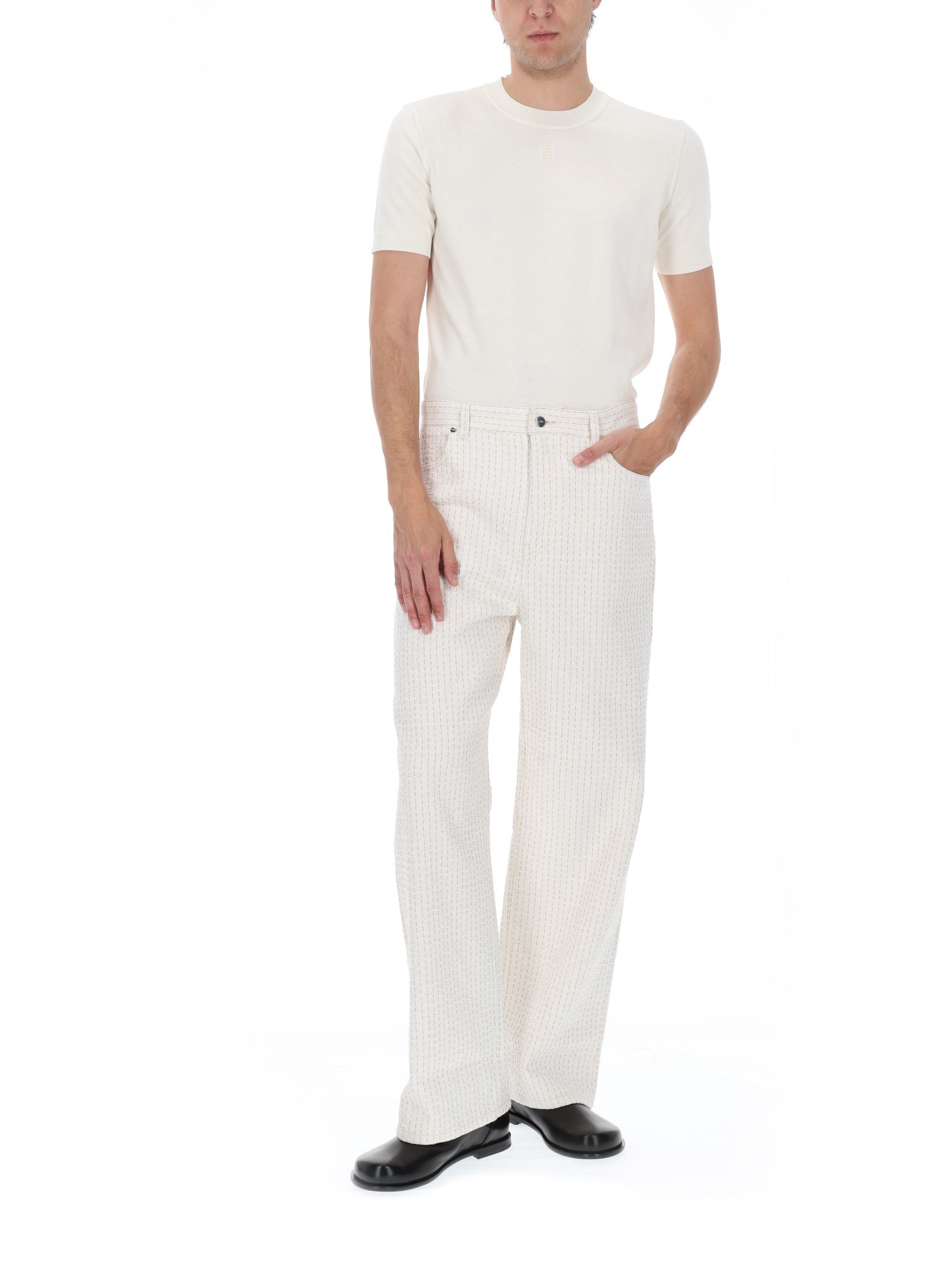 - 93% Cotton 6% Polyamide 1% Elastane- MADE IN Italy- IL MODELLO È ALTO 185 CM E INDOSSA LA TAGLIA 33