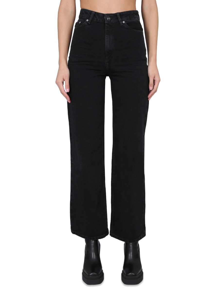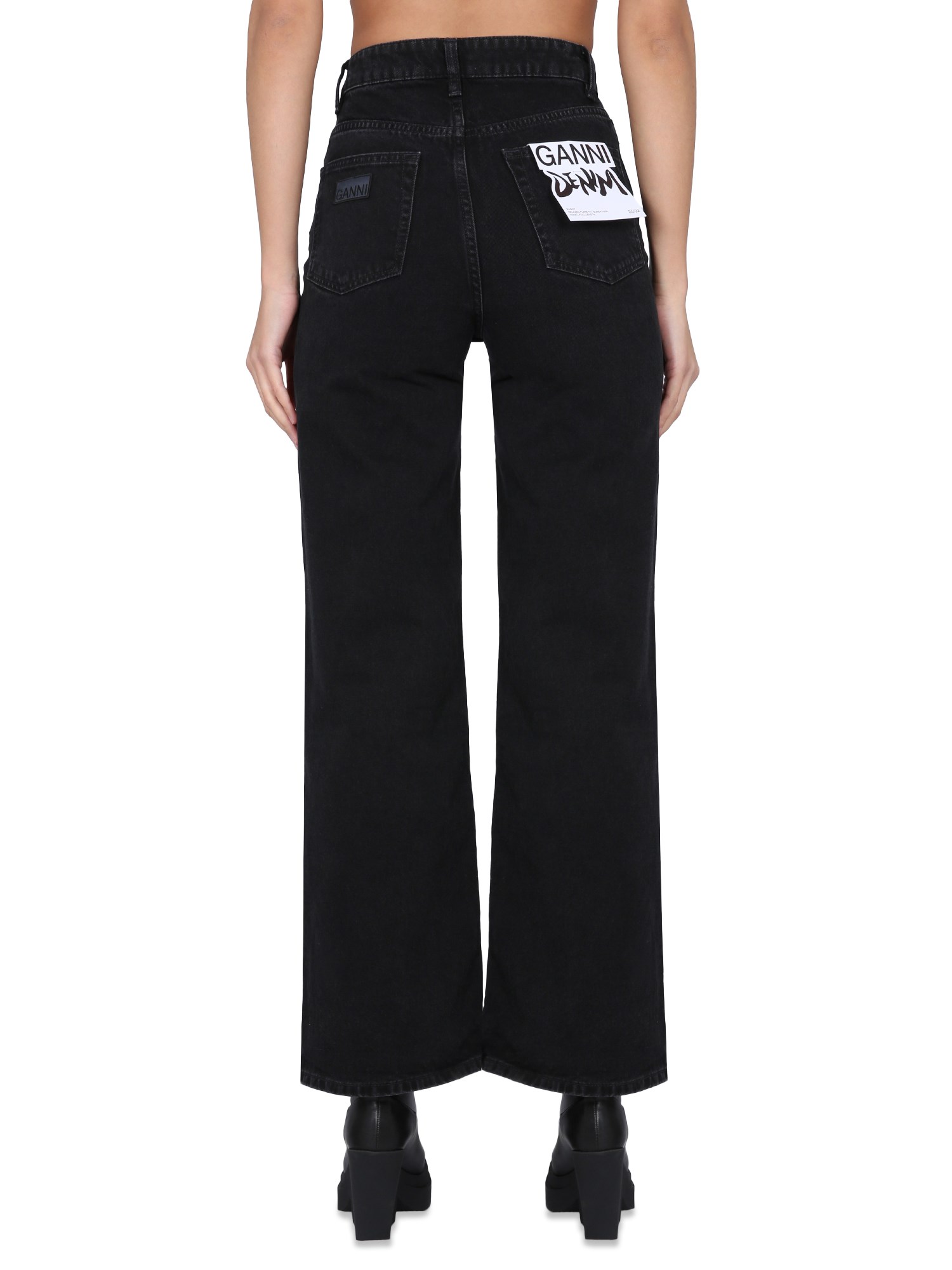 Comodità e calore in questo paio di jeans di Ganni Questo paio di jeans è realizzato in un robusto tessuto denim ammorbidito da un tocco di elastan per renderlo più elastico. Il modello a cinque tasche è stato cucito sul davanti e sul retro della cintura per facilitarne l'accesso.