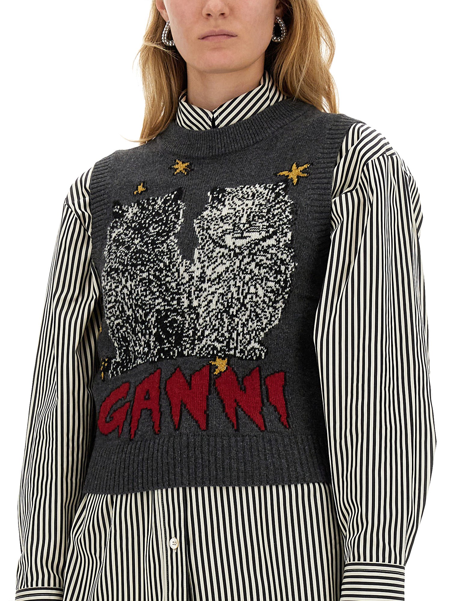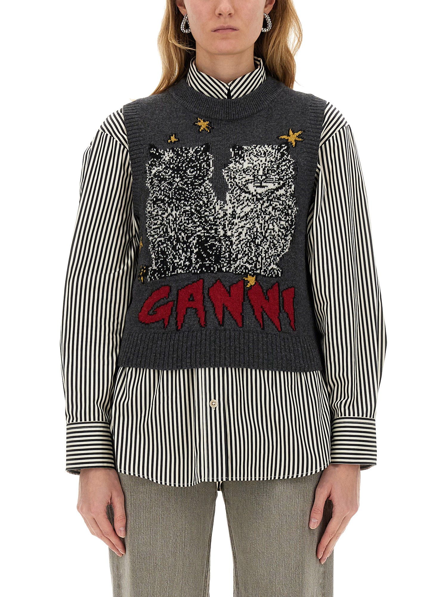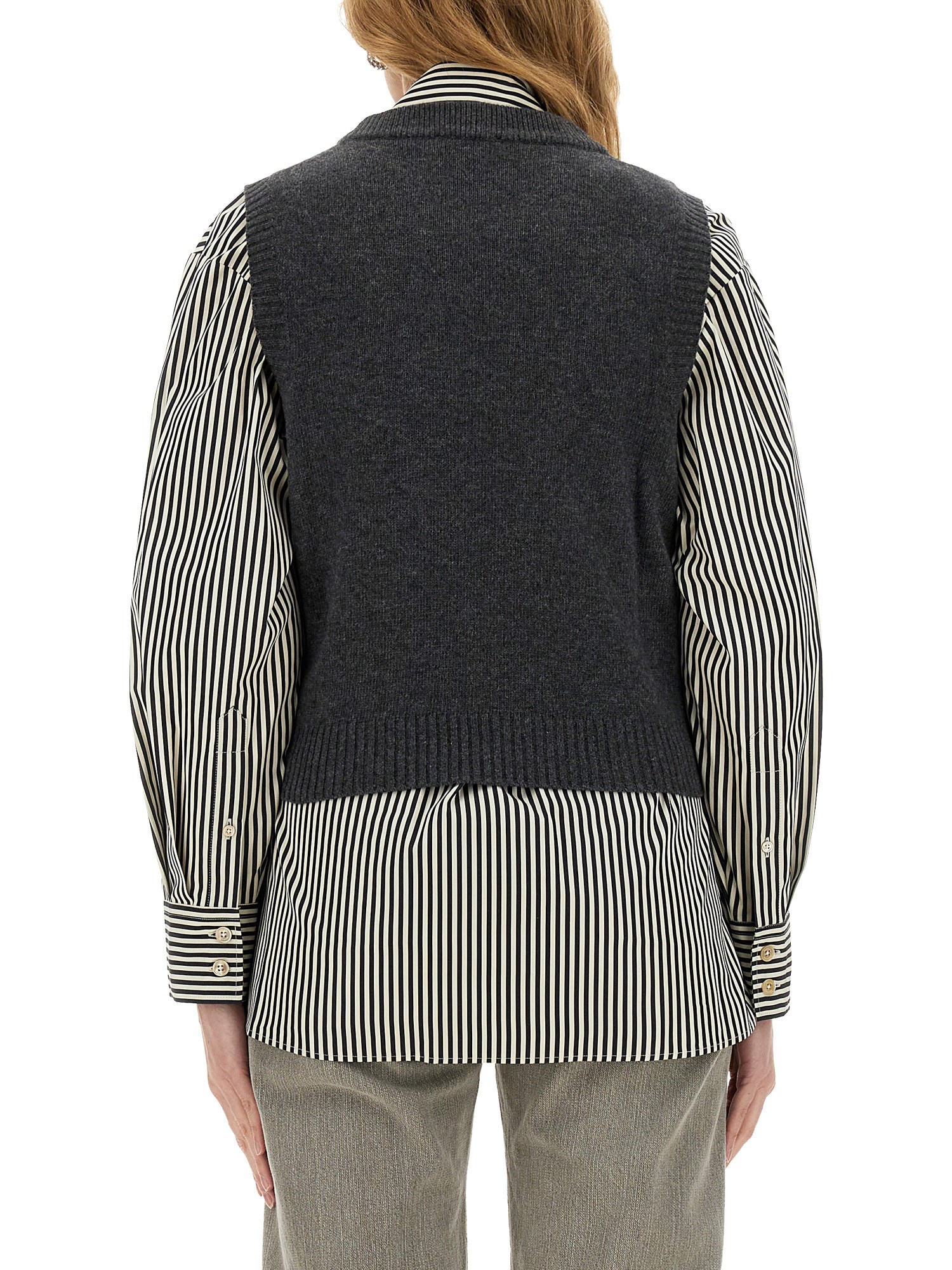 - REGULAR FIT- 44% wool, 34% recycled wool, 19% recycled polyamide, 2% polyester, 1% polyamide- MADE IN Moldova- LA MODELLA É ALTA 180 CM E INDOSSA LA TAGLIA S