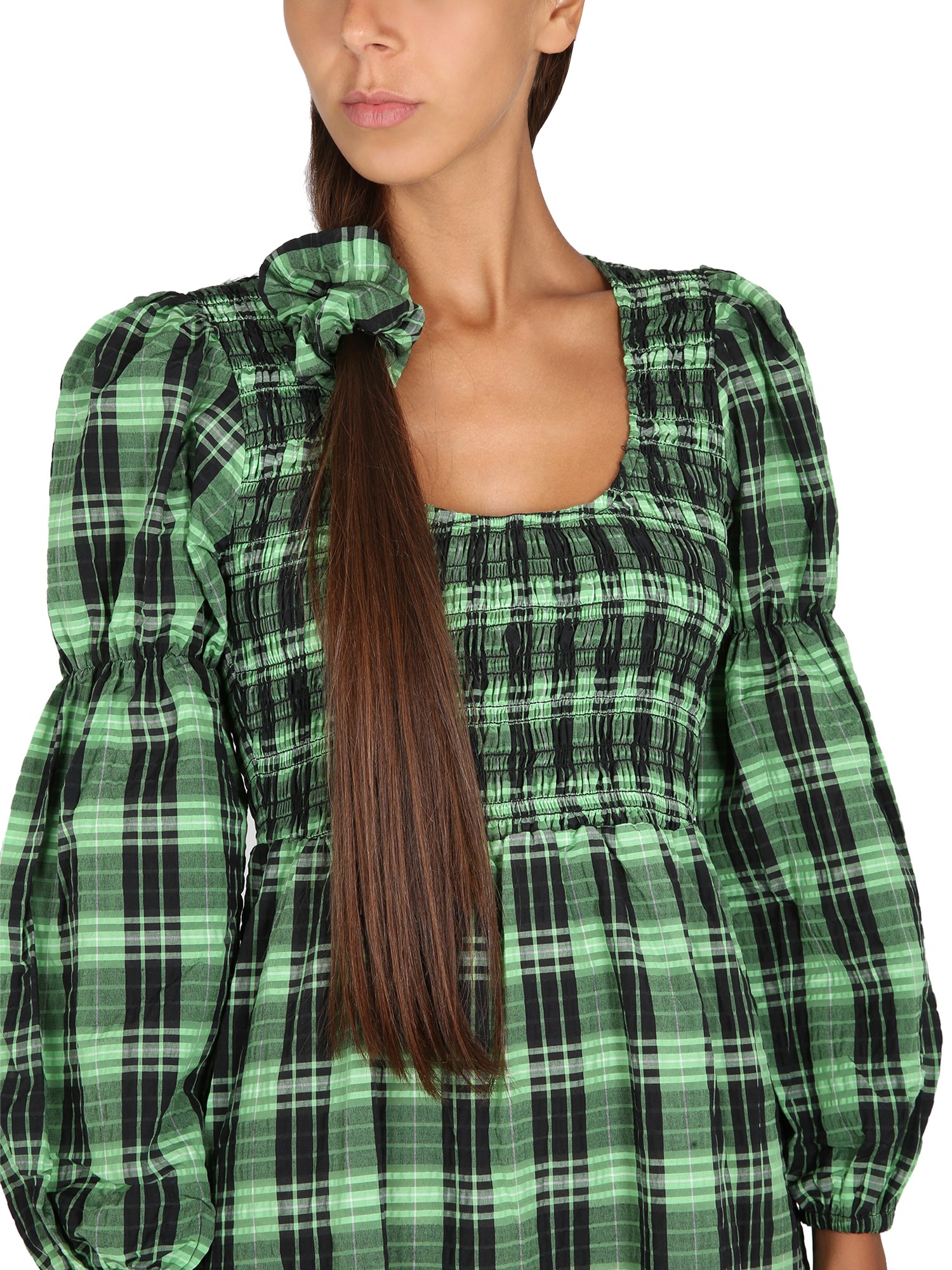 Un elegante maxi abito di Ganni, perfetto per ogni occasione. Realizzato in un resistente tessuto di cotone organico al 100%, questo maxi abito presenta un corpetto smock con spalla a U, che può essere indossato sopra o sotto l'abito per un look elegante. L'abito è rifinito con una mano lussuosa e morbida.