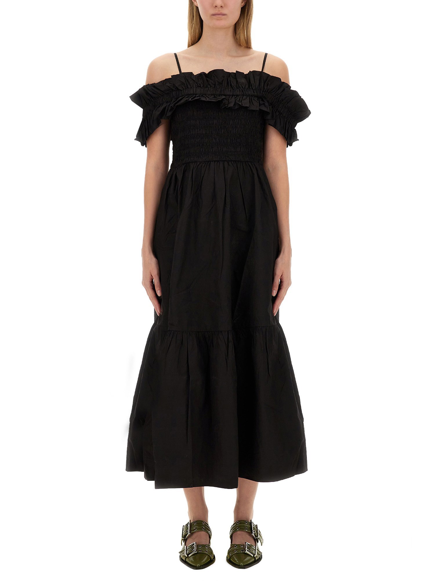 Questo versatile capo di Ganni presenta una silhouette rilassata, perfetta sia per le uscite casual che per gli eventi più formali. Il tessuto in popeline di cotone di alta qualità garantisce comfort e durata, mentre l'intramontabile colore nero lo rende un punto fermo in ogni armadio. Abbinato a scarpe da ginnastica per un look rilassato o a tacchi per una serata fuori, questo abito è un must-have per ogni persona alla moda.