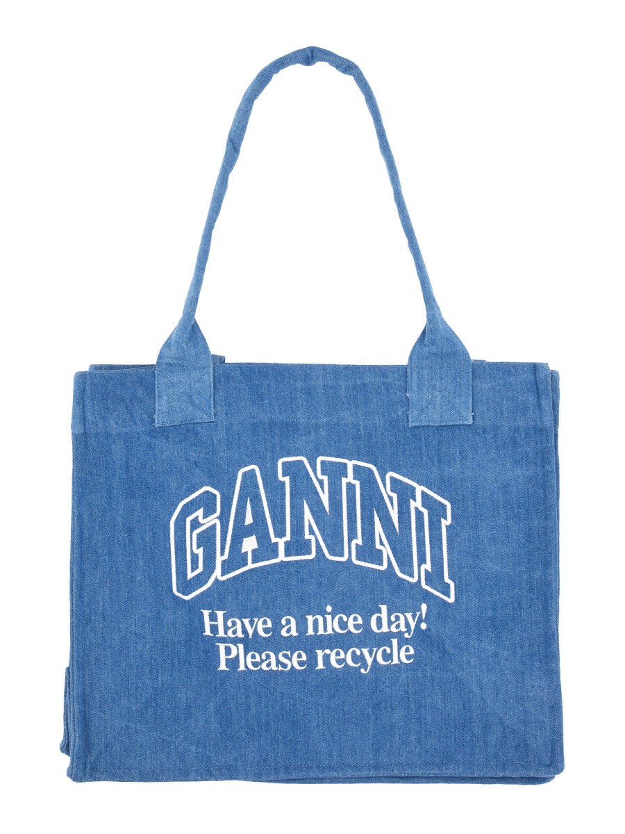 BORSA TOTE IN DENIM CON LOGO RICAMATO