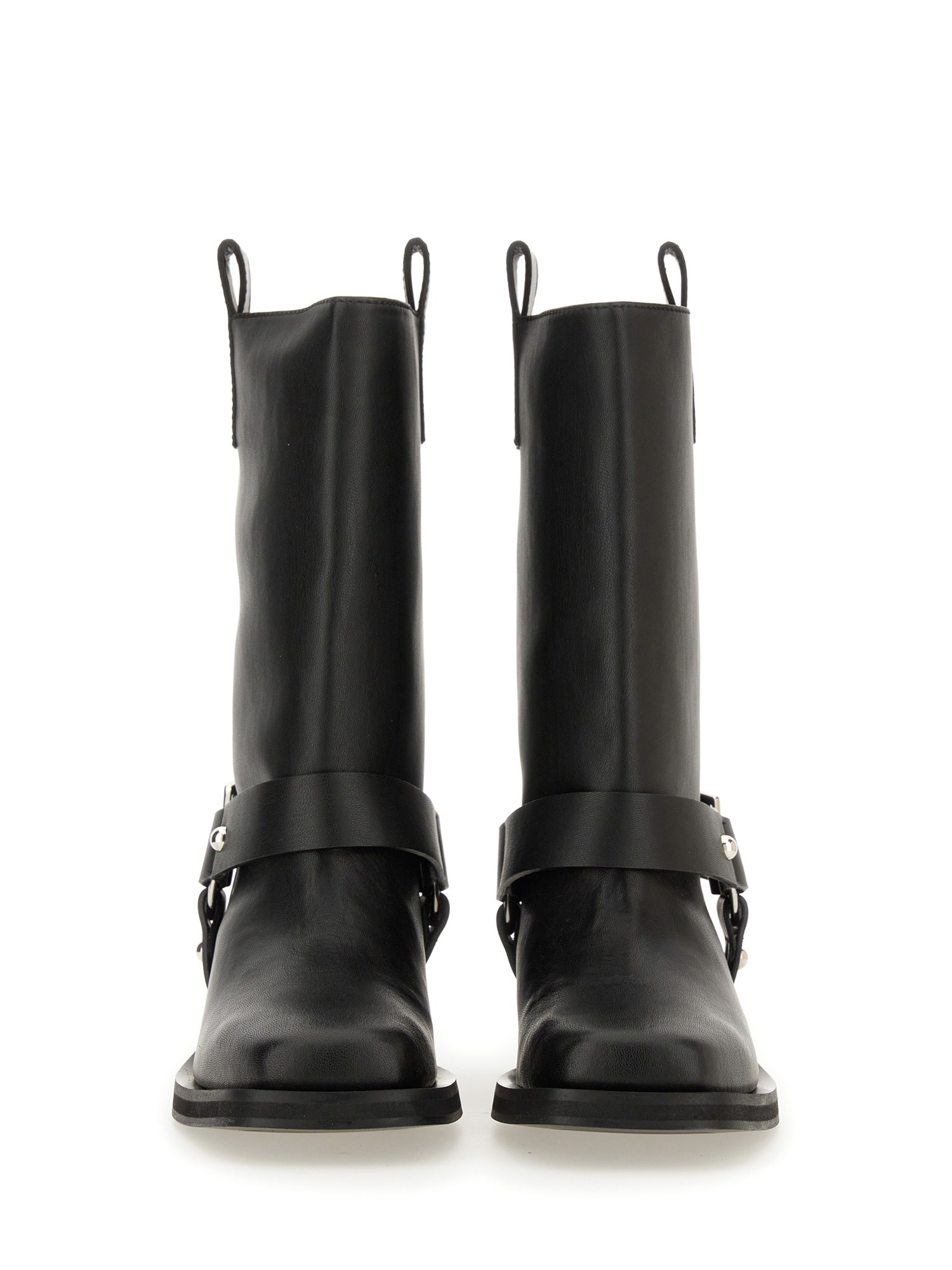 Questi stivali di Ganni sono la perfetta combinazione di robustezza e raffinatezza, che li rende un must-have per ogni individuo alla moda. Realizzati con la massima precisione e attenzione ai dettagli, questi stivali sono progettati per offrire il massimo del comfort e della durata per tutte le vostre avventure. Questi stivali sono realizzati in pelle nera di alta qualità, per garantire un'usura duratura e un aspetto elegante. L'altezza media dell'albero conferisce loro un look unico e tagliente, perfetto per elevare qualsiasi outfit.