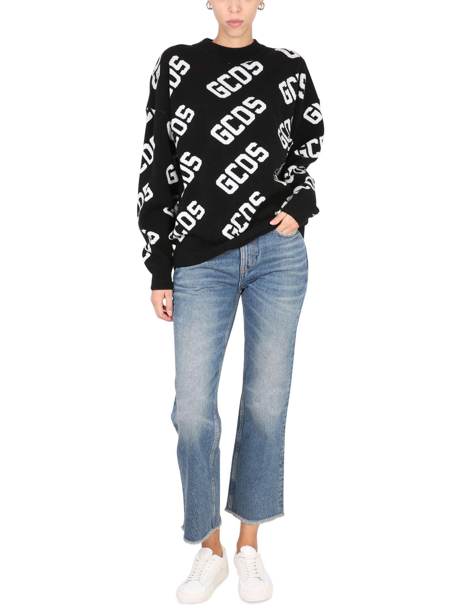 Morbido, soffice e caldissimo, questo maglione in cotone di GCDS è perfetto per essere indossato a strati o da solo. Il design tradizionale è caratterizzato da colletto e polsini a coste, maniche lunghe e orlo dritto. Il pullover presenta una lavorazione jacquard e una grafica con logo sul davanti.