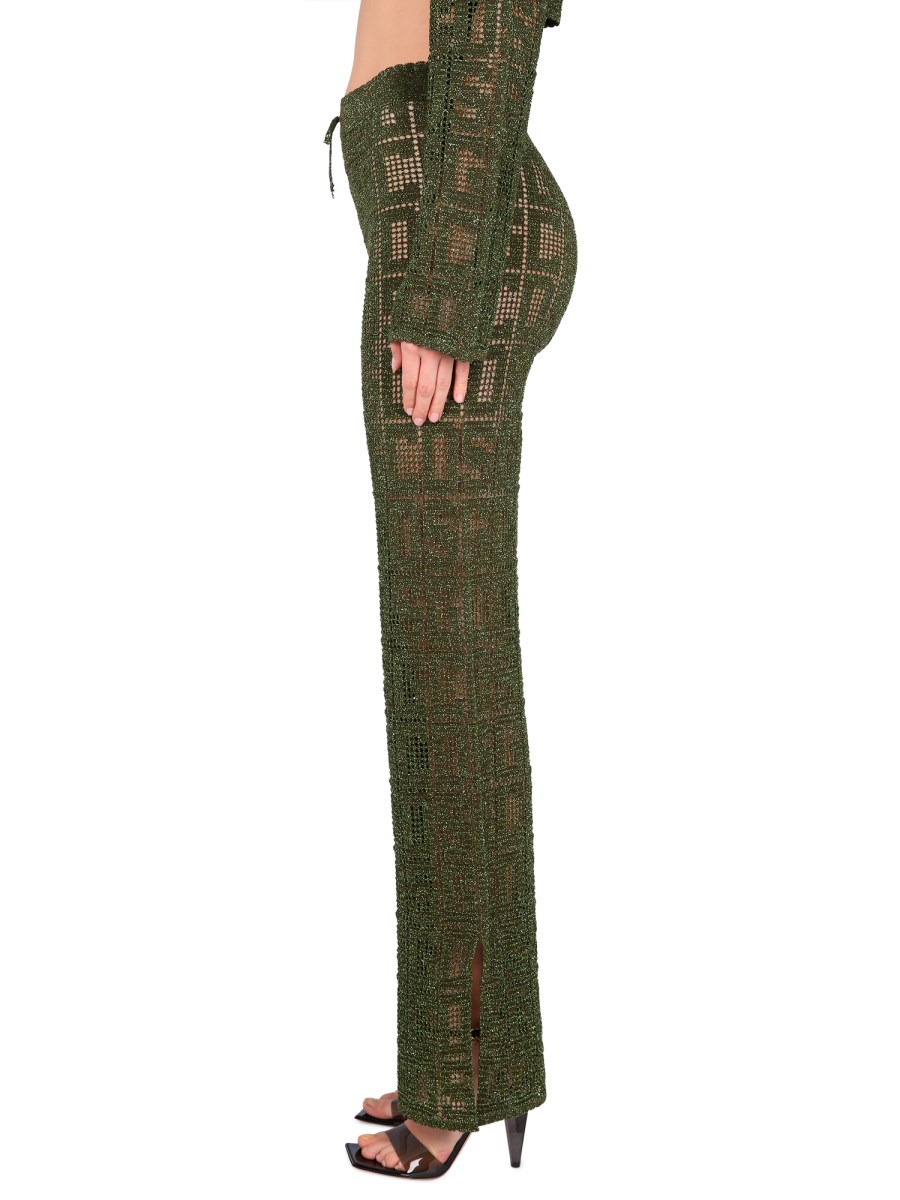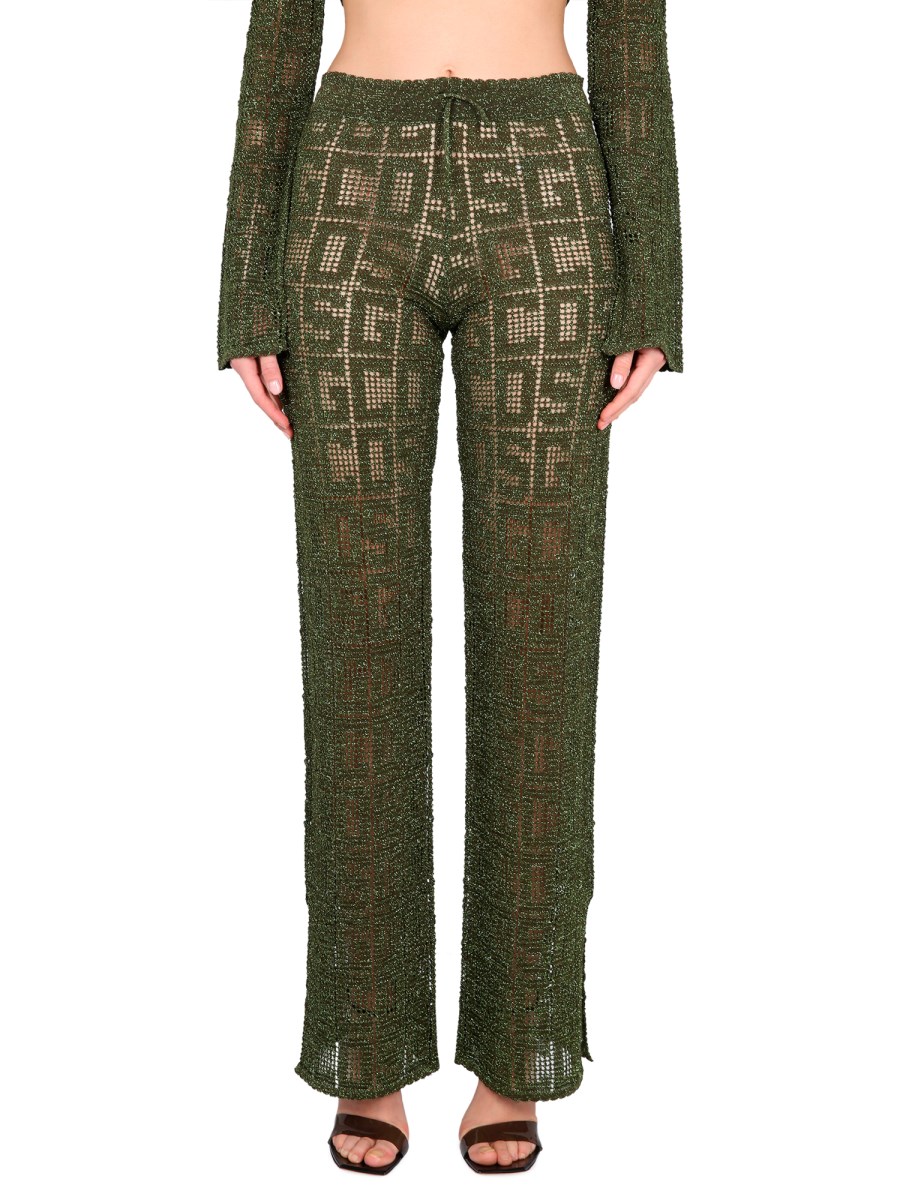 Un look chic e moderno con questi morbidi e comodi pantaloni a gamba larga in viscosa macramè di GCDS. Realizzati in misto viscosa, questi pantaloni sono ideali da indossare tutto l'anno. Gli spacchi laterali con coulisse in vita e monogramma effetto crochet, insieme alla versatile silhouette a gamba larga, sono perfetti per mostrare il vostro paio di tacchi o stivali preferiti.
