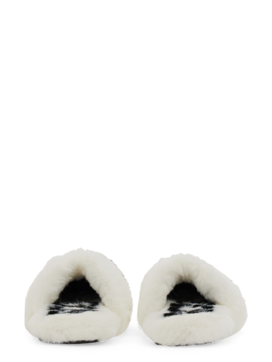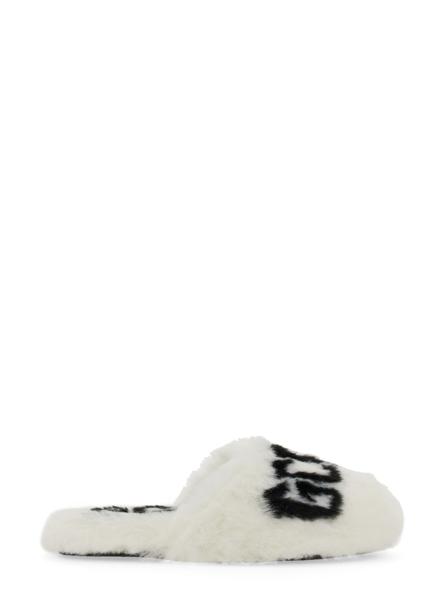 Questo sandalo in pelliccia sintetica di GCDS è un modo elegante e confortevole per tenere i piedi al caldo quest'inverno. La pelliccia è attaccata al sandalo, così non dovrete preoccuparvi che le dita dei piedi si raffreddino, e la suola in gomma del sandalo è ottima per camminare in città. Il sandalo presenta anche un logo sul lato, in modo da essere alla moda mentre si sta al caldo.
