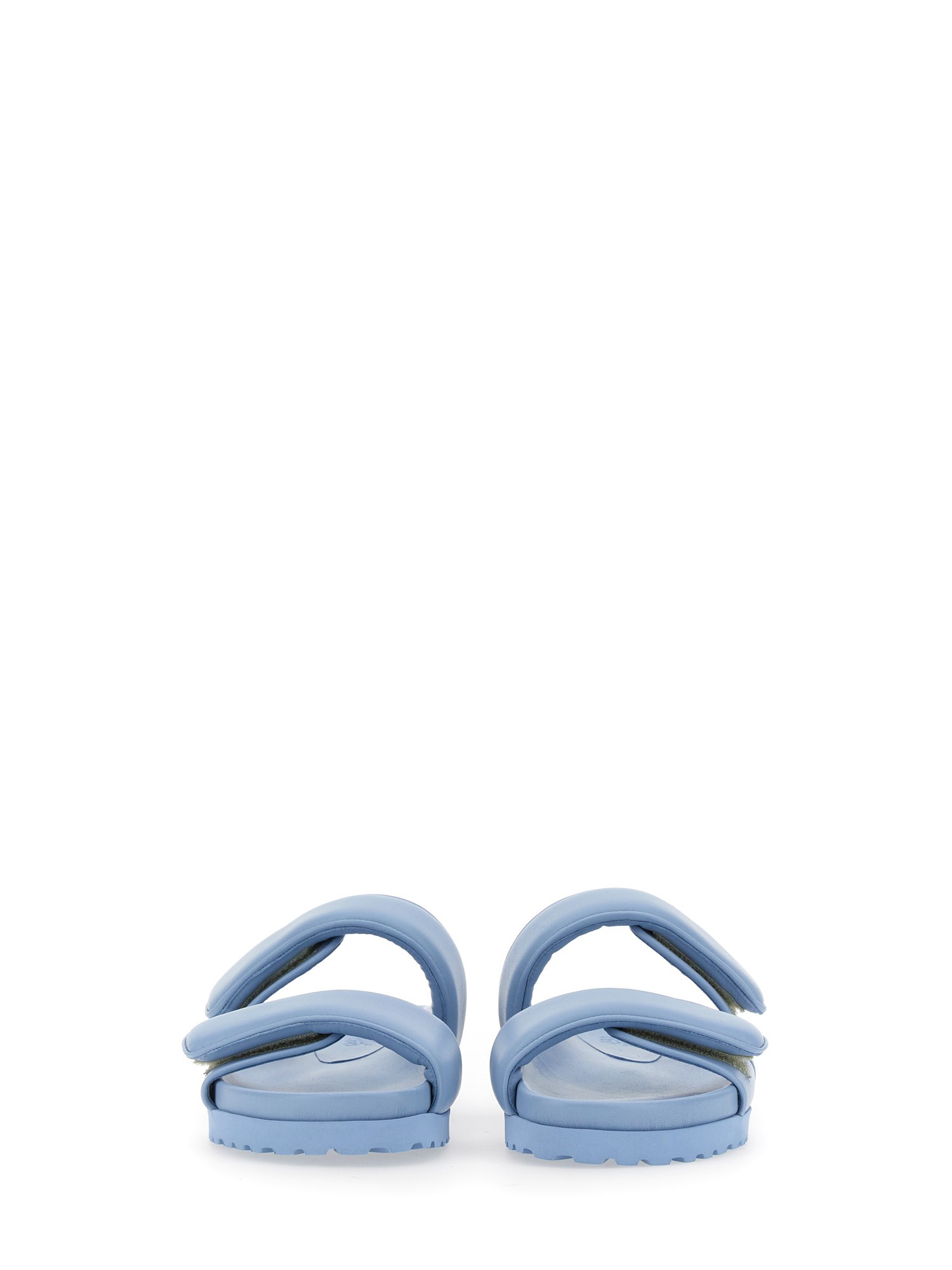 I sandali Perni 11 Gia x Pernille Teisbaek Puffy Nappa Leather Strap Mules di Gia Borghini sono la calzatura perfetta per tutti i giorni. Queste mules in tela hanno un doppio strato di pelle imbottita e sono regolabili con una chiusura in velcro. La suola in gomma è super resistente e flessibile e rende queste scarpe perfette per il comfort.