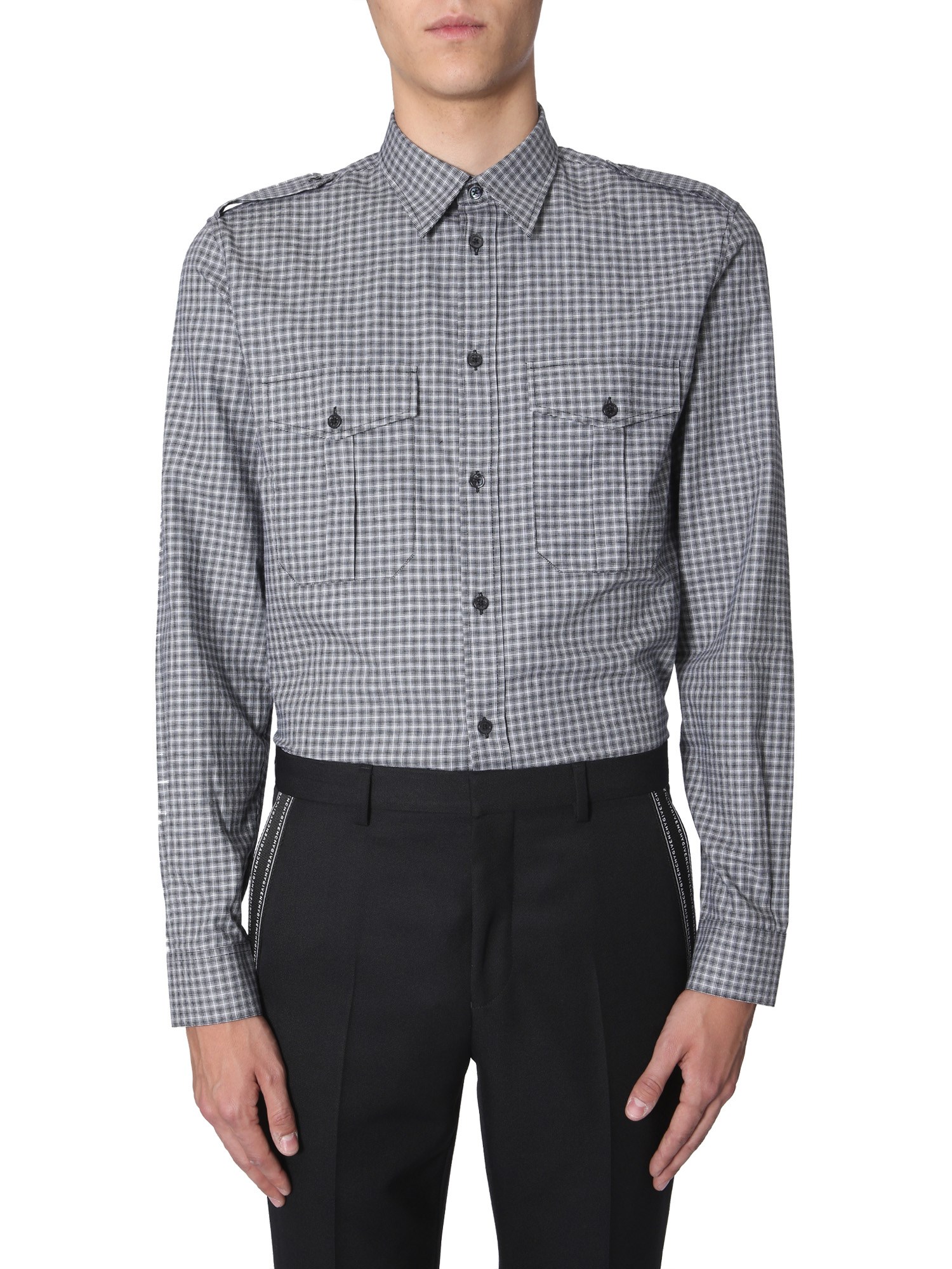 - COLLETTO A PUNTA- MOSTRINE SULLE SPALLE- DUE TASCHE APPLICATE SUL PETTO- REGULAR FIT - 100% COTONE - IL MODELLO È ALTO 190 CM E INDOSSA LA TAGLIA 40