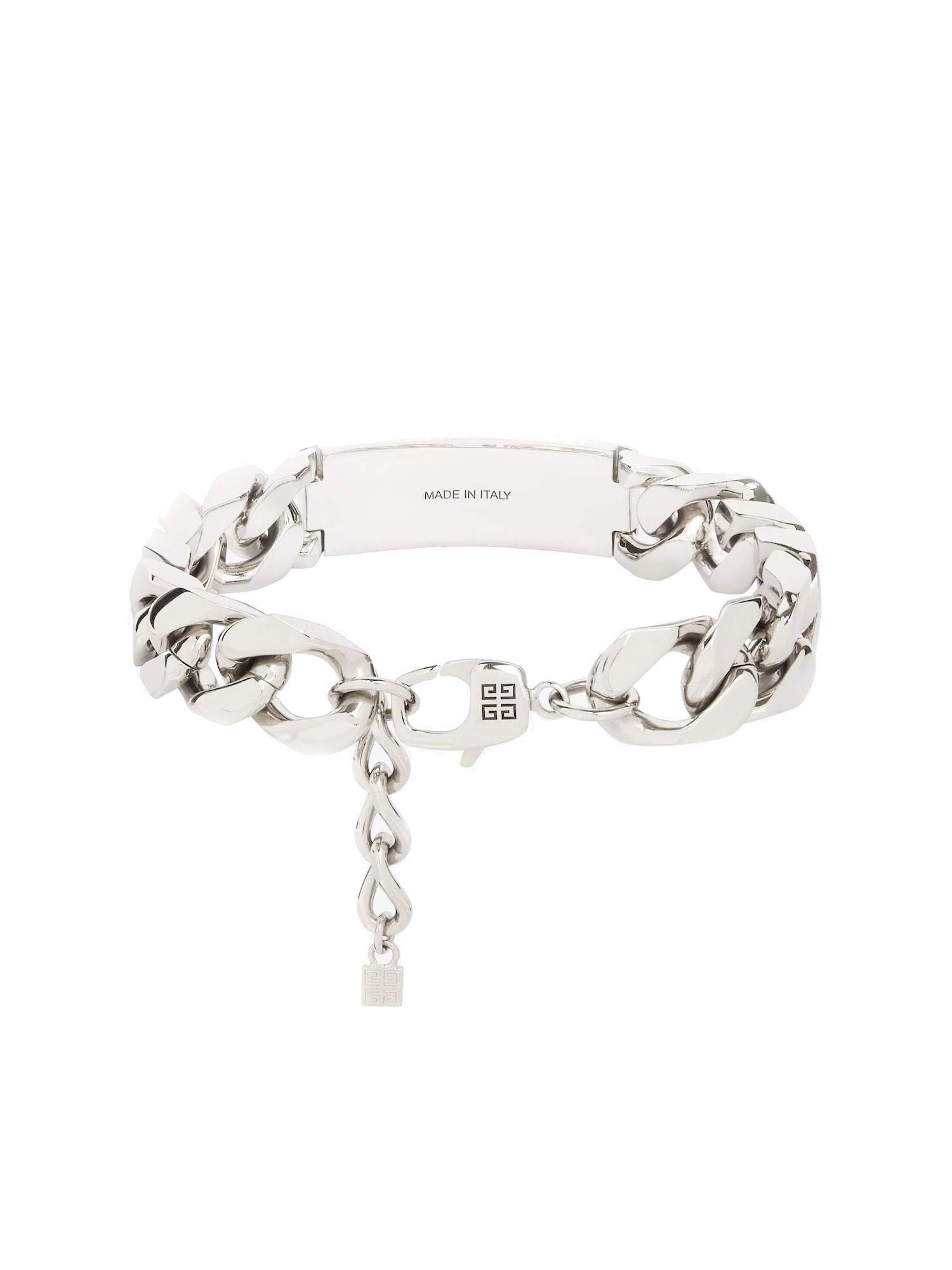 - CHIUSURA REGOLABILE- TARGHETTA IN METALLO CON LOGO INCISO- DESIGN A MAGLIE METALLICHE- FINITURA ARGENTO- 100% OTTONE- MADE IN ITALY