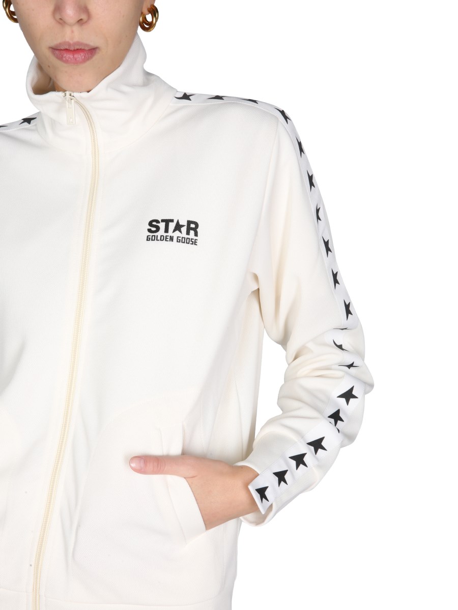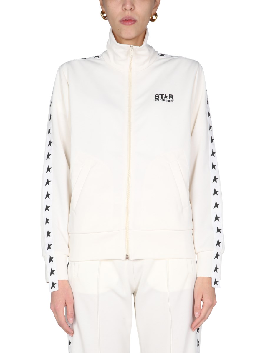 Questa morbidissima felpa "Denise" di Golden Goose è il capo perfetto da indossare in palestra, al lavoro o in salotto. Presenta una scollatura alta con chiusura frontale a zip, maniche lunghe con polsini a coste e orlo dritto. La felpa, dalla vestibilità regolare, presenta due tasche laterali e una banda laterale con logo in gros-grain.