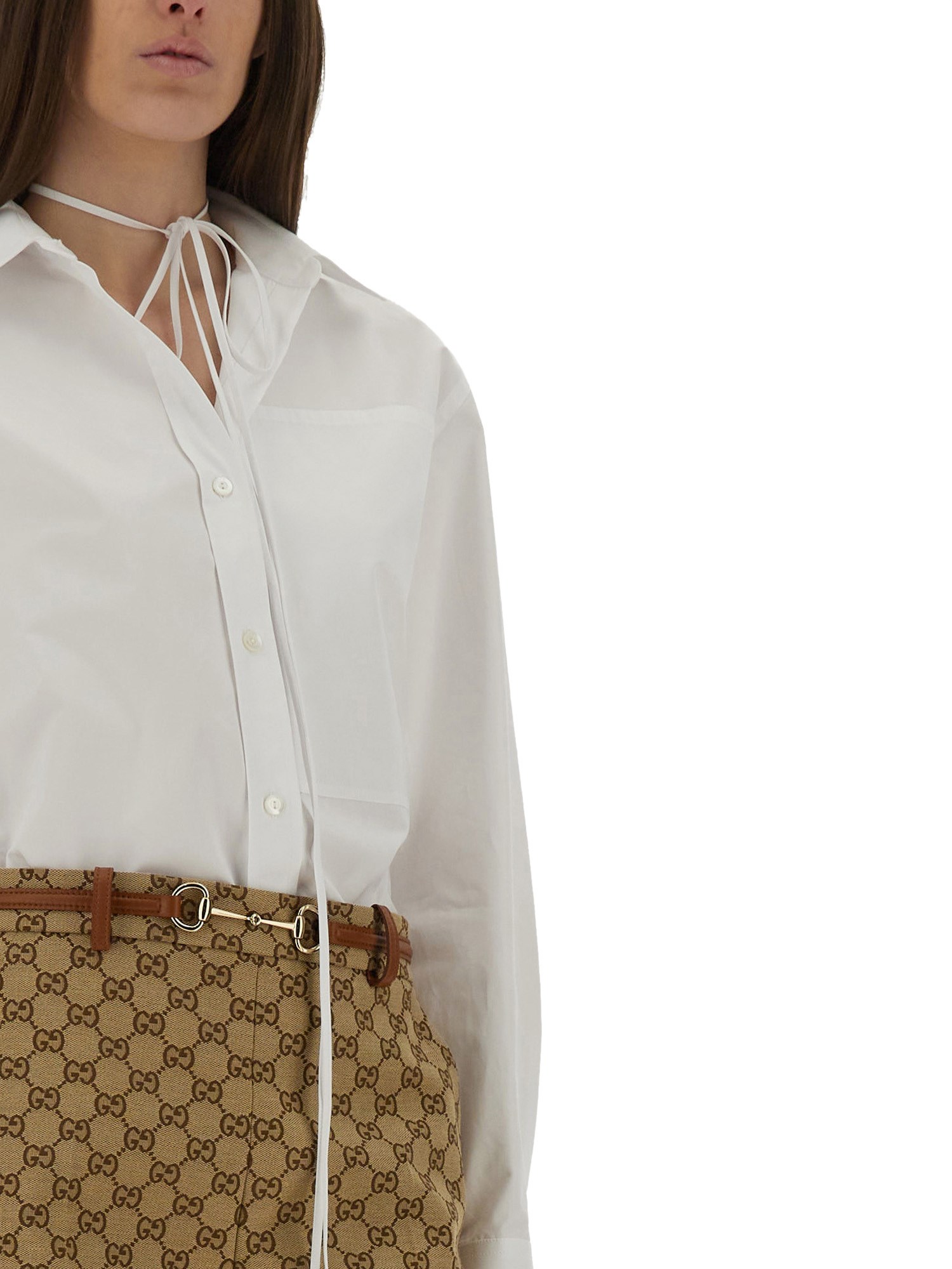 CAMICIA IN POPELINE DI COTONE CON LOGO IN RILIEVO