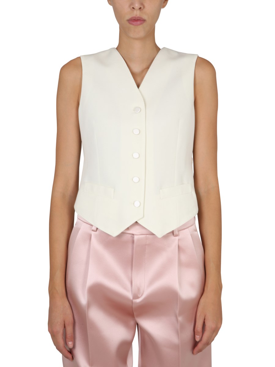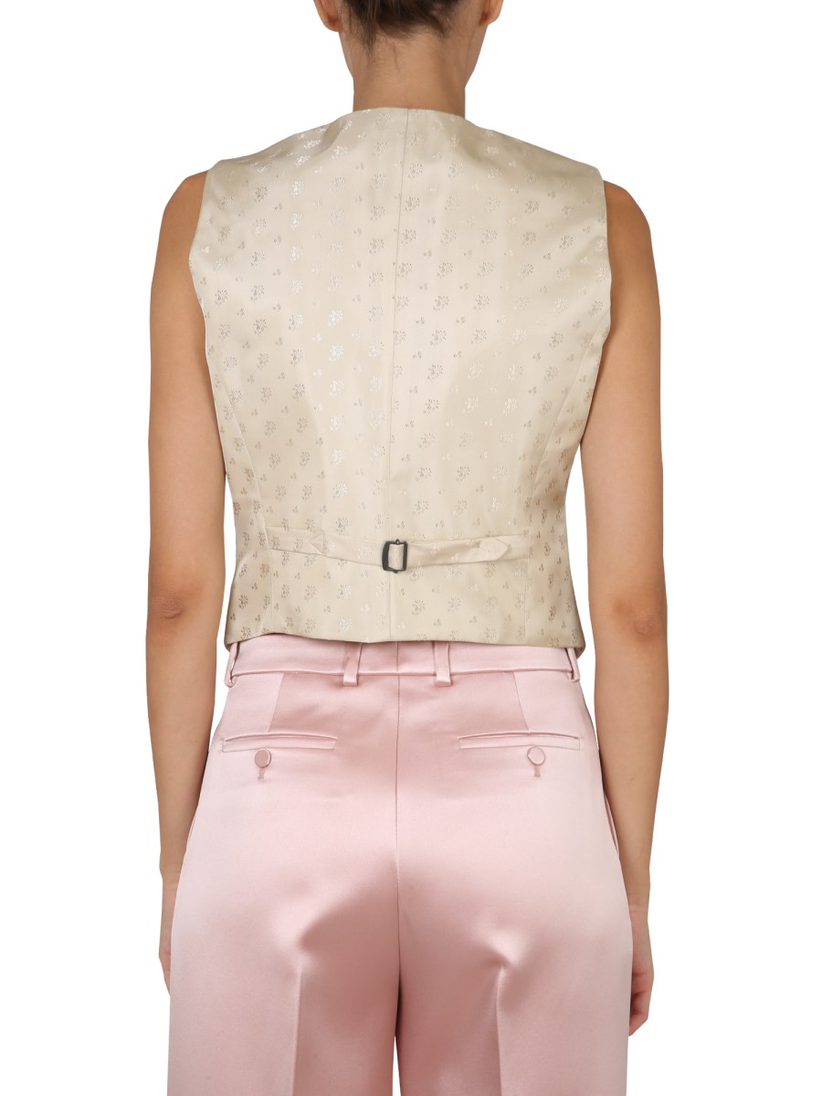 Questo gilet di lana senza maniche di Gucci è una rivisitazione moderna del tradizionale cappotto invernale. Ha uno scollo a V e una chiusura frontale con bottoni. Questo accogliente gilet è realizzato in lana, morbida e calda. Ha una chiusura frontale con bottoni e uno scollo a V con un motivo jacquard floreale sul retro.