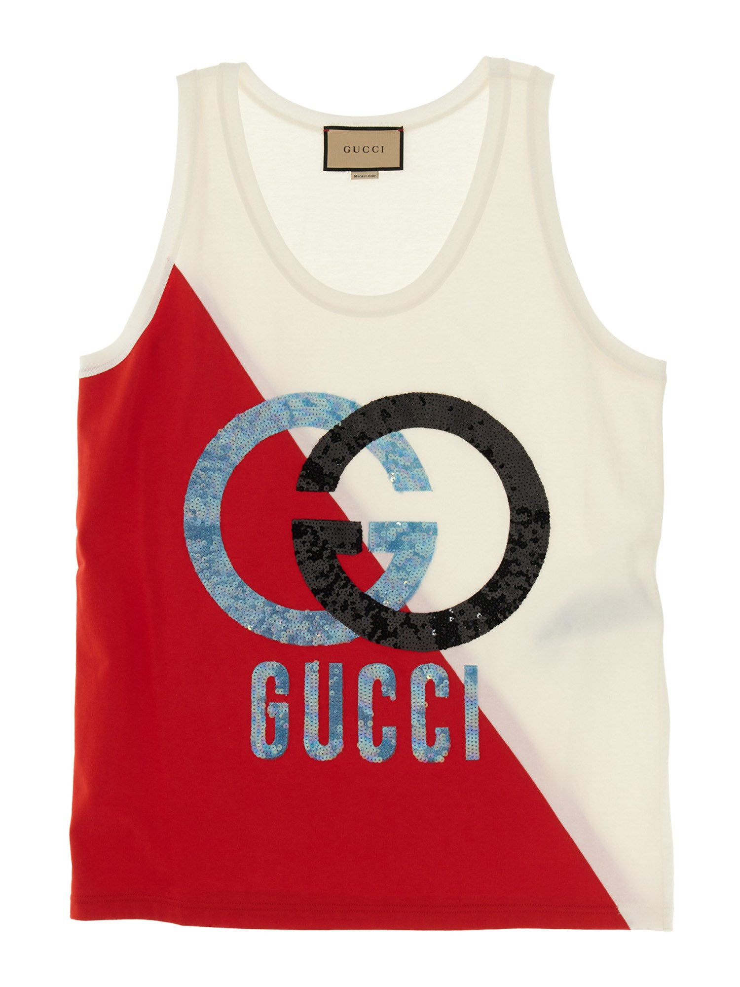 - INTARSIO E RICAMO INCROCIO GG E GUCCI- MODELLO SMANICATO- SCOLLO A U- 100% COTONE- MADE IN ITALY