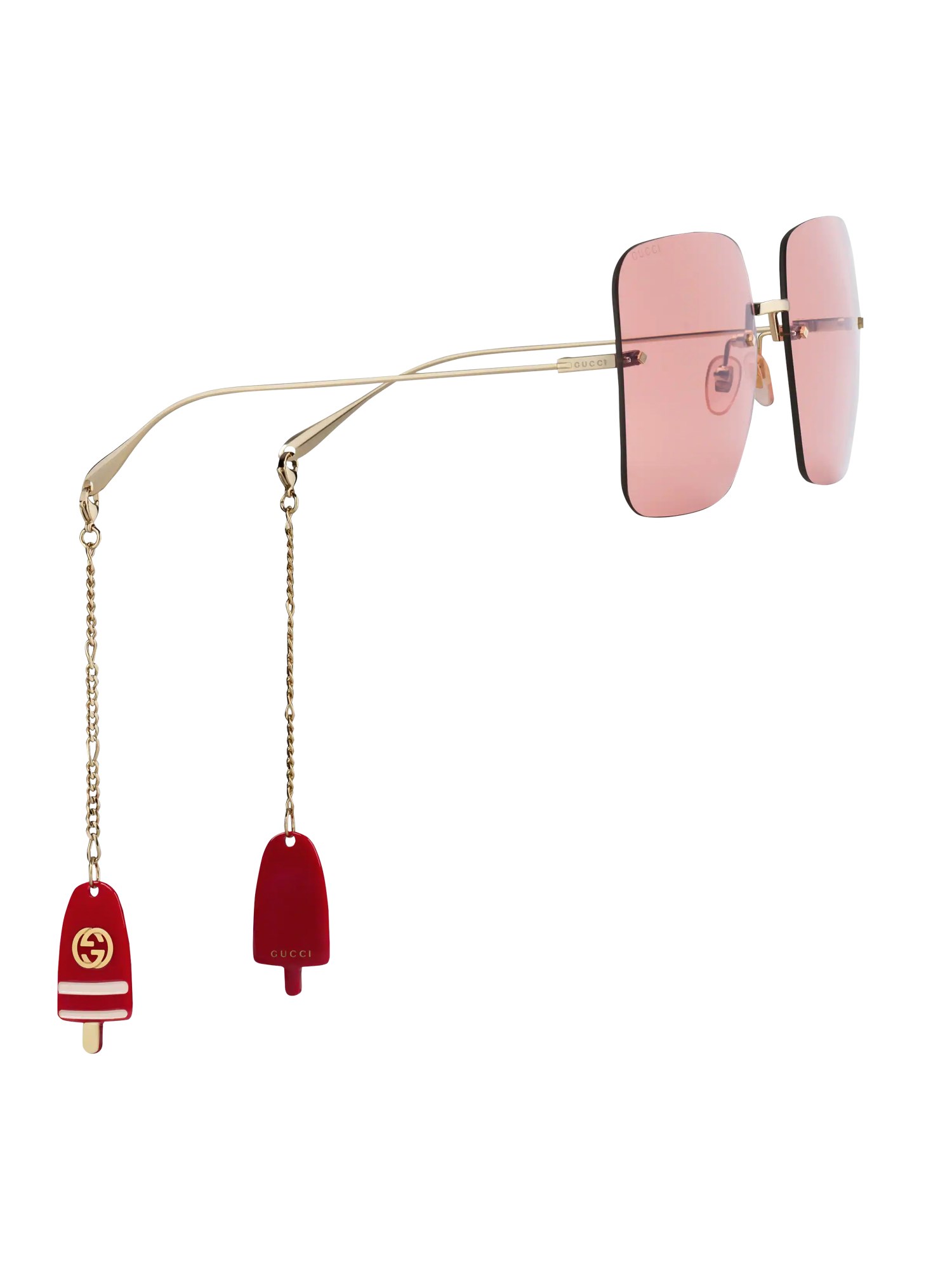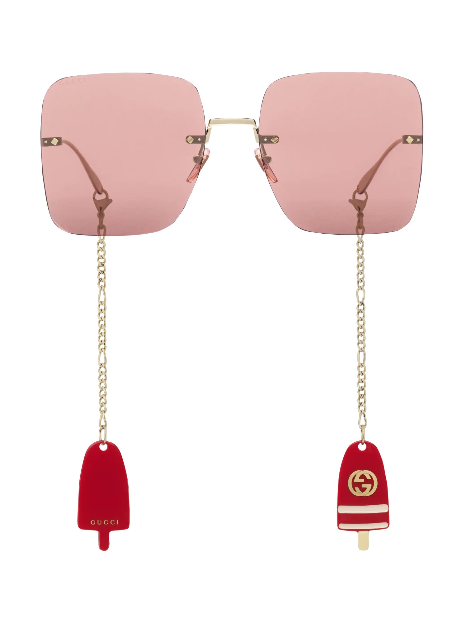 - DIAMETRO LENTE: 6.1 CM- LUNGHEZZA PONTE: 1.9 CM- LUNGHEZZA ASTE: 13.5 CM- PENDENTE A FORMA GELATO- DETTAGLIO LOGO- 100% ACETATO