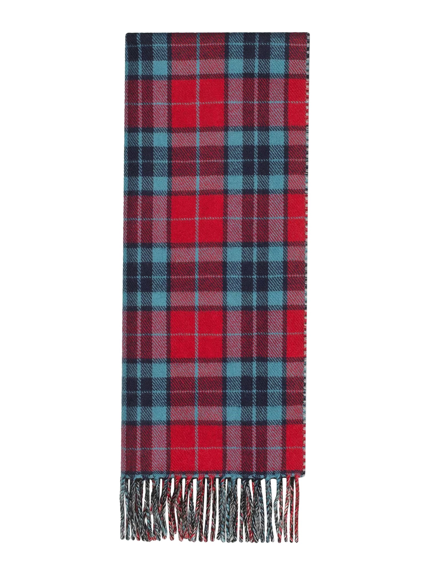 - MOTIVO TARTAN E MONOGRAMMA- BORDI CON FRANGE- DIMENSIONI: A 180 CM X L 25 CM- 100% LANA- MADE IN ITALY