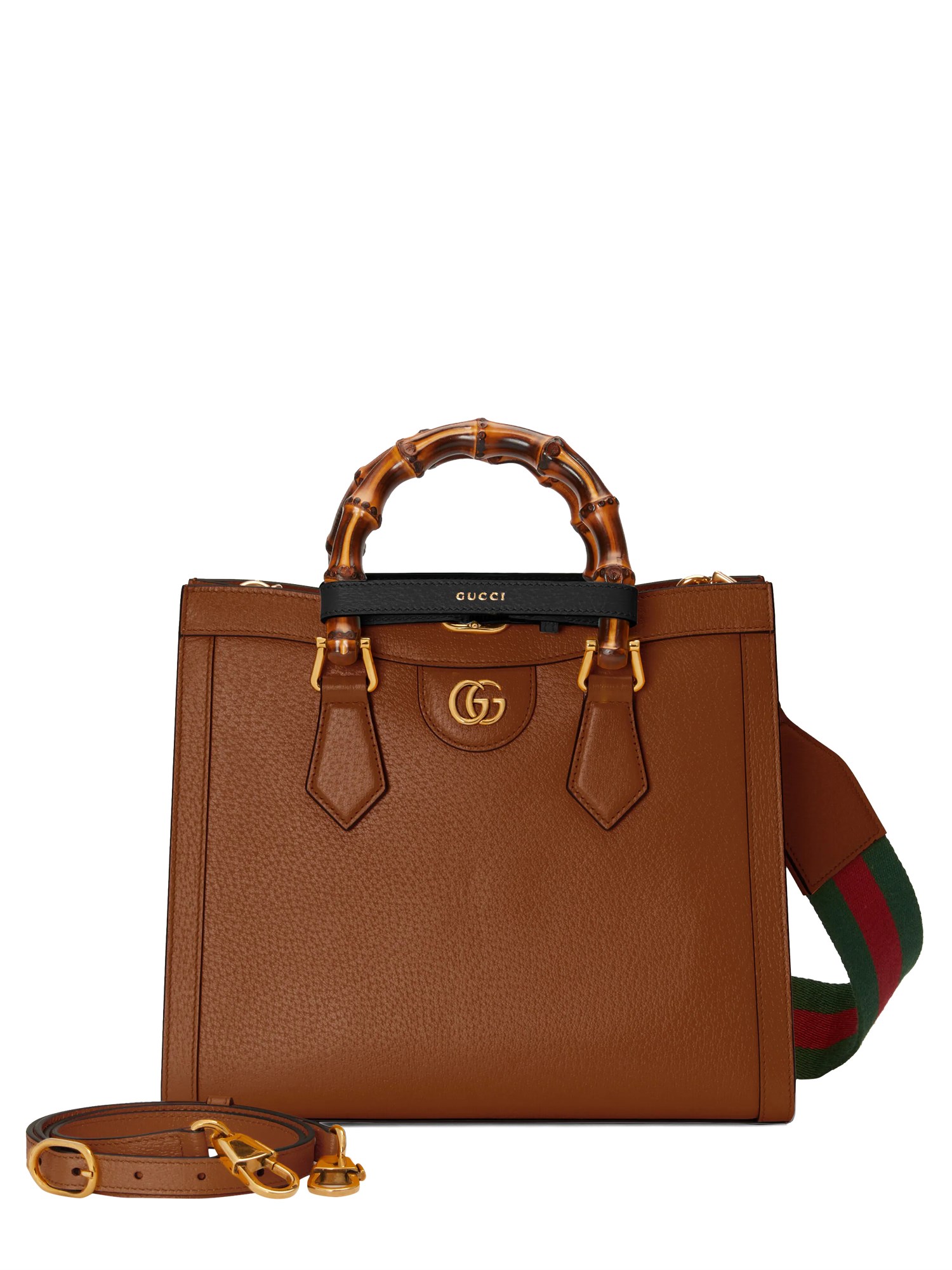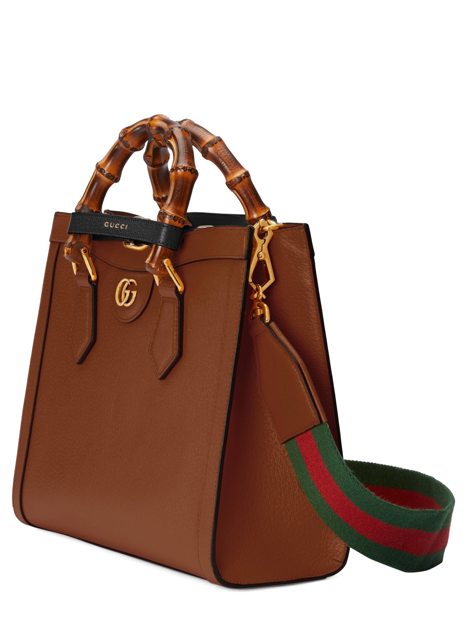 Il concetto di reinvenzione continua a plasmare i modelli della Maison. Evoluzione della tote con manico in bambù introdotta per la prima volta nel 1991, la Gucci Diana rappresenta il concetto di stile in costante evoluzione. Il design gioca con i dettagli tradizionali e li rinnova con un nuovo significato. Giocando con questa idea, le fasce funzionali utilizzate per mantenere in forma i manici in bambù vengono reimmaginate come giocose cinture in pelle.