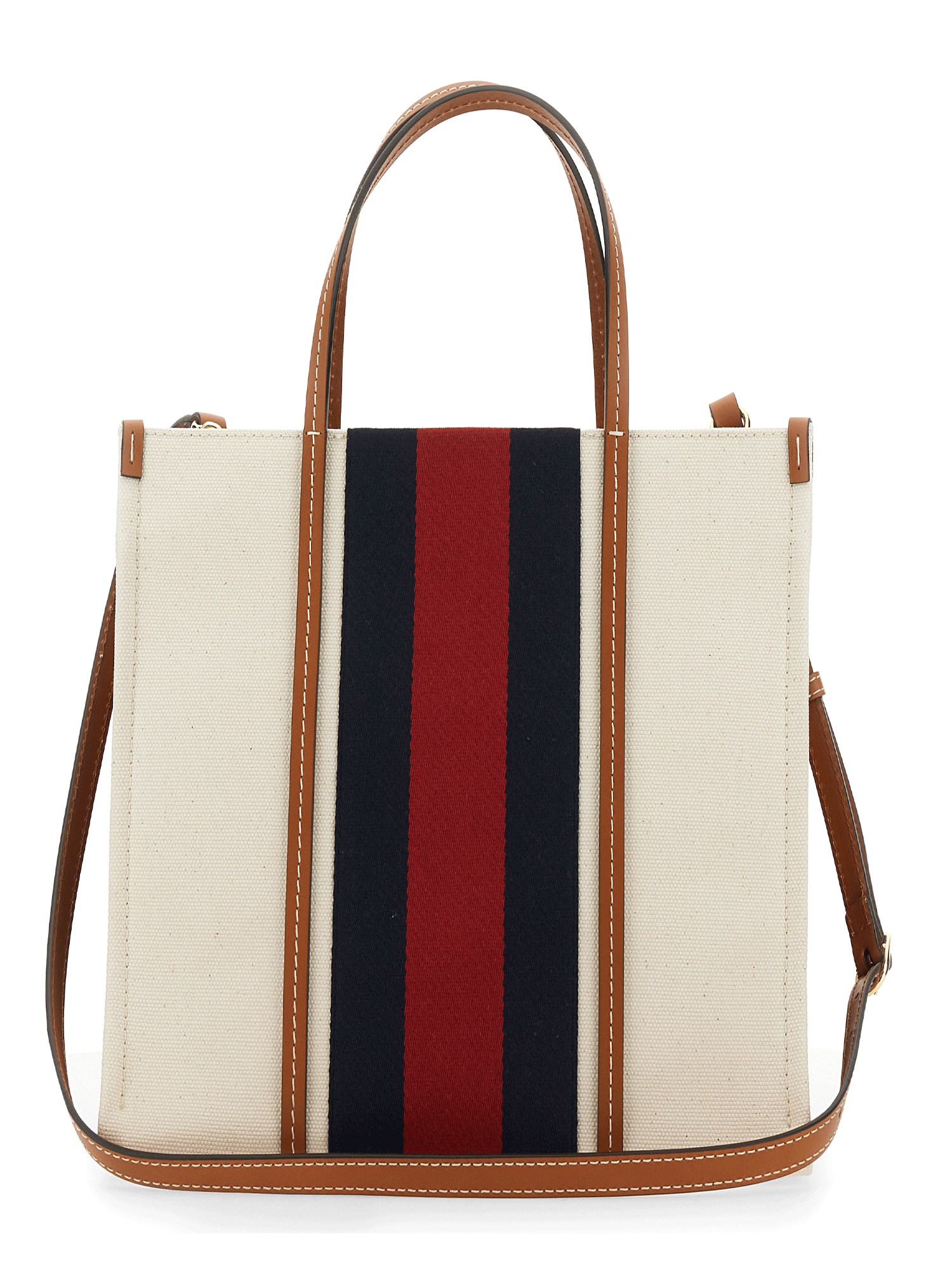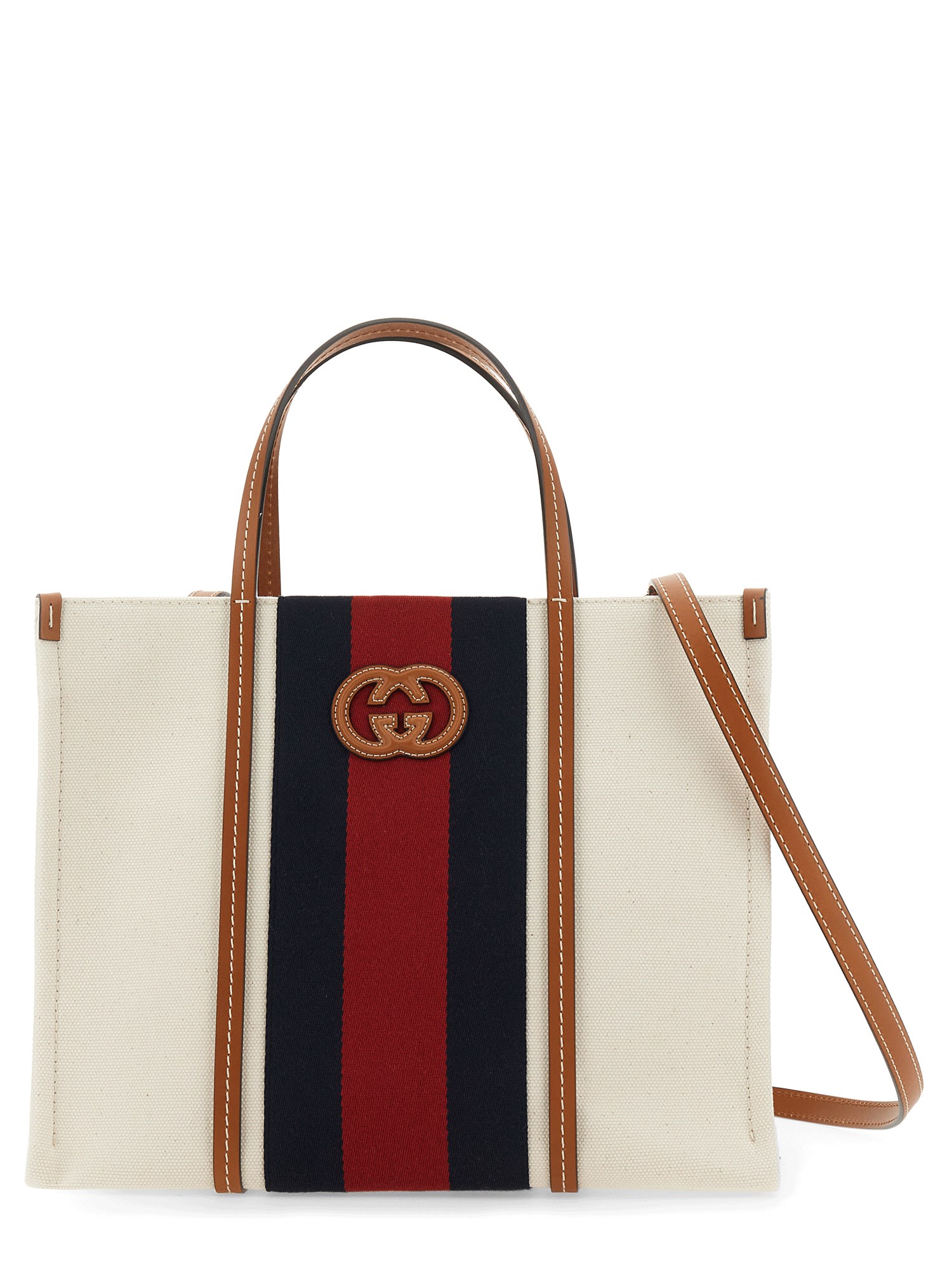 La caratteristica striscia Web blu e rossa di Gucci è presente in questa tote bag media, che celebra le radici equestri della Maison. L'emblema della G intrecciata è posizionato al centro e conferisce un tocco di fascino vintage al design.