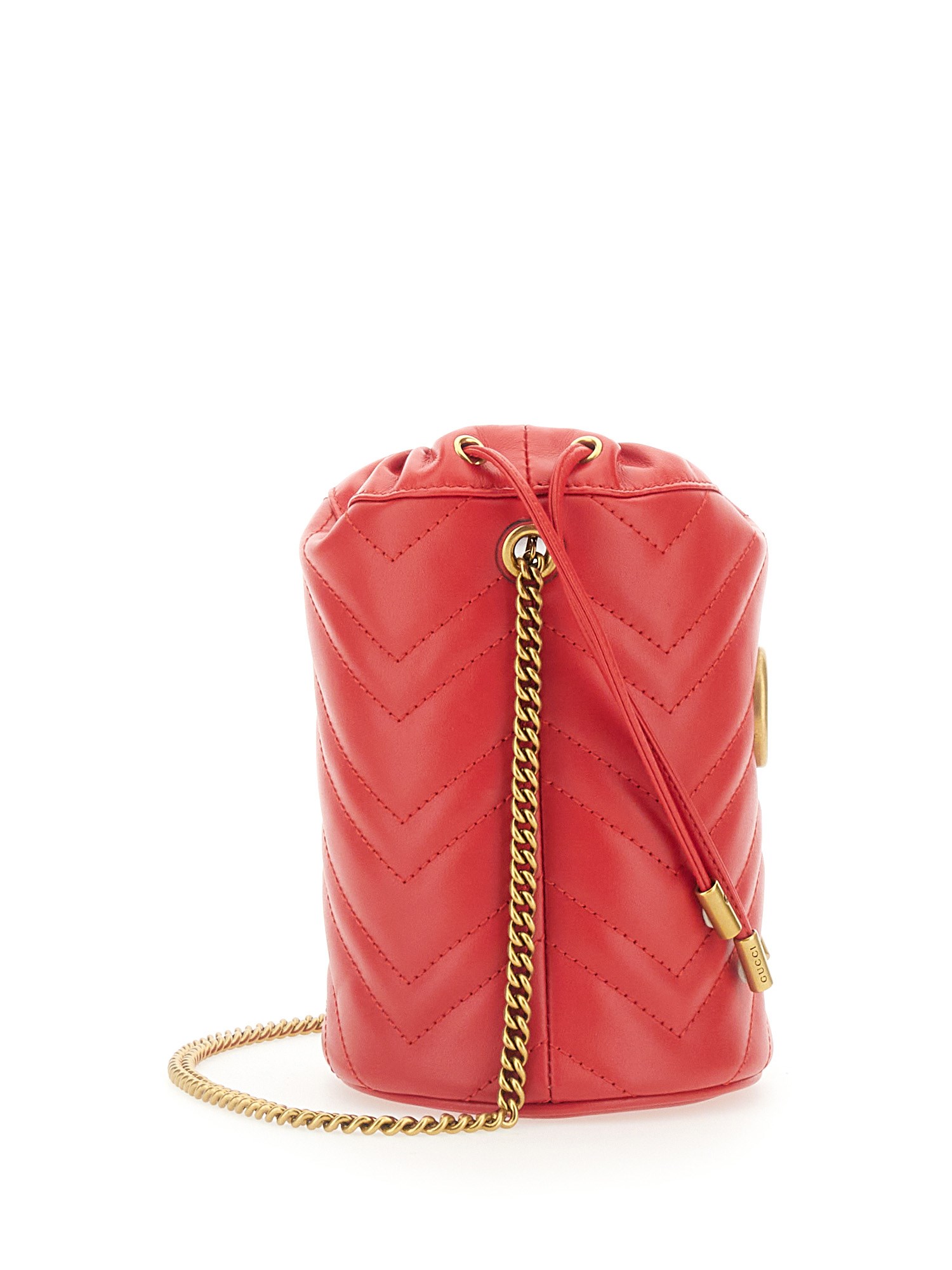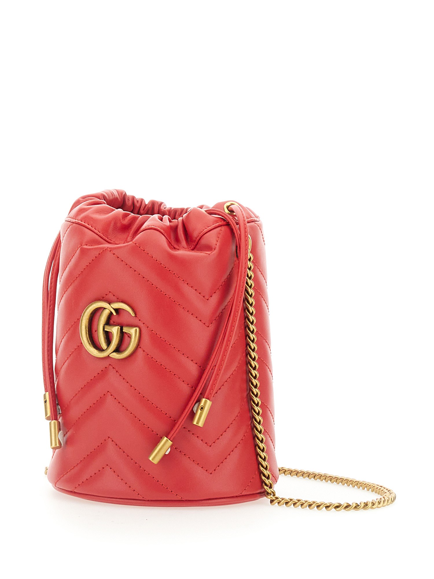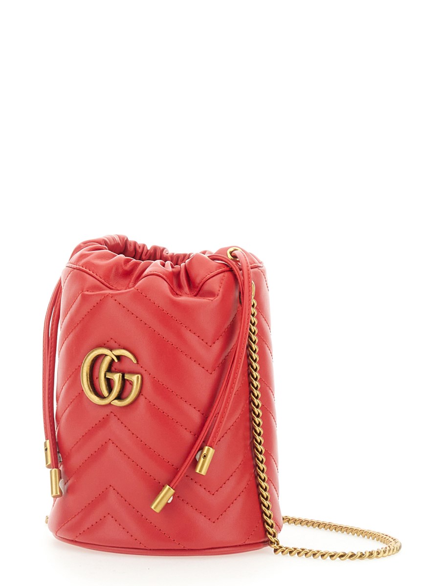 La mini borsa a secchiello GG Marmont è realizzata in pelle matelassé trapuntata in una tonalità di rosso che rispecchia le vibranti sfumature che caratterizzano l'ultima collezione. La forma è definita dall'emblematico hardware Double G della linea, un simbolo d'archivio degli anni '70 che è diventato un segno distintivo della Maison. Caratterizzato da una chiusura a coulisse, questo modello versatile può essere indossato anche come borsa a tracolla.