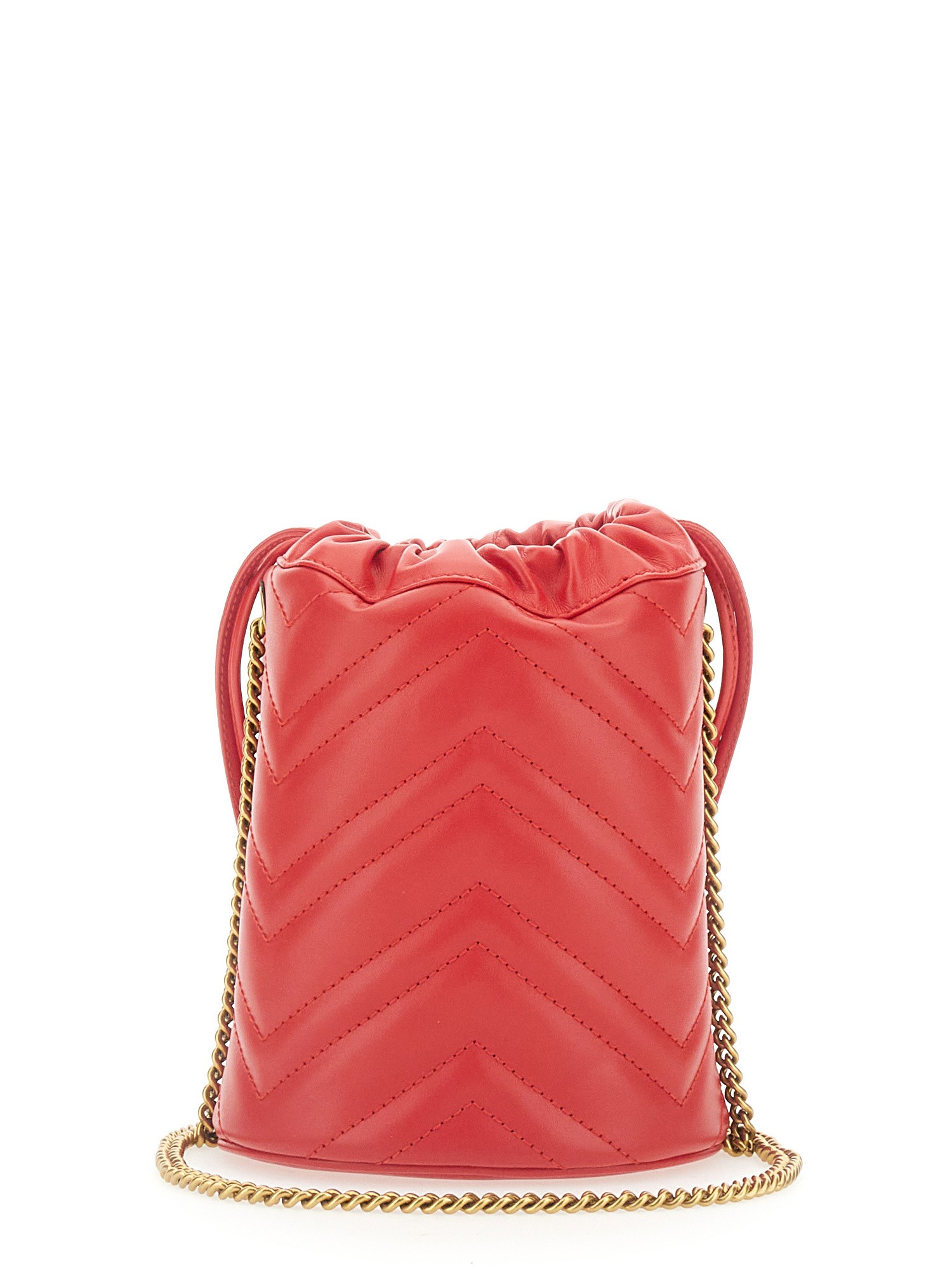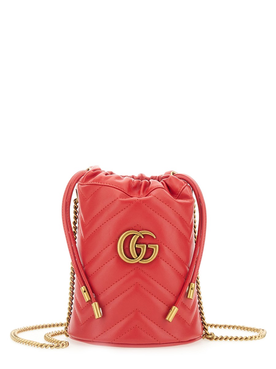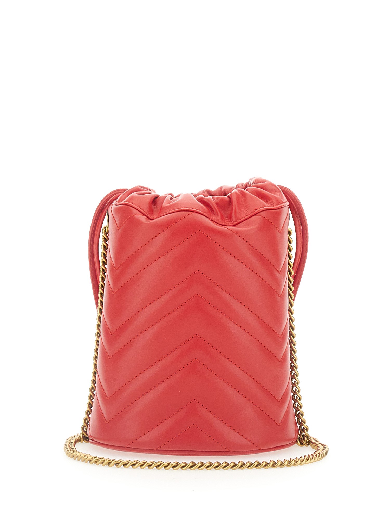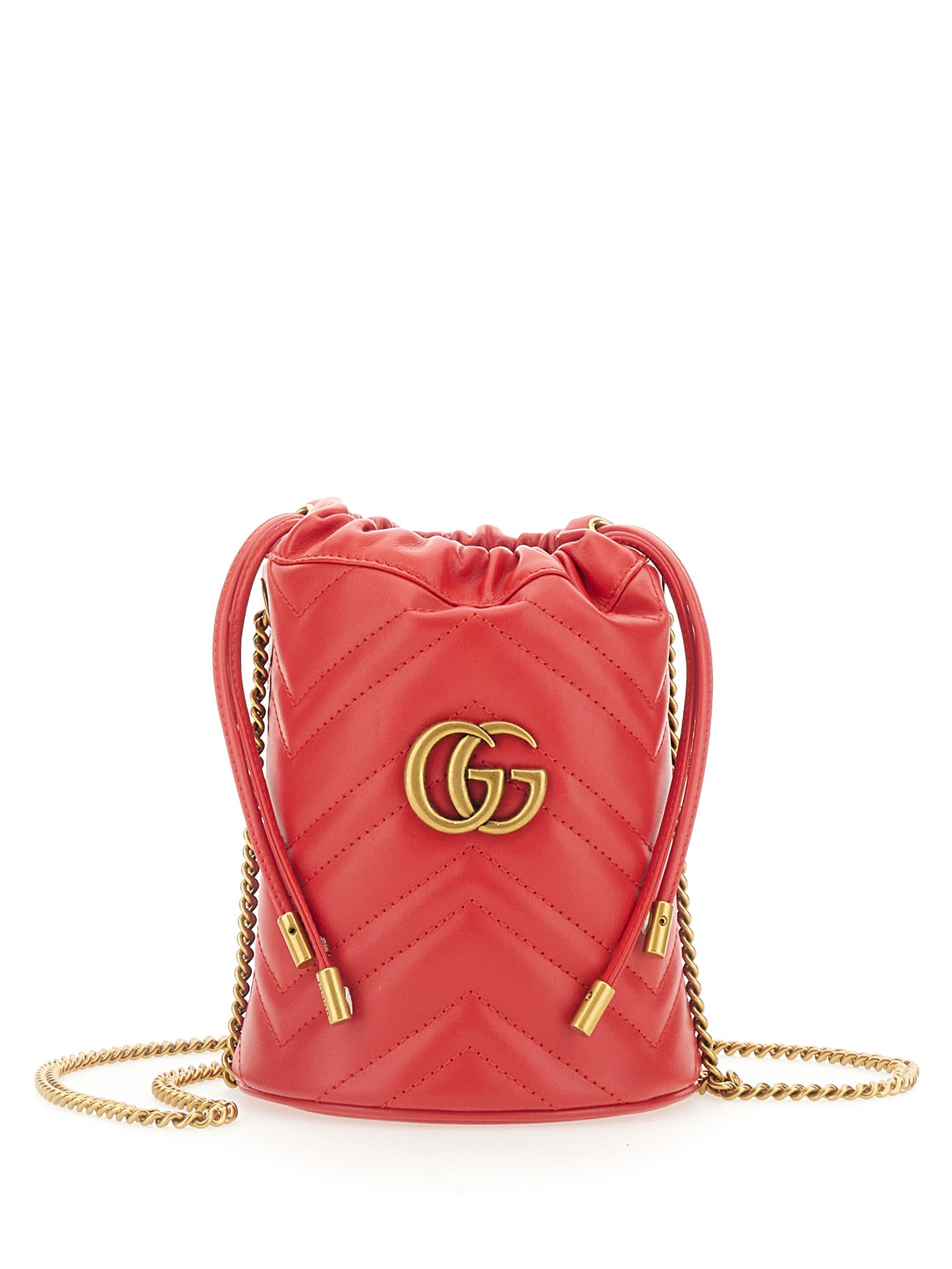 La mini borsa a secchiello GG Marmont è realizzata in pelle matelassé trapuntata in una tonalità di rosso che rispecchia le vibranti sfumature che caratterizzano l'ultima collezione. La forma è definita dall'emblematico hardware Double G della linea, un simbolo d'archivio degli anni '70 che è diventato un segno distintivo della Maison. Caratterizzato da una chiusura a coulisse, questo modello versatile può essere indossato anche come borsa a tracolla.