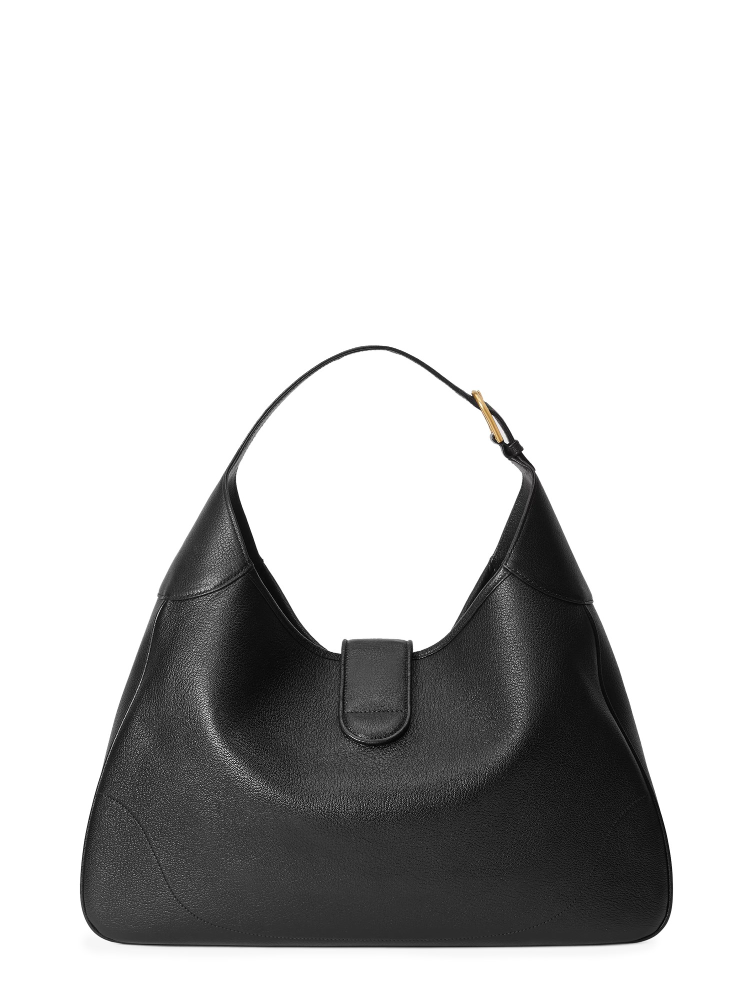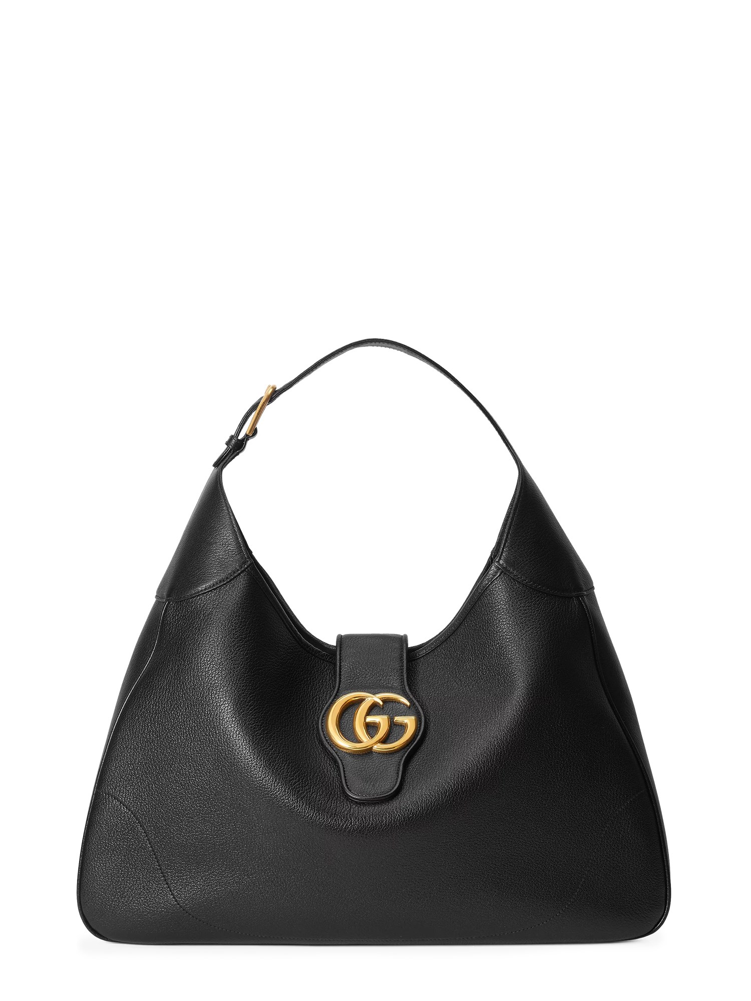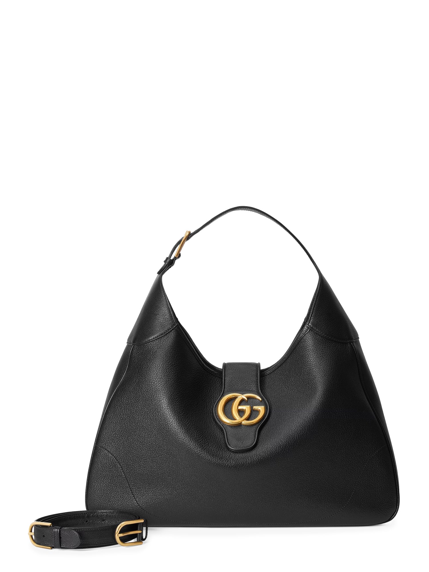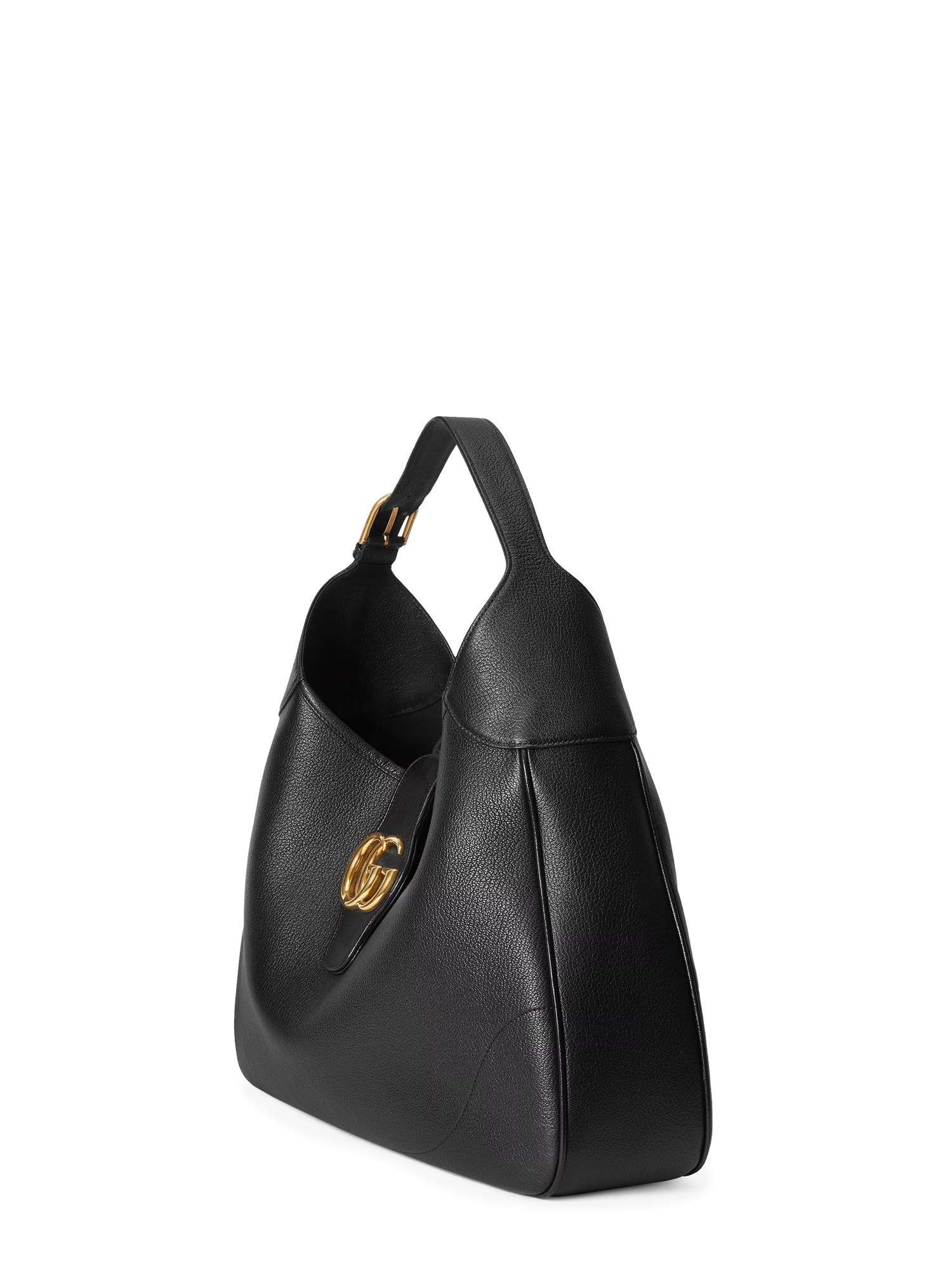 La narrativa contemporanea di Gucci esplora una miscela unica di elementi tradizionali e dei simboli più amati della Maison. Questa spaziosa borsa a tracolla è presentata in morbida pelle nera con un vistoso emblema della doppia G sulla chiusura.