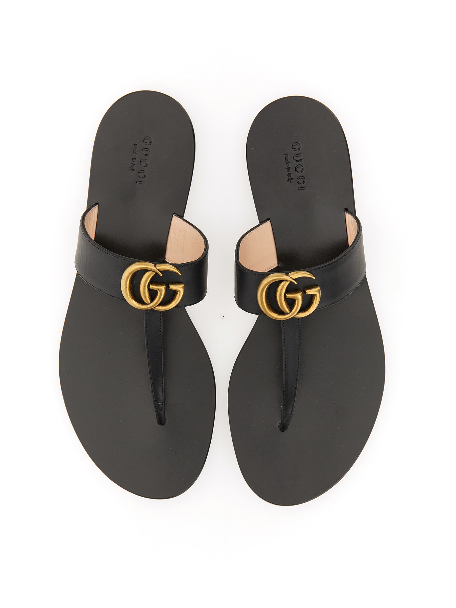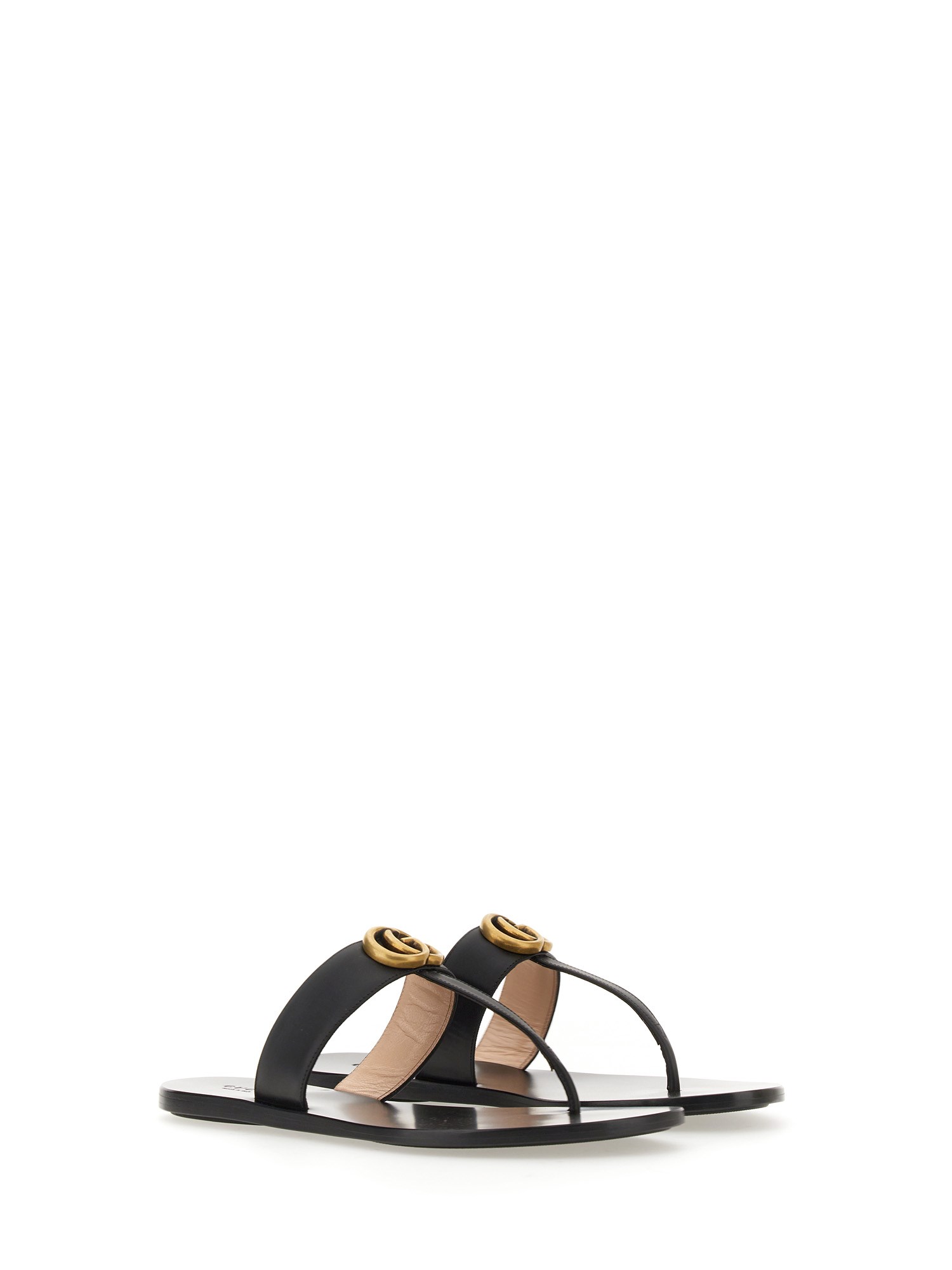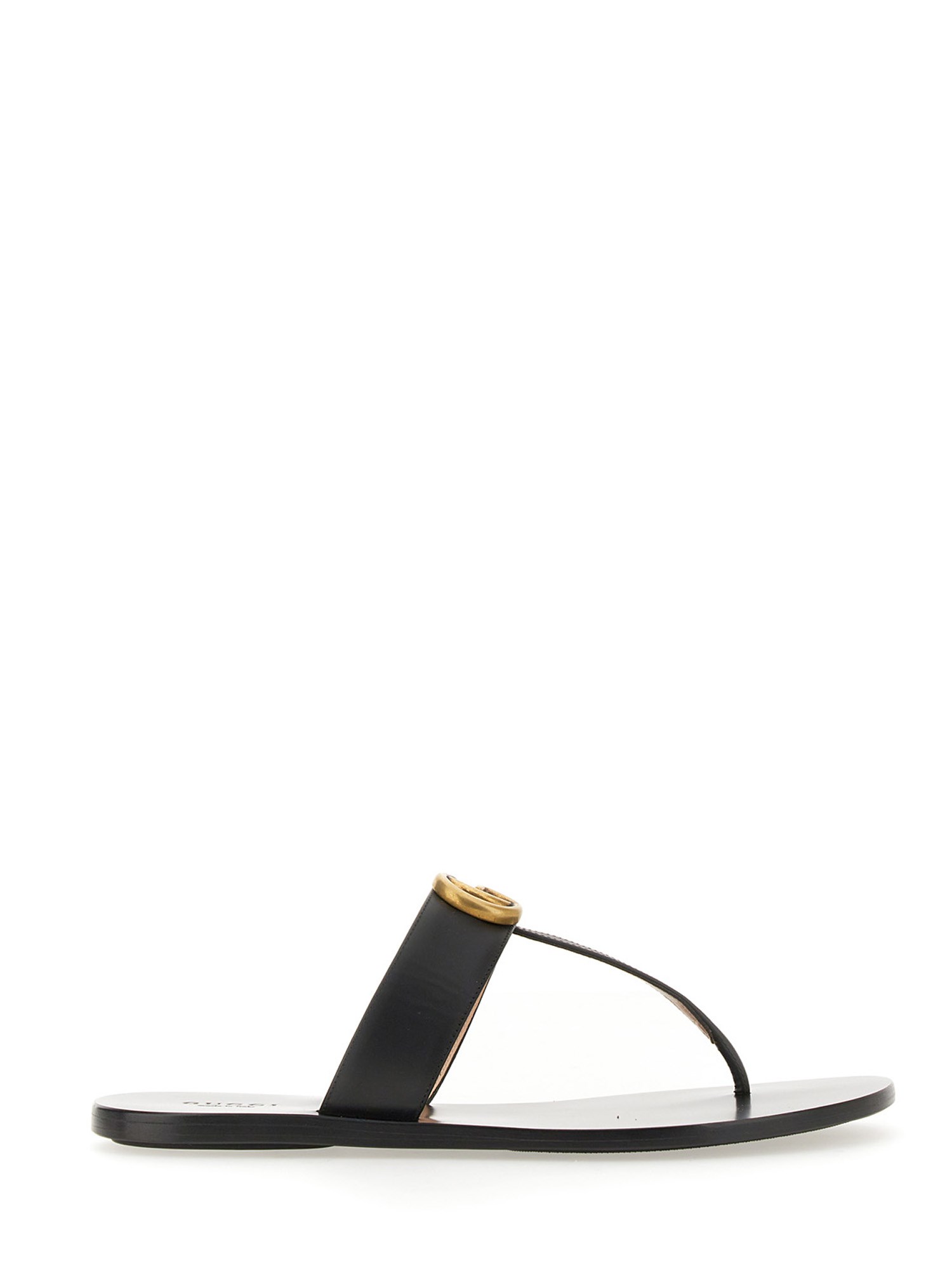 Il sandalo con infradito in pelle è impreziosito dalla ferramenta Double G, un modello d'archivio degli anni '70.