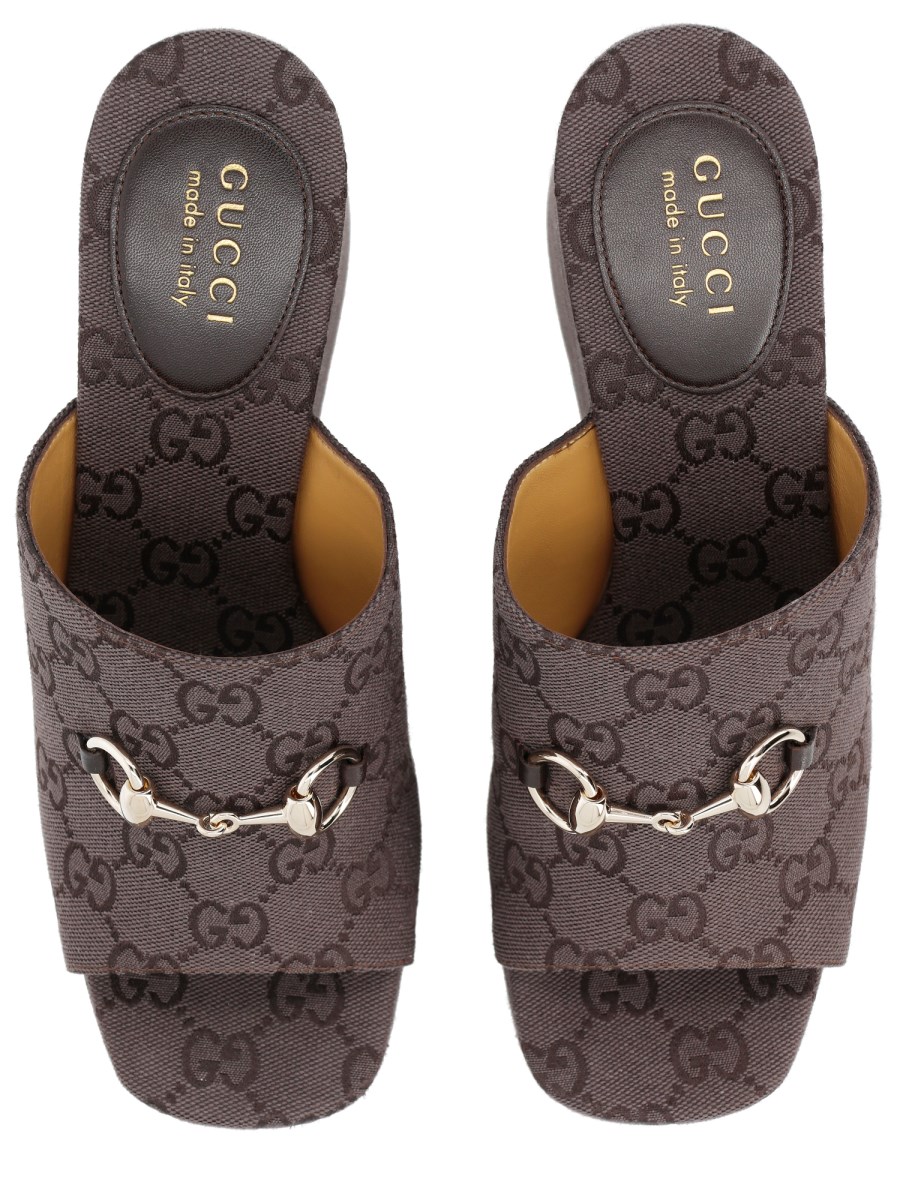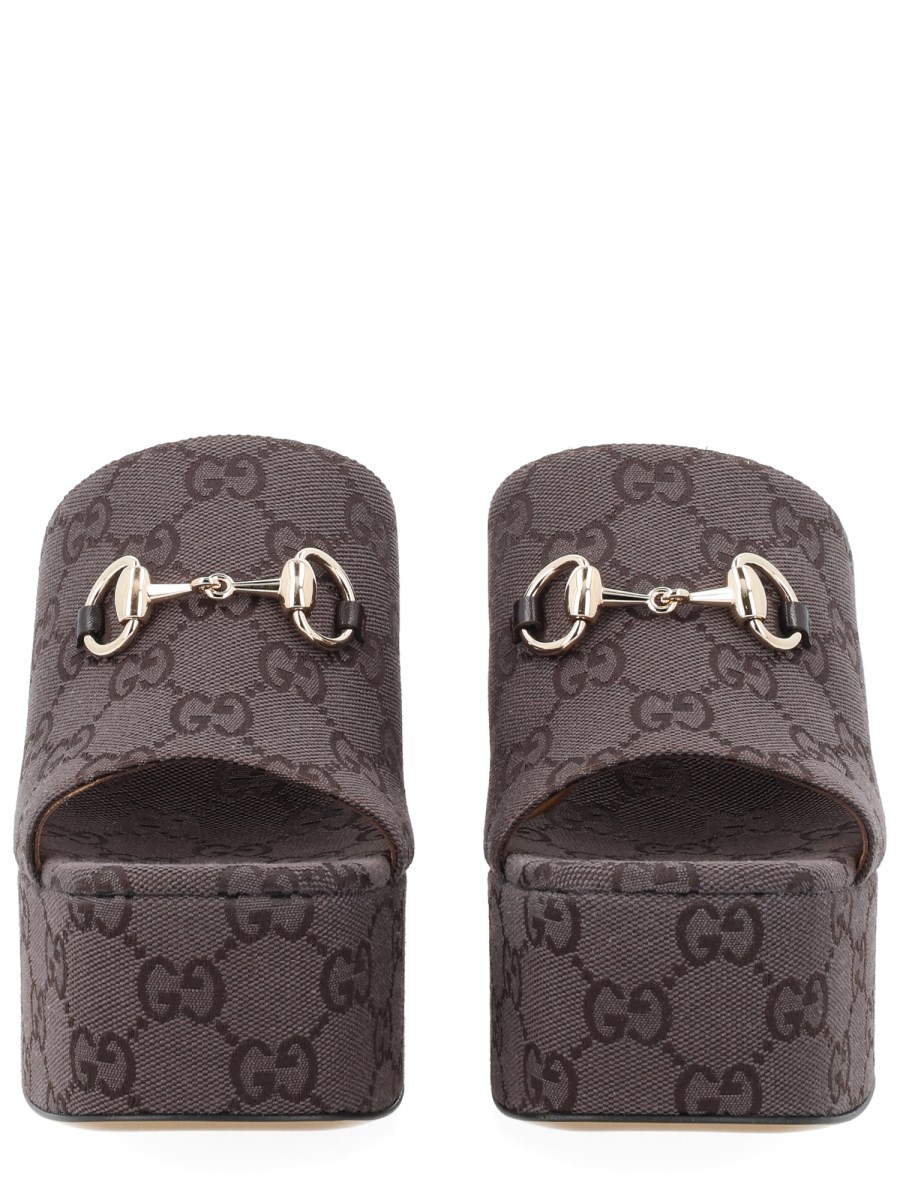 SANDALO CON ZEPPA IN TESSUTO GG DI COTONE