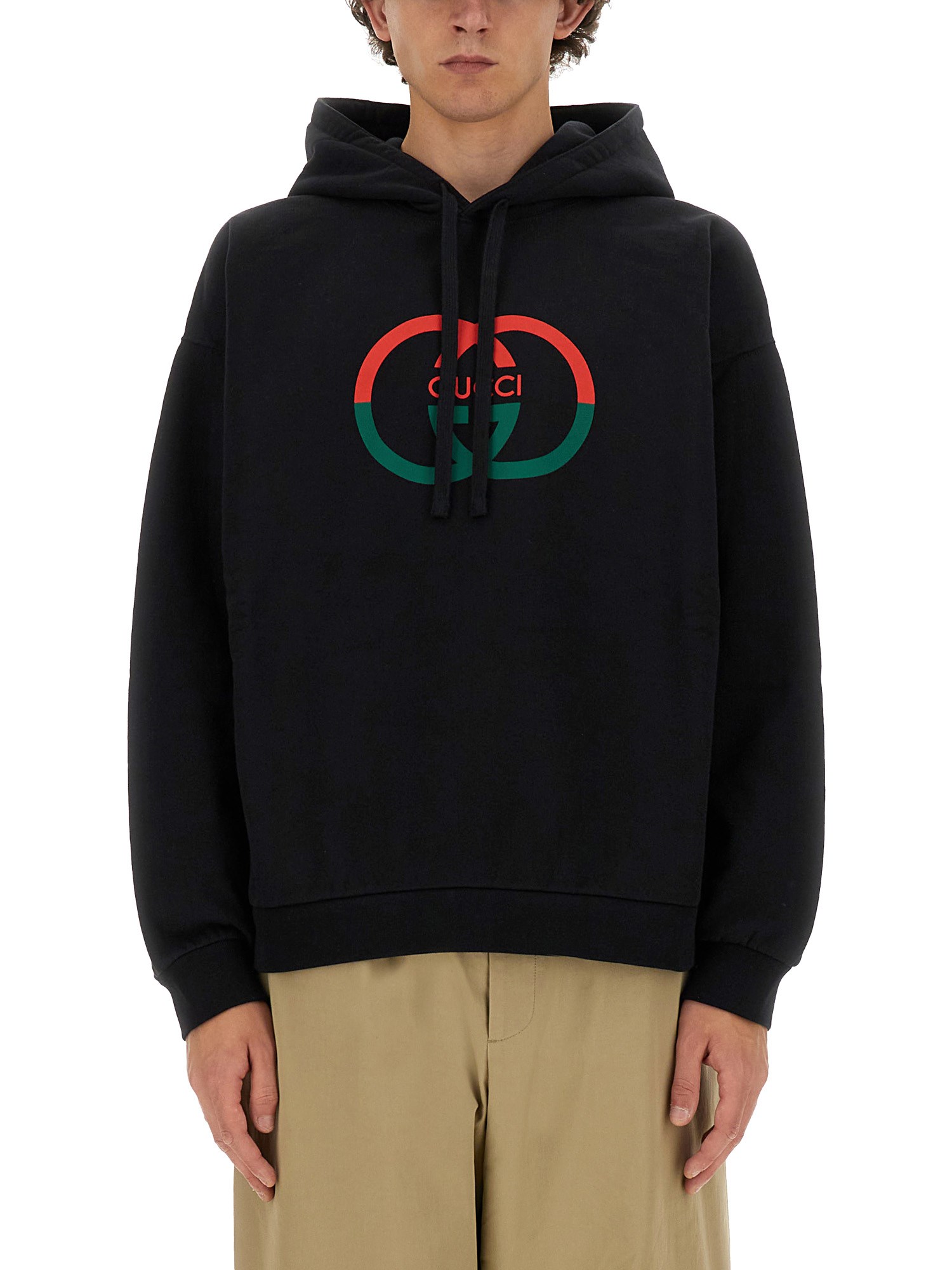 FELPA CON CAPPUCCIO STAMPATA IN JERSEY DI COTONE