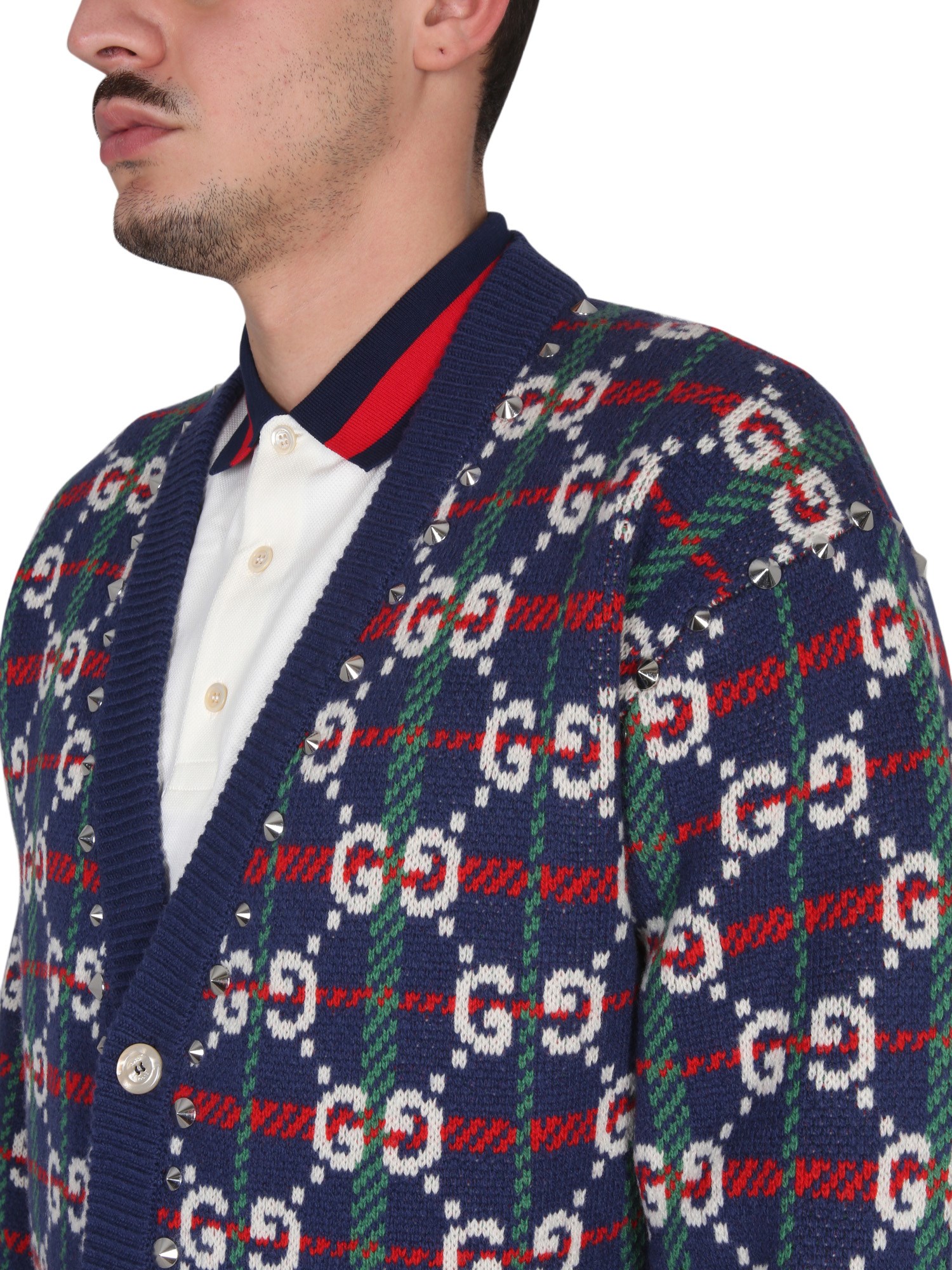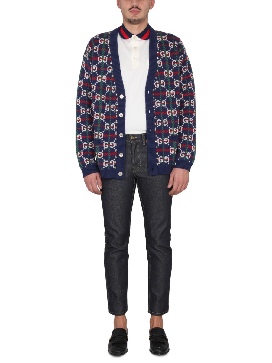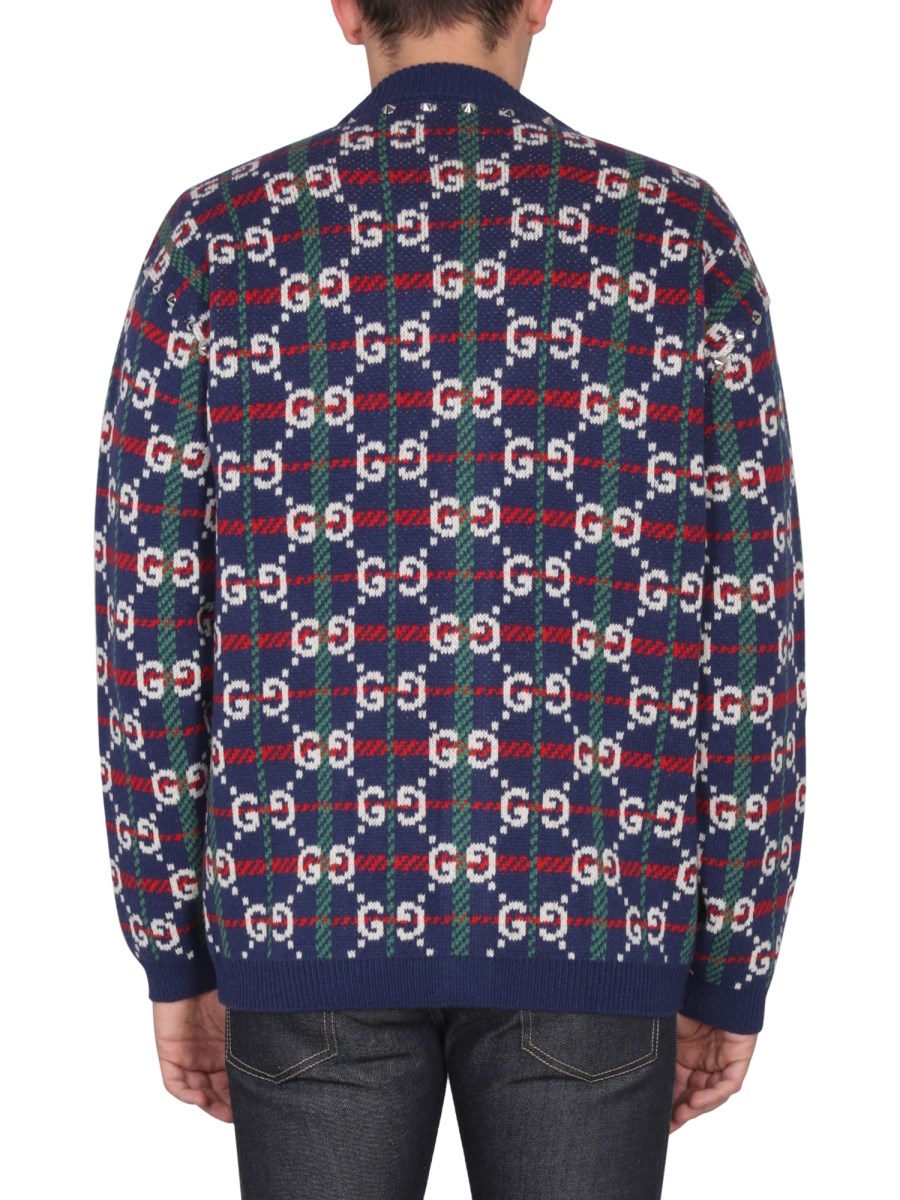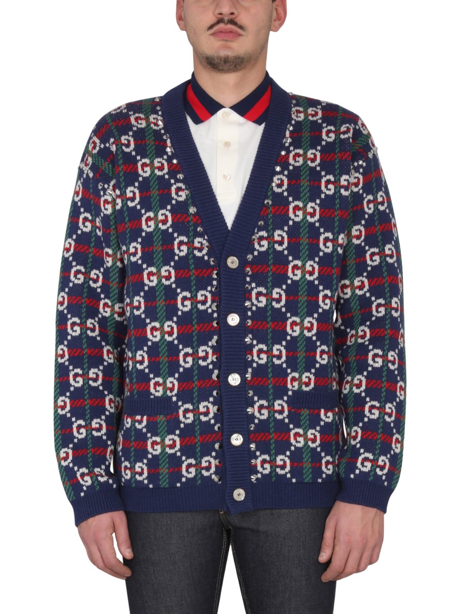CARDIGAN IN MAGLIA DI LANA A QUADRI CON MOTIVO GG