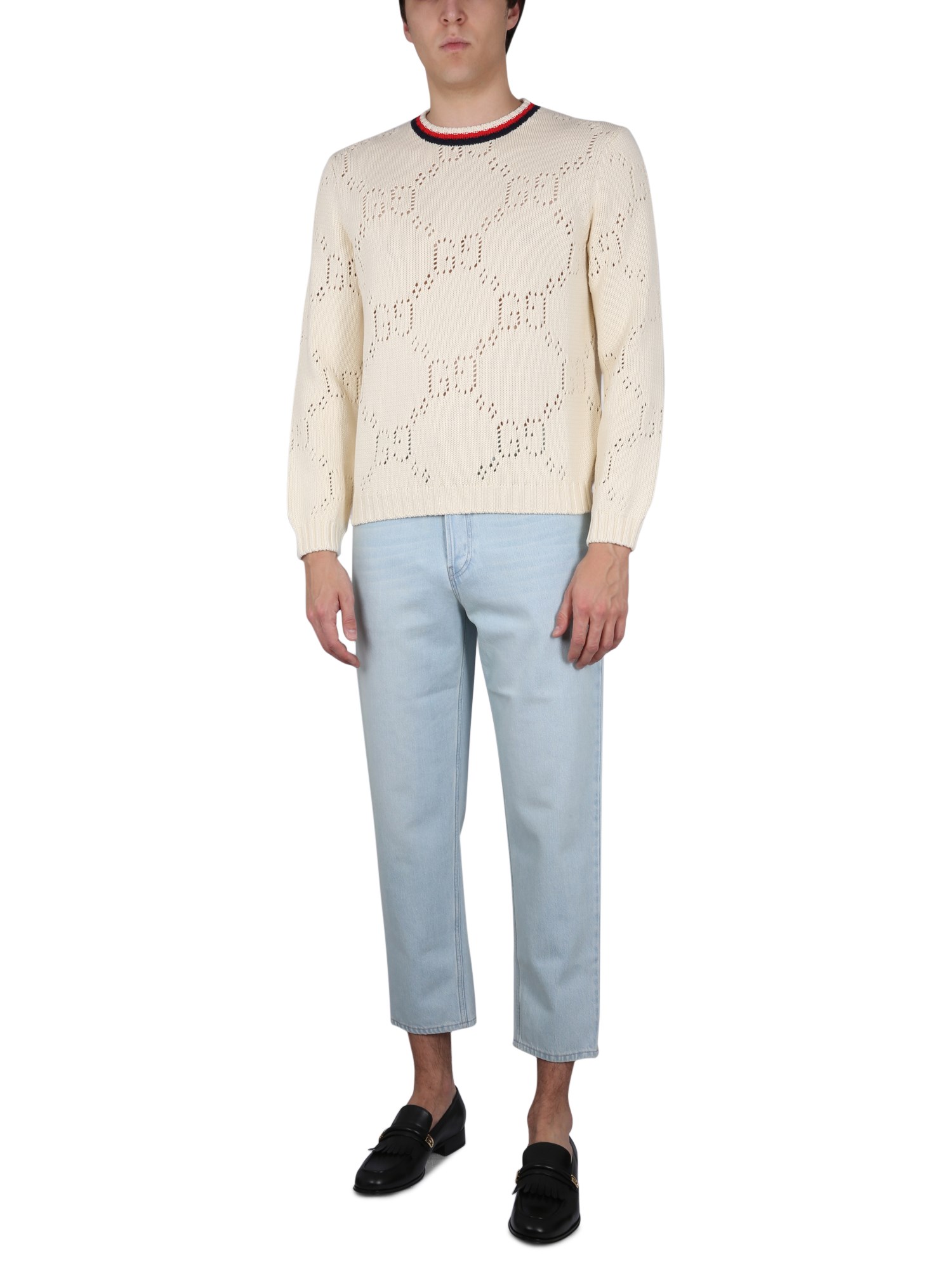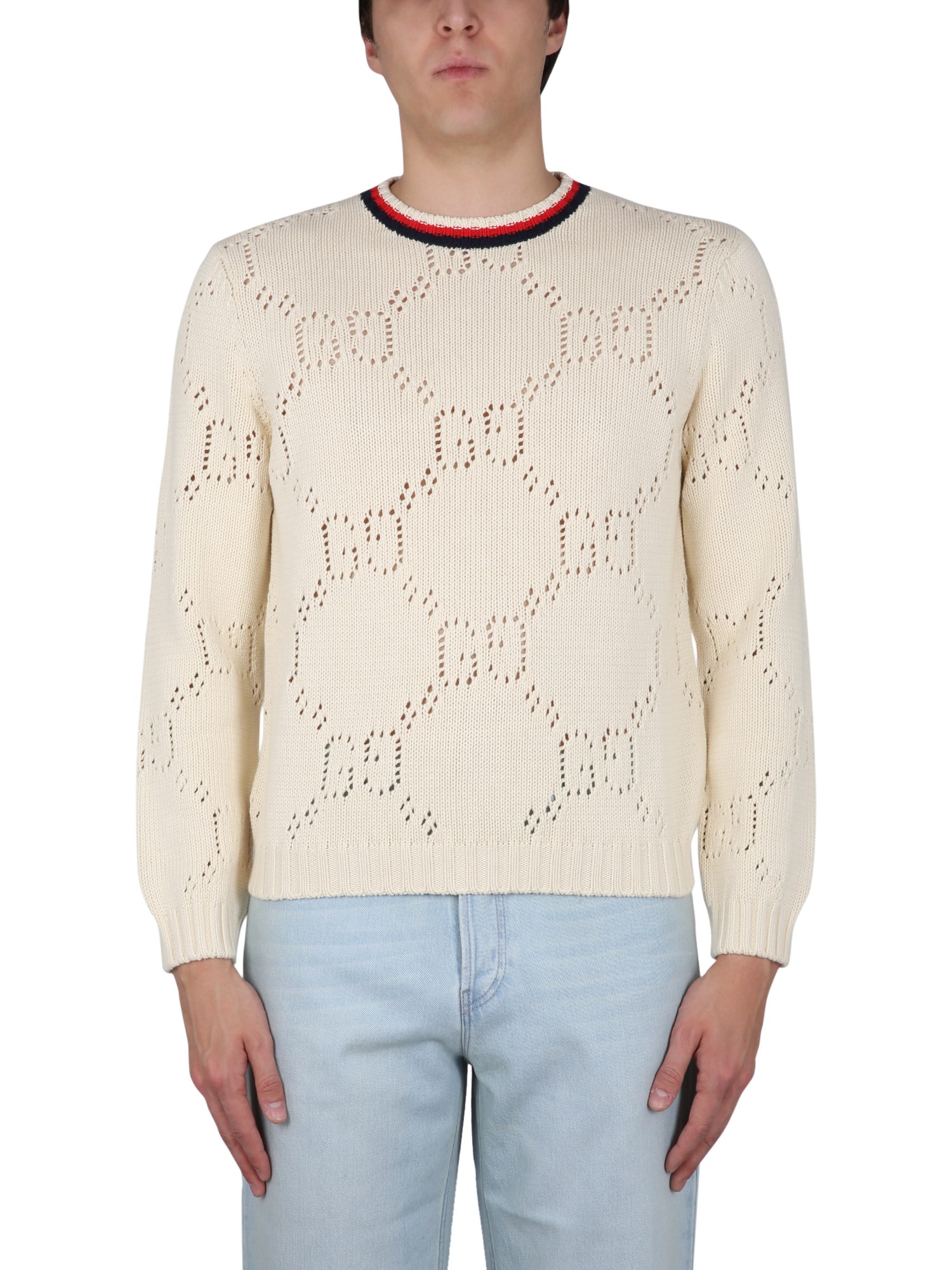 - GIROCOLLO - COTONE GG TRAFORATO - FINITURA A COSTE - REGULAR FIT - 100% COTONE- MADE IN ITALY- IL MODELLO È ALTO 190 CM E INDOSSA LA TAGLIA L