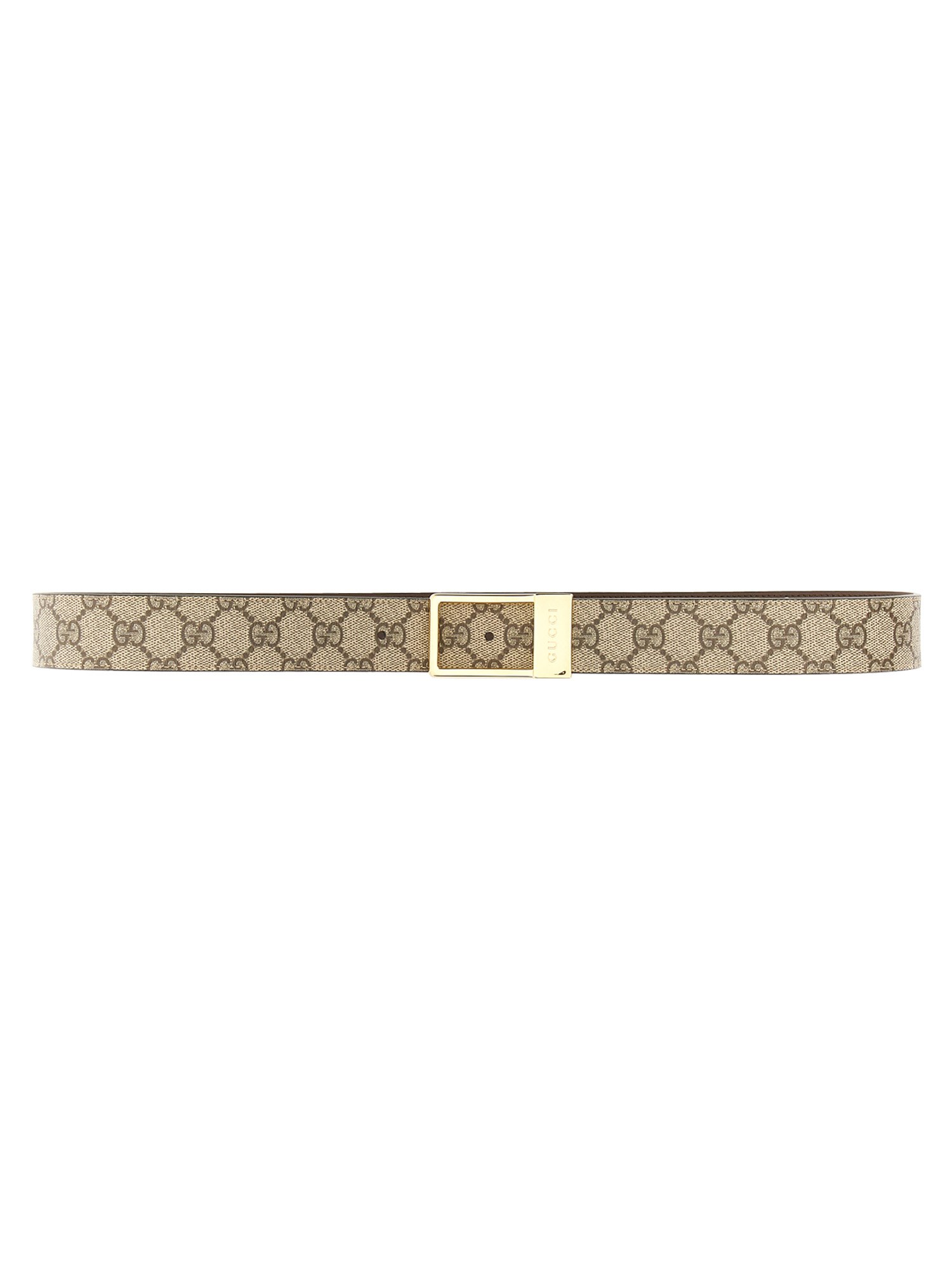 - TESSUTO GG SUPREME BEIGE ED EBANO - FINITURE COLOR ORO LUCIDO - FIBBIA RETTANGOLARE CON INCISIONE GUCCI - 60% POLIESTERE, 20% COTONE, 20% POLIAMMIDE- LARGHEZZA: 3,5 CM - MADE IN ITALY