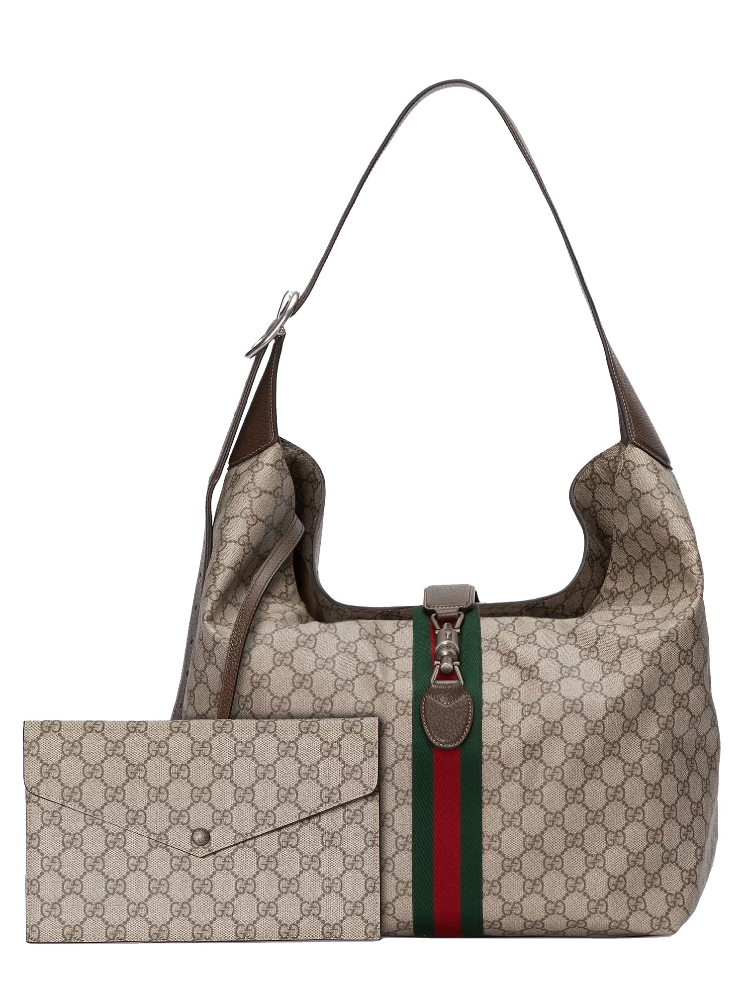 La Jackie 1961 è un simbolo del design in continua evoluzione della Maison, e qui appare con una nuova silhouette morbida come parte della collezione maschile, mettendo in luce l'immancabile hardware a pistone. Una lunga tracolla completa il design, consentendo di indossarla in modo versatile. Questo modello è realizzato in GG Supreme beige ed ebano.
