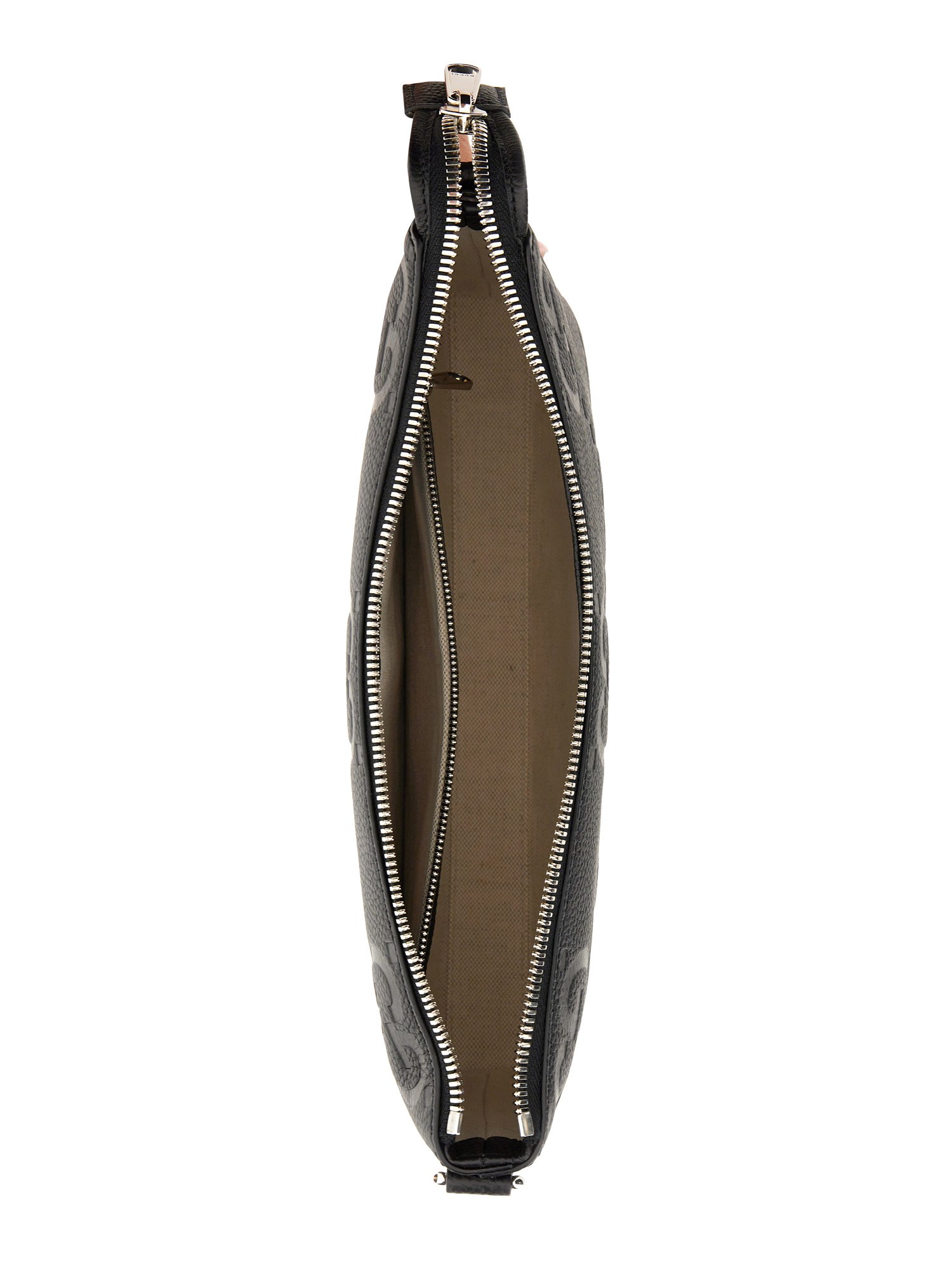 Per la Pre-Fall 2023, il motivo GG, completamente nero, ritorna su una selezione di capi in pelle. Reinterpretazione delle iniziali di Guccio Gucci, il motivo è un evergreen della Maison che compare in formato maxi per un'accattivante sensazione di logo. Il motivo della firma decora questa borsa messenger.