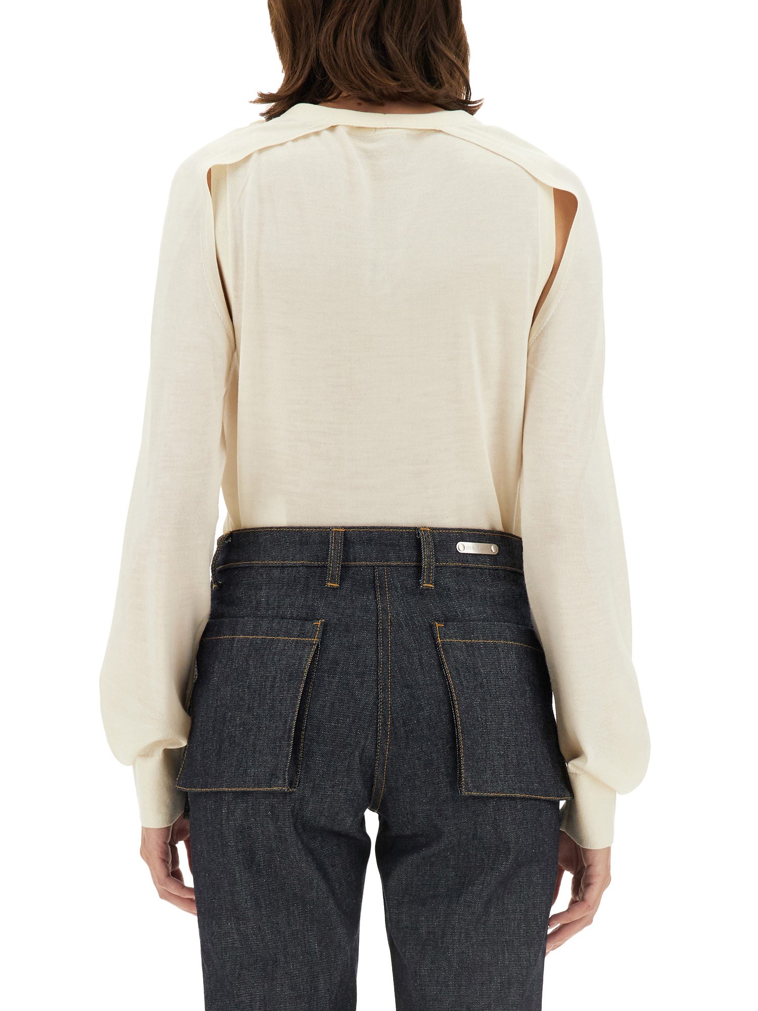 La maglia di lana di Helmut Lang è un esempio di raffinatezza e comfort moderni, realizzata in lana di alta qualità per una sensazione di lusso. Questo capo versatile è caratterizzato da una silhouette elegante, che lo rende adatto sia alle occasioni casual che a quelle formali. Il tessuto traspirante assicura una vestibilità per tutto il giorno, mentre il design minimalista sottolinea l'impegno del marchio per un'eleganza senza tempo. Ideale da indossare a strati o da solo, questo capo è un'aggiunta fondamentale a qualsiasi guardaroba.
