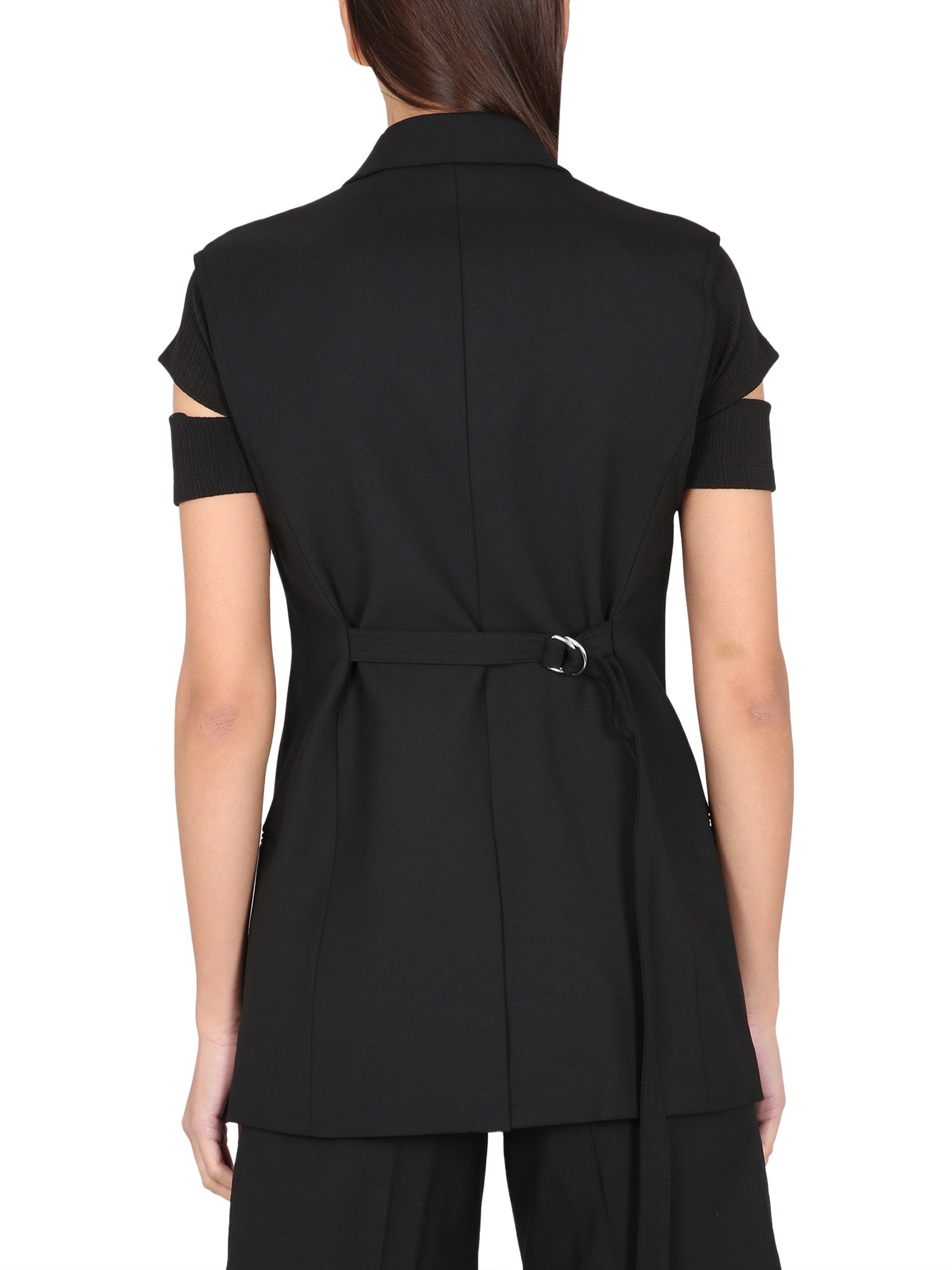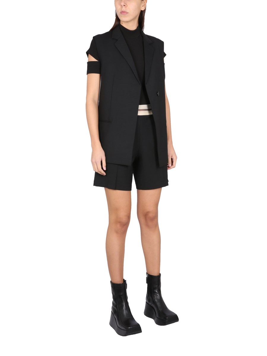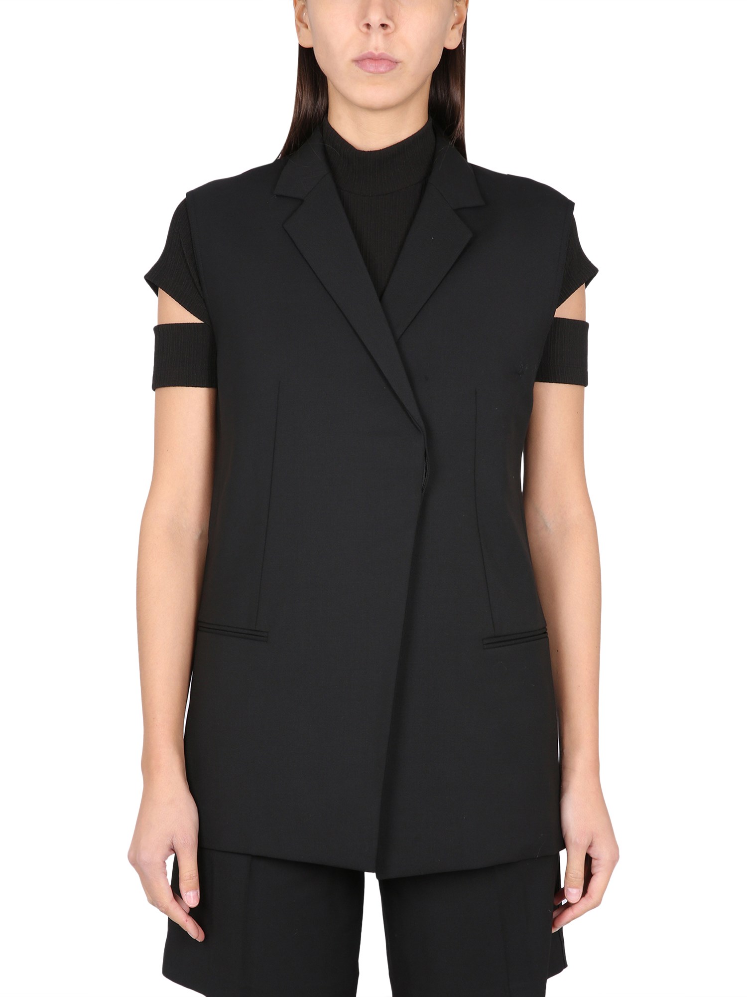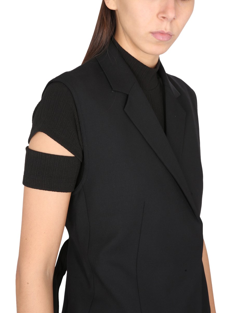 Un lussuoso gilet blazer da donna Helmut Lang non può mancare nel vostro guardaroba. Un must-have per le occasioni formali, questo gilet blazer leggero con revers dentellato è realizzato in lana vergine ed elastan per il massimo comfort e vestibilità. Le mezze maniche sono perfette per essere indossate a strati e le due tasche a filetto sono perfette per tenere le mani al caldo.