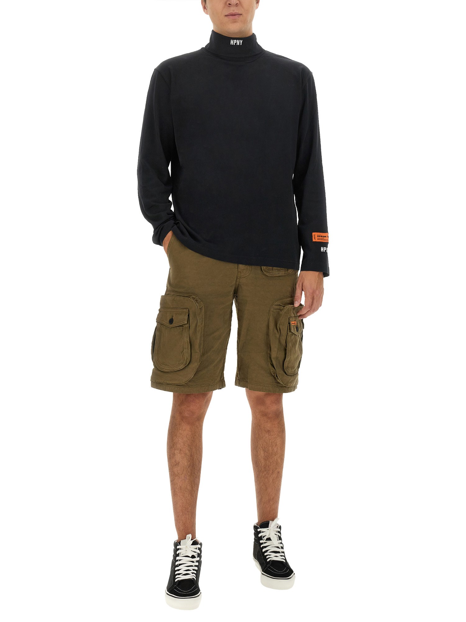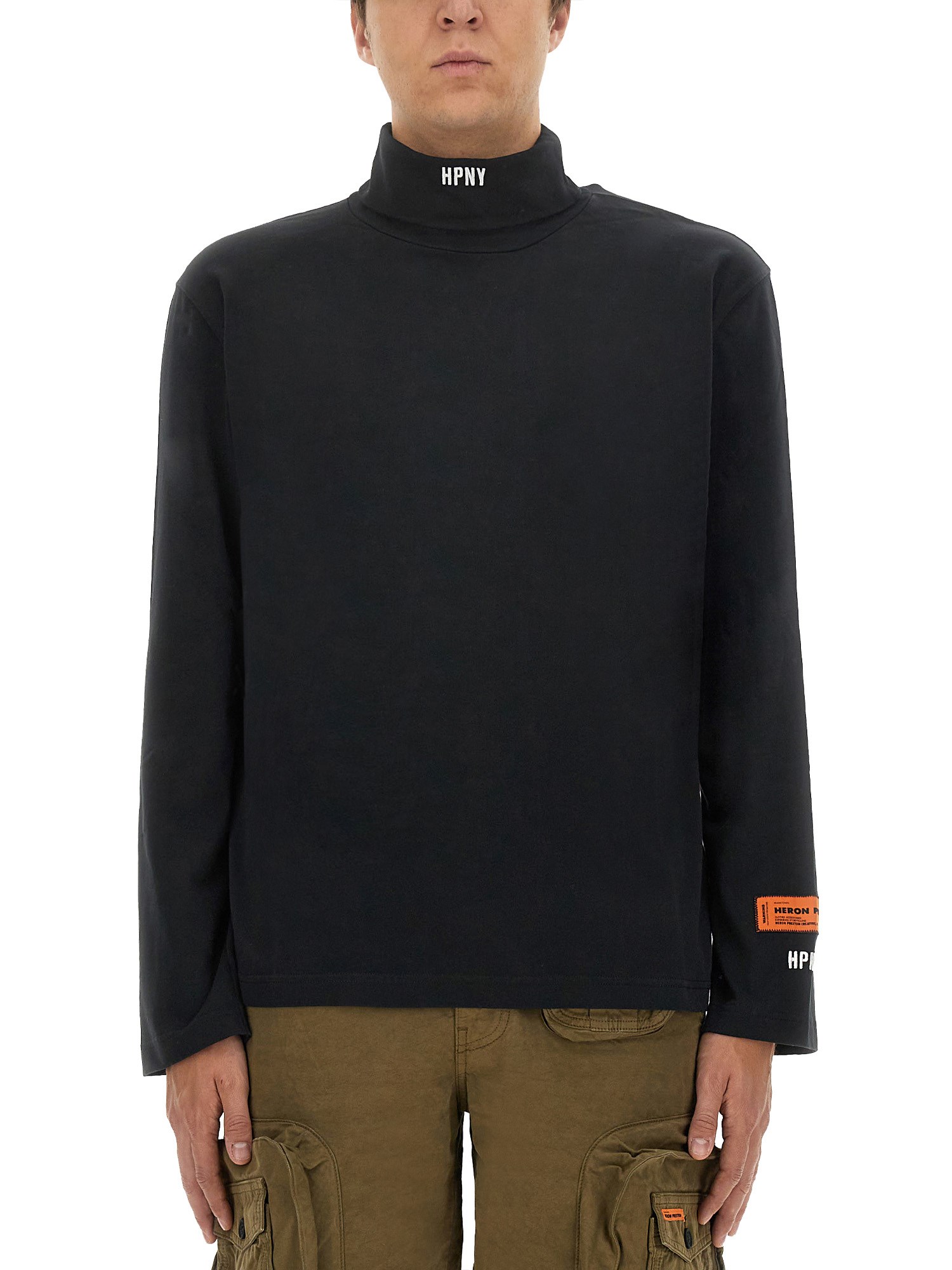 Questa camicia di Heron Preston è a collo alto, manica lunga, vestibilità oversize, in jersey di cotone. Il colore è nero ed è realizzata in un tessuto morbido e confortevole. Presenta uno stile facile da indossare e una cerniera per una maggiore comodità. Questa camicia è perfetta per una giornata casual in ufficio o per una gita all'aperto.