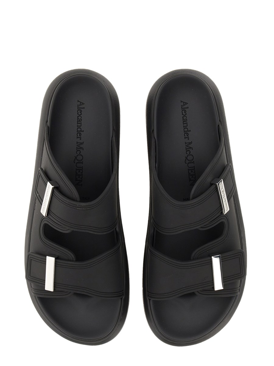 Il sandalo ibrido oversize di Alexander McQueen combina un design contemporaneo con un comfort ineguagliabile, caratterizzato da una silhouette audace che fa una dichiarazione d'effetto. Realizzato con materiali pregiati, questo sandalo presenta un mix unico di elementi sportivi ed eleganti, che lo rendono adatto a diverse occasioni. Il plantare ammortizzato assicura la vestibilità per tutto il giorno, mentre la suola oversize aggiunge un tocco moderno a qualsiasi outfit. Ideale per le persone alla moda, questo sandalo esemplifica l'impegno del marchio verso uno stile innovativo e di lusso.