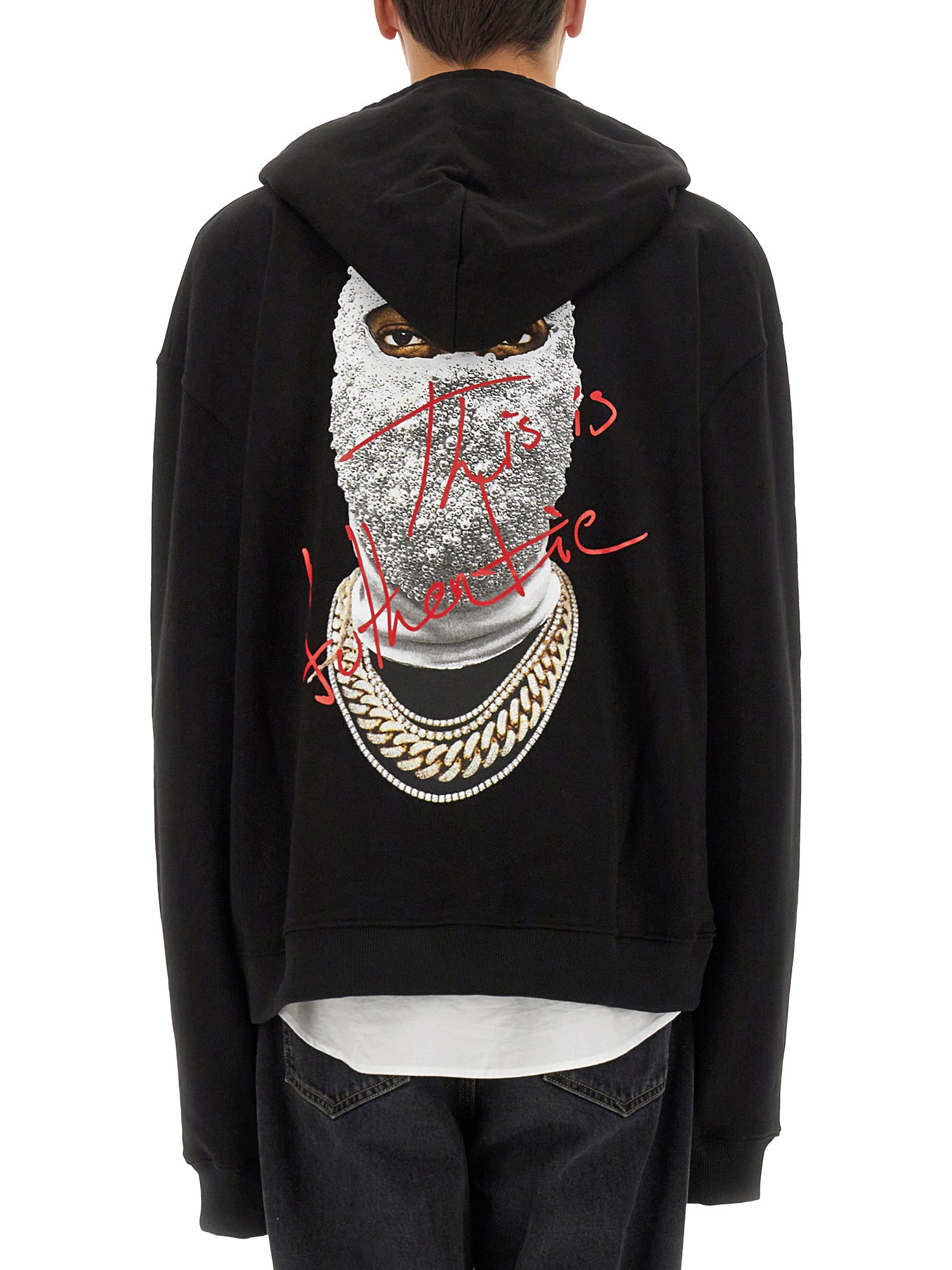 FELPA IN COTONE CON CAPPUCCIO E STAMPA THIS IS AUTHENTIC MASK