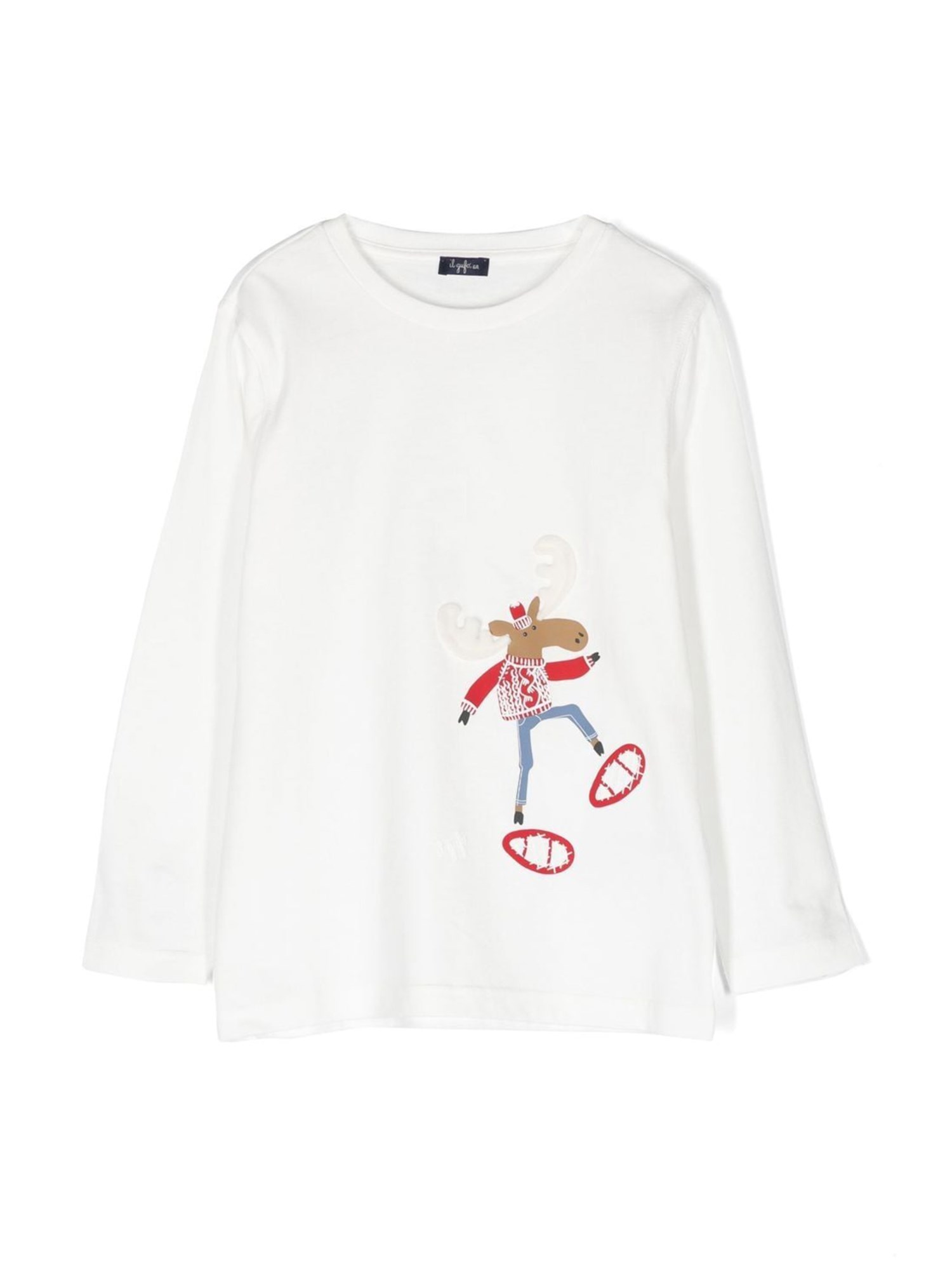 Questa t-shirt con stampa di renne de Il Gufo è perfetta per i vostri piccoli! Lo scollo a girocollo la rende facile da indossare, mentre la manica intera aggiunge calore. Il tessuto morbido si adatta perfettamente alla pelle e terrà i vostri piccoli al riparo nelle giornate fredde. La T-shirt girocollo con stampa renna a manica intera è un'ottima maglietta da indossare con i pantaloni del pigiama con stampa renna e la calza di Natale abbinata.